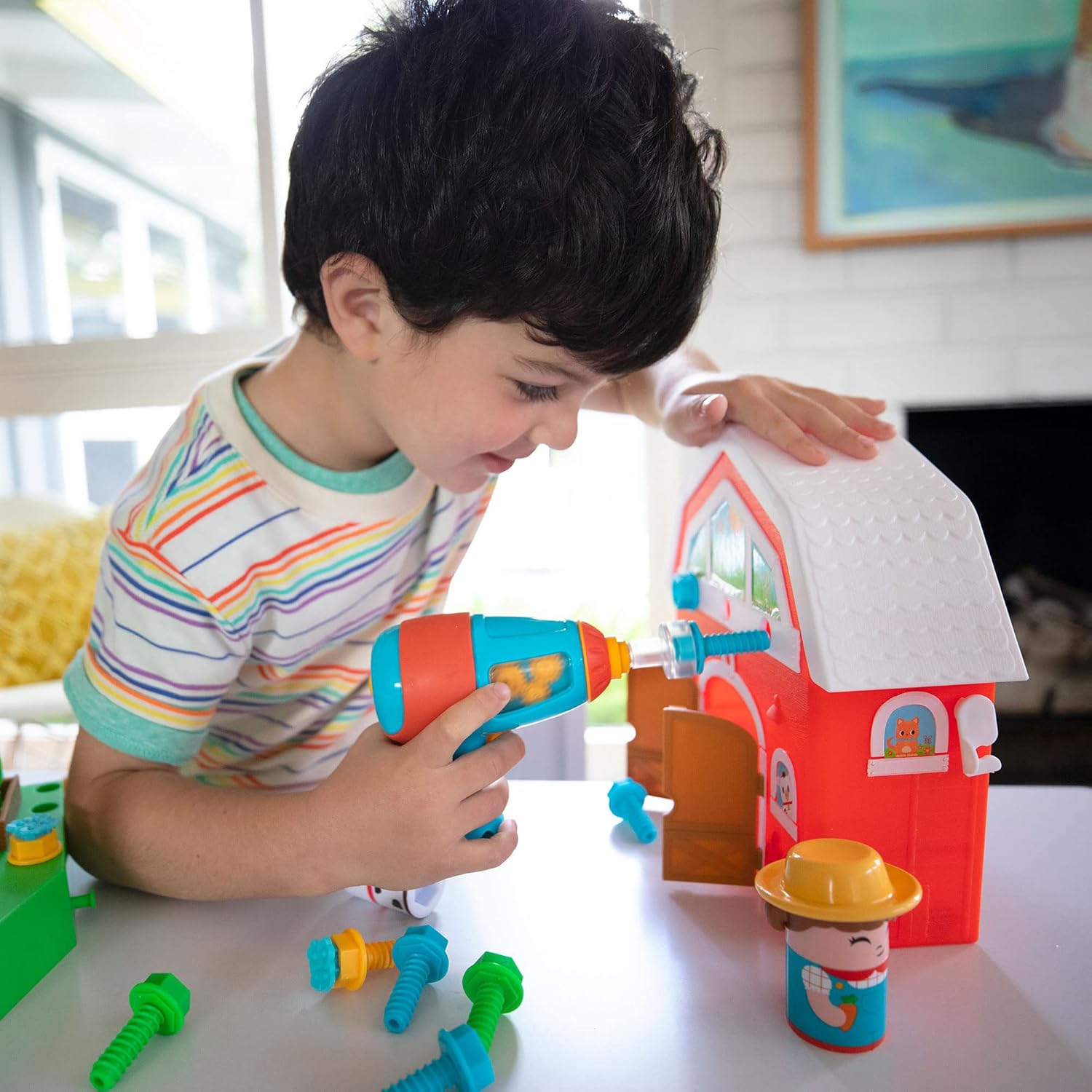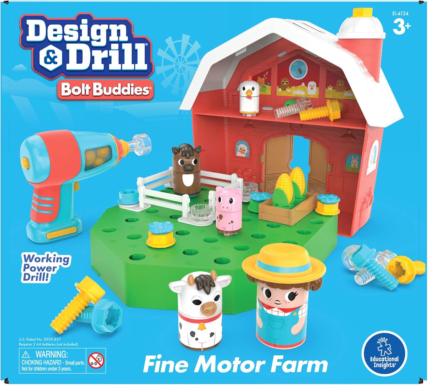 SET DI COSTRUZIONE CON IL TRAPANO: Fattore e trapano: i bambini utilizzano un trapano giocattolo, davvero funzionante, realistico e sicuro, per costruire la loro fattoria, completa di coltivazioni, recinti e animali, creando un ambiente perfetto per tante avventure di fantasia SVILUPPA LE ABILITÀ FINO-MOTORIE: I piccoli imparano le basi della costruzione sviluppando al tempo stesso strategie di risoluzione dei problemi, autostima, immaginazione e motricità fine grazie a strumenti e pezzi progettati appositamente per le loro manine APPRENDIMENTO STEM: Ottima introduzione alle discipline STEM, questo giocattolo di costruzione per i bambini a partire dai 3 anni scatenerà la loro immaginazione CONTENITORE INCORPORATO: Tutte le componenti e i pezzi si inseriscono facilmente nel set, fissato da una base pieghevole che facilita la conservazione e il trasporto COMPRENDE: Trapano elettrico a misura di bambino, set da gioco a tema fienile (che funge anche da valigetta di trasporto), 24 bulloni multicolori, un Bolt Buddy fattore e 4 amici animali, un recinto e un giardino rialzato con verdure a bullone