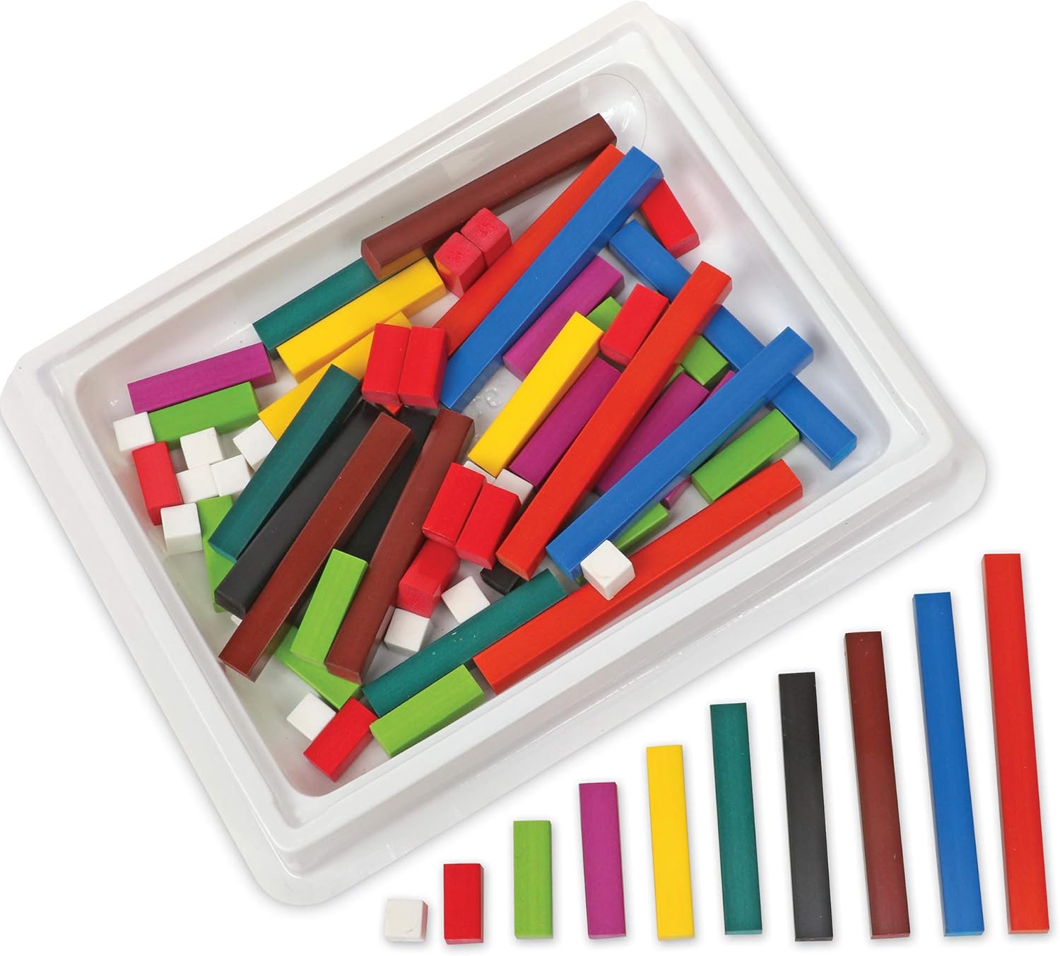 Rafforza una gamma di abilità matematiche Ideale per l'uso in piccoli gruppi Include 444 barrette Comprende una custodia Include un pratico vassoio contenitore