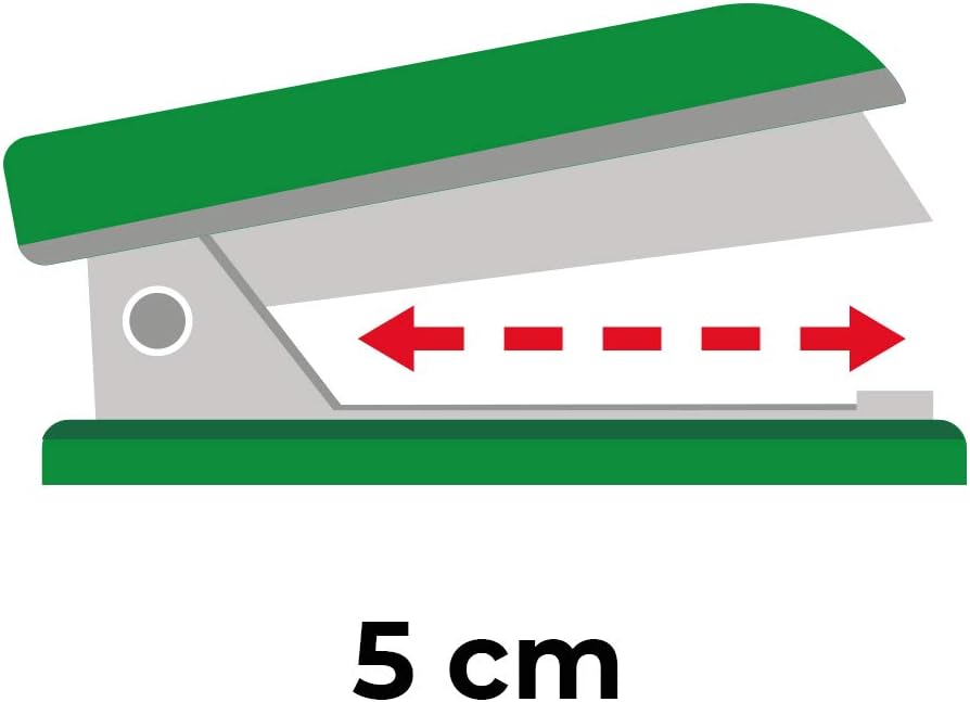 Cuce fino a 16 fogli carta 80 gr Profondità di cucitura fino a 5 cm Interamente in metallo Monta punti 24/6 e 26/6 Cuce con punto chiuso Indicatore scorta punti