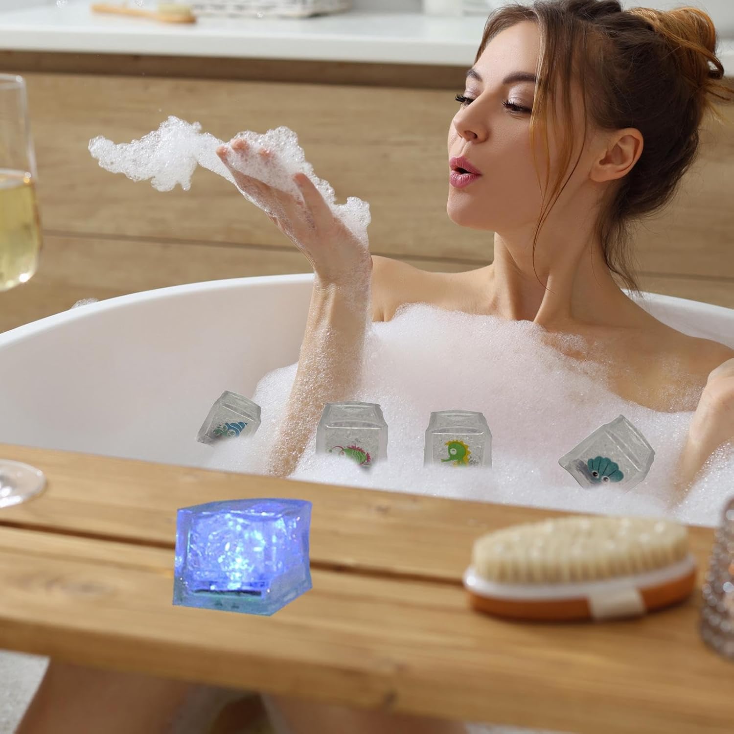 Esperienza Divertimento illimitato: solleva le atmosfere delle tue feste con i nostri cubetti di ghiaccio illuminati. Effetti visivi emozionanti creano un'esperienza interessante e fanno sentire le persone più allegre. Progettato con un concetto spiritoso, questi offrono divertimento illimitato e aggiungono una scintilla istantanea di gioia a qualsiasi riunione Perfetto compagno d'ora del bagno: con 8 cubetti di ghiaccio illuminati ed effetti di illuminazione unici, questi possono essere organizzati in qualsiasi forma, il che li rende un ottimo compagno di giochi per bambini. Questi stimolano la vostra immaginazione e creatività, fornendo al contempo un'aggiunta divertente e colorata a qualsiasi luogo o evento. Durevolezza solida: questi cubetti di ghiaccio illuminati sono realizzati in acrilico trasparente e acido alimentare, creando cubetti di ghiaccio realistici, inodori e insapori che sono resistenti e sgradevoli. Simulando perfettamente l'effetto dei veri cubetti di ghiaccio in acqua, porteranno sicuramente divertimento e divertimento duraturi in ogni occasione Ottimo regalo: perfetto per le celebrazioni o le feste illuminanti, questi cubetti di ghiaccio illuminano sono l'eccellente regalo, rendendo tutte le feste e la vasca da bagno brillano in modo unico. Applicazione multiuso: agisce come una luce notturna altamente visibile, creando un'atmosfera serena e rilassante. Induce il desiderio di bagni invernali, adatto a bambini e adulti. Versatile in diversi scenari di utilizzo, migliora l'esperienza complessiva del bagno. Rende una calda aggiunta a qualsiasi bagno