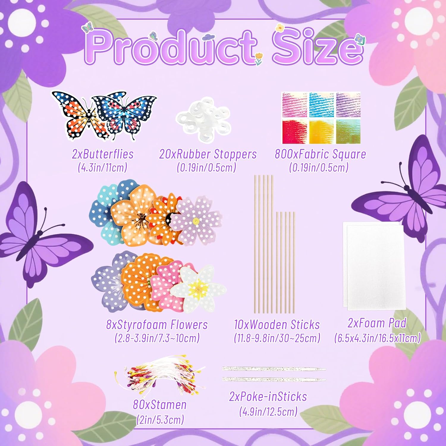 Stimola la creatività e lo sviluppo delle competenze:Questo lavoretti creativi per bambini di 5 6 7 8 anni, di fiori DIY non solo coltiva il senso cromatico e l'estetica, ma migliora significativamente la coordinazione occhio-mano, la concentrazione, la creatività e la pazienza Materiali premium e configurazione completa:Il set fai da te per bambini dai 6 ai 4 ai 5 anni contiene oltre 800 quadrati di stoffa, 10 fiori e farfalle in schiuma, steli di legno, aghi speciali e un tappetino da lavoro tra più di 20 componenti. Tutti i materiali sono sicuri e atossici, con i supporti in schiuma ad alta densità riutilizzabili Interazione genitore-figlio:Con questo fai da te per bambine kit creativo, genitori e bambini possono collaborare alla realizzazione, rafforzando il legame emotivo durante il processo creativo Applicazioni decorative multifunzionali:Giochi creativi lavoretti bambina, le creazioni completate possono essere esposte in vasi per decorare camere da letto e studi, oppure per abbellire alberi di Natale, portachiavi o vasi di fiori Regalo ideale:Kit creativo bambina, confezionato in elegante scatola regalo inclusa istruzioni illustrate e avvertenze di sicurezza, è perfetto come dono per compleanni, Natale e altre occasioni speciali, particolarmente adatto per bambine appassionate di creazioni artistiche