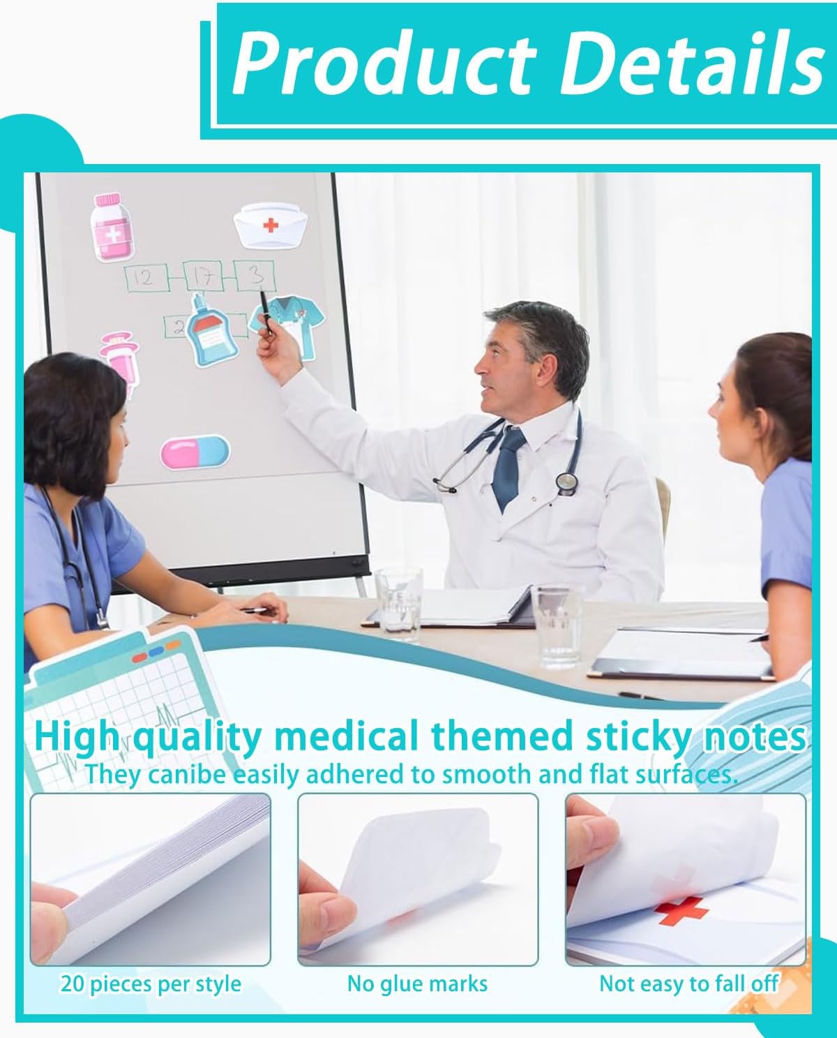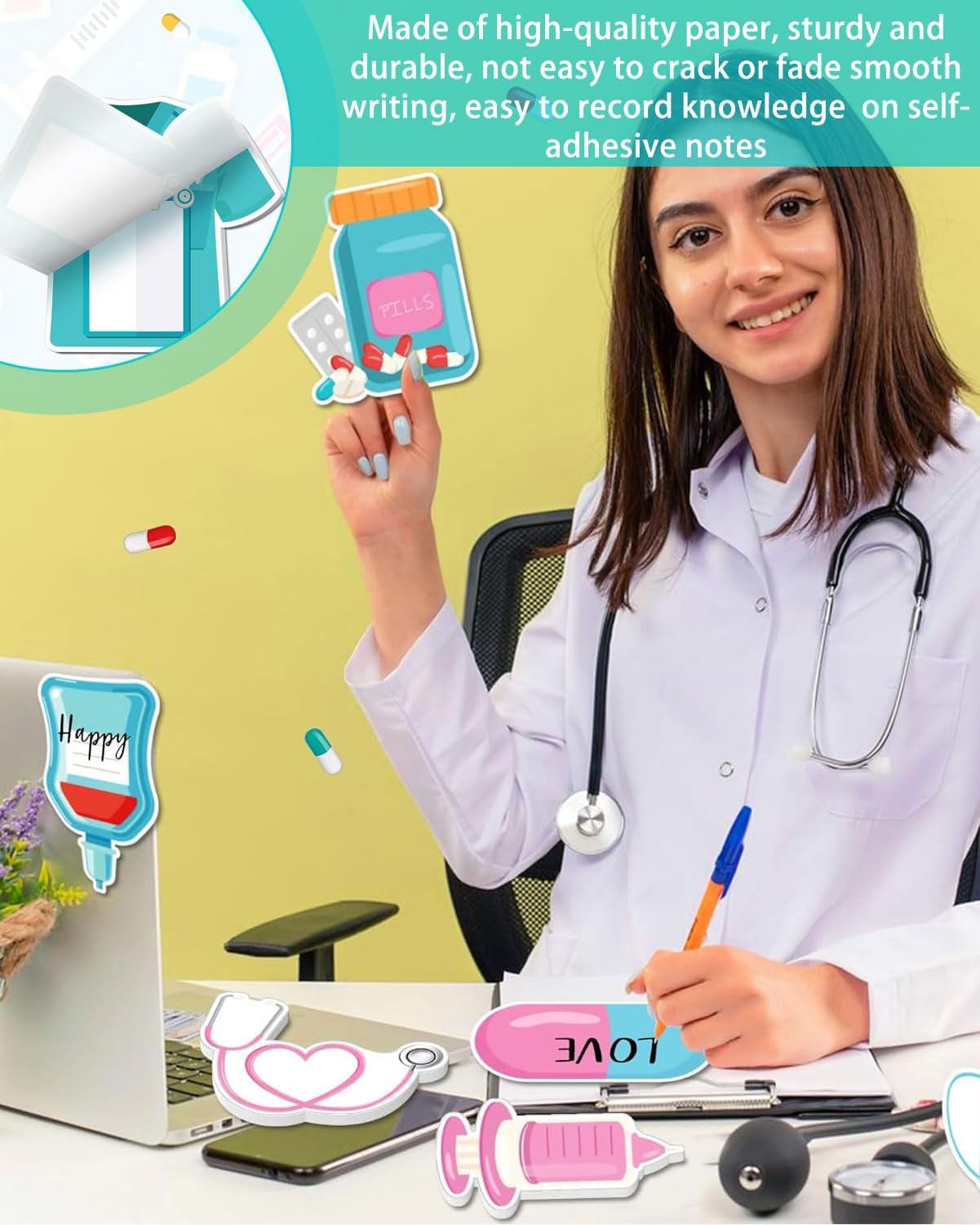 CARINO E ACCATTIVANTE: i nostri foglietti adesivi dal design medico sono progettati per essere divertenti e accattivanti. Rendi il tuo ambiente di apprendimento e di lavoro più vivace e interessante. È un regalo ideale per la tua famiglia, i tuoi amici e i tuoi colleghi in occasione di compleanni, Natale, Festa degli infermieri, Capodanno e altri festival. Durevole e affidabile: realizzato in carta di alta qualità, sicuro e robusto, non facile da strappare o sbiadire, adatto per un uso a lungo termine. Conoscenze mediche, informazioni importanti o idee possono essere facilmente registrate sugli appunti grazie alla superficie di scrittura liscia. Le sue dimensioni perfette lo rendono facile da trasportare e riporre in borse, zaini, kit medici, ecc. Facile da attaccare e rimuovere: con l'adesivo affidabile sul retro, puoi attaccare i foglietti adesivi su scrivanie, cartelle, lavagne o altre superfici lisce. Quando devi spostare o modificare le note adesive, puoi incollarle o rimuoverle facilmente. Portatile e salva tempo: comodo per lo studio e il lavoro quotidiano. Puoi usarli per scrivere promemoria, messaggi, liste di cose da fare, piani di studio, note motivazionali e molto altro. Possono anche essere utilizzati come segnalibri o promemoria. Non solo ti aiutano a organizzare e classificare le tue cartelle o scatole, ma possono anche aiutarti a gestire il tuo tempo e le tue attività in modo efficace. Set di taccuini medici: riceverai 12 diversi tipi di taccuini medici, ciascuno contenente 20 fogli. Diversi modelli e quantità possono soddisfare le diverse esigenze quotidiane. I nostri foglietti adesivi dal design medico sono perfetti per operatori sanitari, studenti di medicina, infermieri e chiunque altro operi nel settore sanitario.