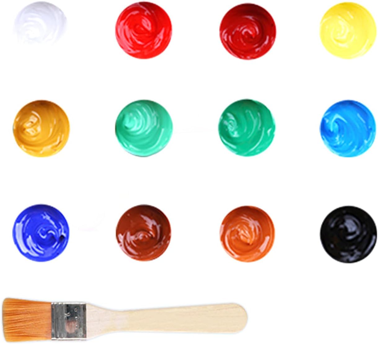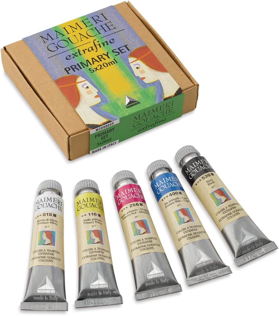 Die Beschreibung des Verkäufers stimmt nicht: Das sind nicht "Schulfarben Gouache in 20ml Tuben". Das sind 10ml-Tuben. Bei einem Preis von unter 4 Euro kann man darüber allerdings nicht klagen, zumal es sich hier um besonders gut pigmentierte Farben handelt, mit denen man weit kommt. Dank der guten Pigmentierung sind das sehr ergiebige Farben! Dazu kommt, dass die Farben vom Hersteller gut gewählt wurden und gute Misch-Eigenschaften haben. Aus dem Violett und dem intensiven Mittelblau (Primärblau) ergibt sich z.B. ein sehr schöner dunkel-tiefblauer Farbton (zwischen Preußisch Blau und Indigo), und auch alle anderen Farbmischungen gelingen hier sehr schön. Bei dünnen Auftrag lassen sich sogar gute Annäherungen an die Aquarell-Malerei erzielen, denn diese Farbe verläuft sehr gut. Man kann hier also (verdünnt!) tatsächlich Nass-in-Nass-Aquarellmalerei veranstalten! Einzelfarben - Beschreibung: --------------------------------- Primärgelb: Gut getroffen, gute Mischeigenschaften, wirkt dünn aufgetragen sehr zitronig, hat aber ansonsten einen recht warmen Farbton. Ich vermute, dass hier als Farbpigment Hamsagelb zum Zug kam, und das wäre eine ausgezeichnete Wahl. Orange: OK Primär-Rot: Kirschfarben mit einer Tendenz zu Magenta - so, wie es sein muss. Mischt sich gut mit andere Farben Violett: ergibt zusammen mit dem Primär-Blau ein tolles, dunkles Tiefblau Primär-Blau: ein schönes, mittleres Blau mit guten Mischeigenschaften. Zusammen mit dem Braun lassen sich hier z.B. gute neutrale Farben (Grau, ja sogar Schwarz) ausmischen, und sogar ein sehr überzeugender Indigo-Ton! Maigrün: etwas schwächer pigmentiert, eignet sich aber zum ermischen weiterer Grüntöne mit dem Dunkelgrün. Verhält sich beinahe wie Aquarellfarbe (also auch inkl. Kantenziehen). Dunkelgrün: Schön intensiv und strahlend - müsste vom Farbpigment ein gutes Phtalogrün darstellen Braun: Ein sehr schöner Braunton, ein Van-Dyke-Braun, leicht ins Rötliche gehend. Mit Schwarz, Rot oder Gelb lassen sich hier problemlos weitere braune Farben herausmischen, zusammen mit den grünen Farben ergeben sich schöne olivgrüne Mischfarben. Zusammen mit dem Primär-Blau richtig gute Grau-Farben. Zum Mischen sollte das sehr intensive Braun vorsichtig dosiert werden. Schwarz: Ein Highlight, jedenfalls ein sehr schönes und intensives Schwarz! Deckweiß: Tut, was es soll. Für den Schulgebrauch: ---------------------------- Ich würde dieses Tubenset einem Pelikan-Deckfarbkasten jederzeit vorziehen - oder jedenfalls als Ergänzung beilegen. Ist für jedes Kind, das gerne malt, eine Offenbarung: So gut können Farben sein! Fazit: ------ Ein tolles Set, auch geeignet für Hobby-Künstler! Das sind richtig gute Farben.