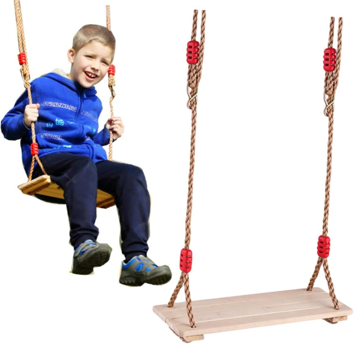 : lavorazione e design in legno, la rendono per cortili, cortili anteriori, garage e altro ancora!, sedile per Sedile per sospeso: per giocare all'interno all'esterno, sedile per in legno: sedile ha una superficie in legno antiscivolo sicuro usare, sedile ' con corda: corde ruvide per mani, aggiungerà attrito ai bambini, seggiolino per Sedile: in materiale legno e corda nylon, e per un peso e per bambini, sedile sospeso