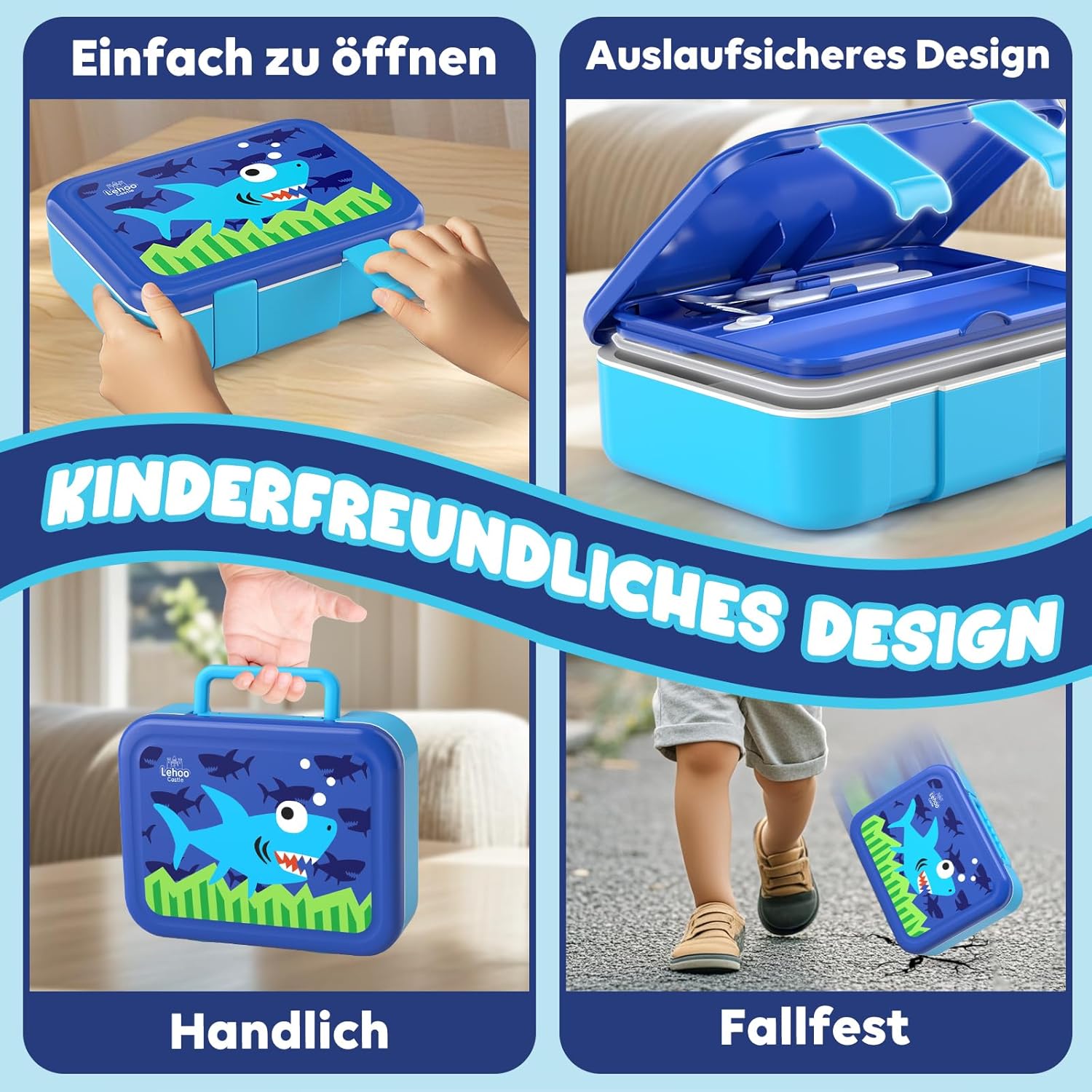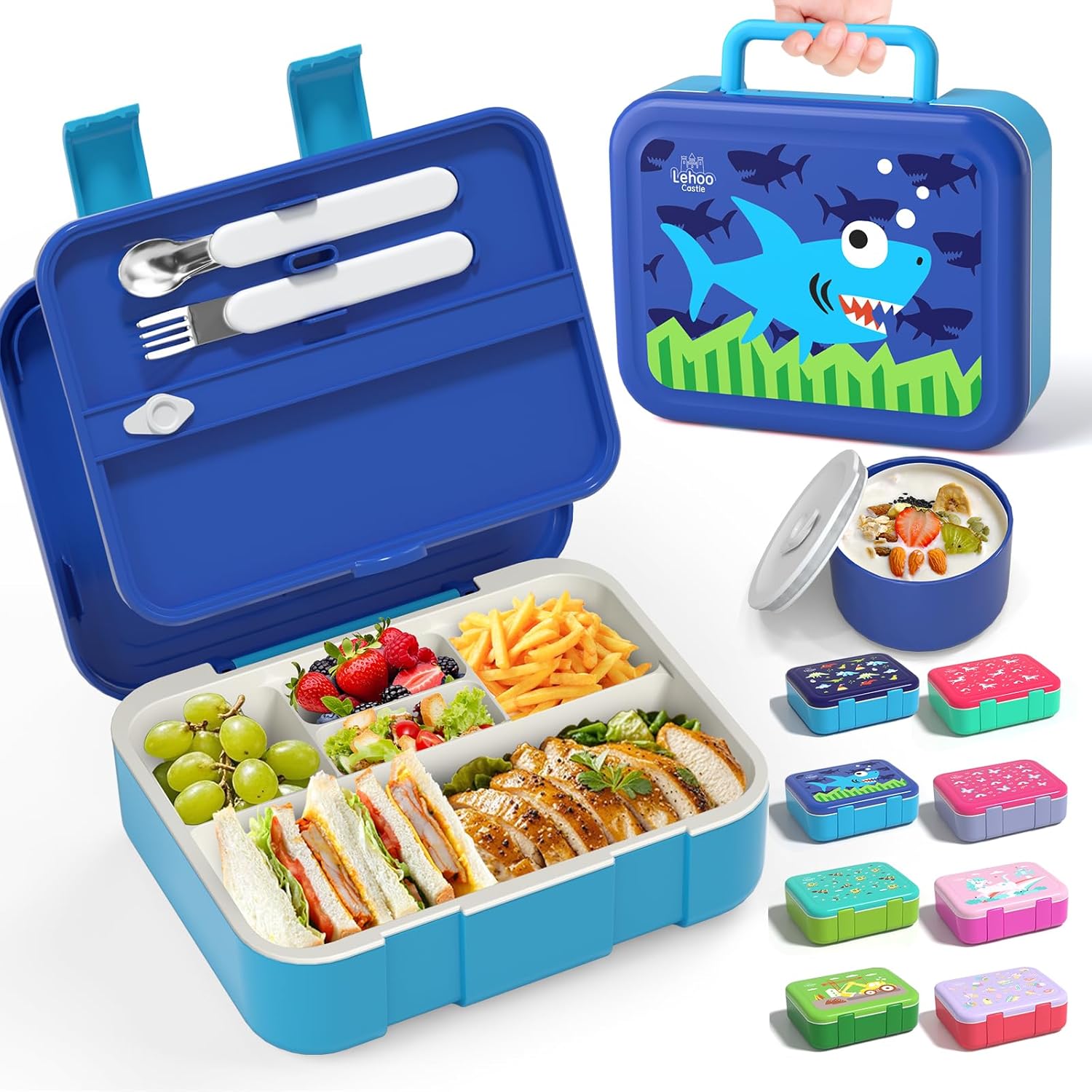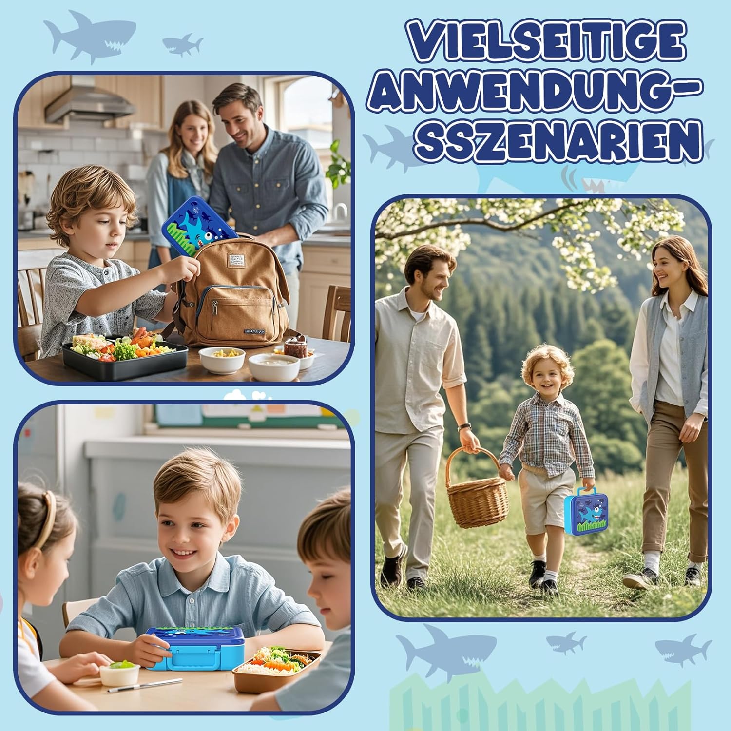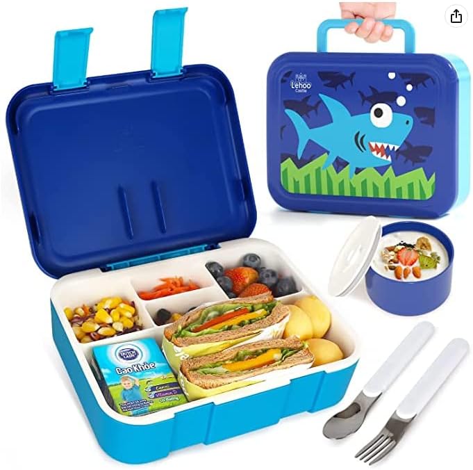 Contenitore per il pranzo per bambini con 5 scomparti - Il contenitore per il pranzo per bambini ha un design di 8,7 x 6,7 x 2,8 pollici, 1250 ml con 5 scomparti che possono separare alimenti diversi come alimenti di base, frutta fresca, verdura, snack, ecc. Contenitore per il pranzo per bambini - Il nostro contenitore per il pranzo per bambini con design all-in-one contiene una scatola bento + un barattolo di salsa + un cucchiaio e una forchetta. Tutto ciò di cui hai bisogno è incluso Bento Box Kids a prova di perdite - La spessa striscia di silicone nel coperchio è ben sigillata e la rende a prova di perdite al 100%. Il design con 2 clip di bloccaggio facilita l'apertura e la chiusura dei tuoi bambini. Materiale premium: la bento box e gli accessori per bambini sono realizzati in materiale alimentare di alta qualità (materiale PP di qualità 5), atossico e privo di BPA. Il materiale è più spesso, più forte, più resistente alle macchie, all'ambiente e alle cadute. Precauzioni per l'uso - Solo lo scomparto bianco del contenitore per il pranzo può essere utilizzato nei forni a microonde e nelle lavastoviglie. Ma l'intera scatola può essere conservata nel congelatore