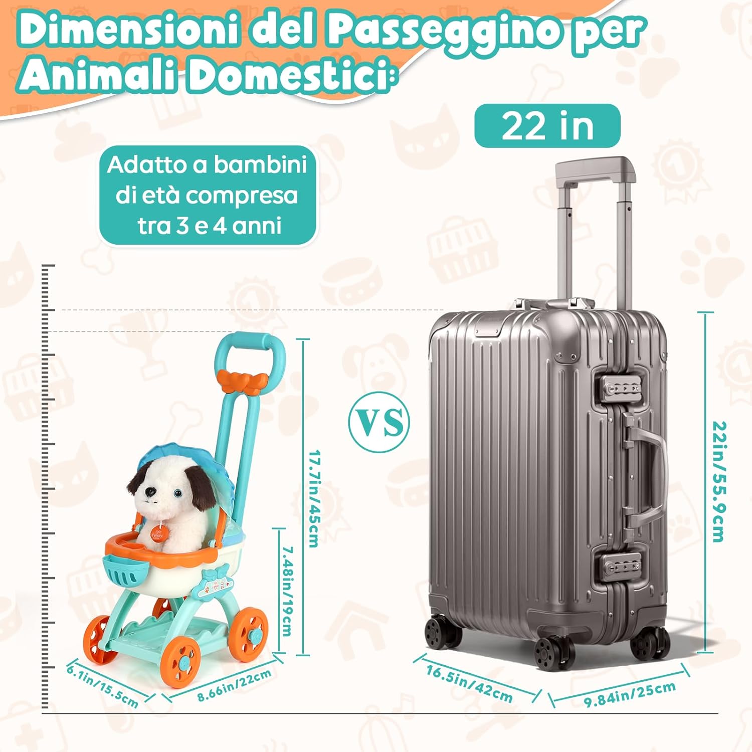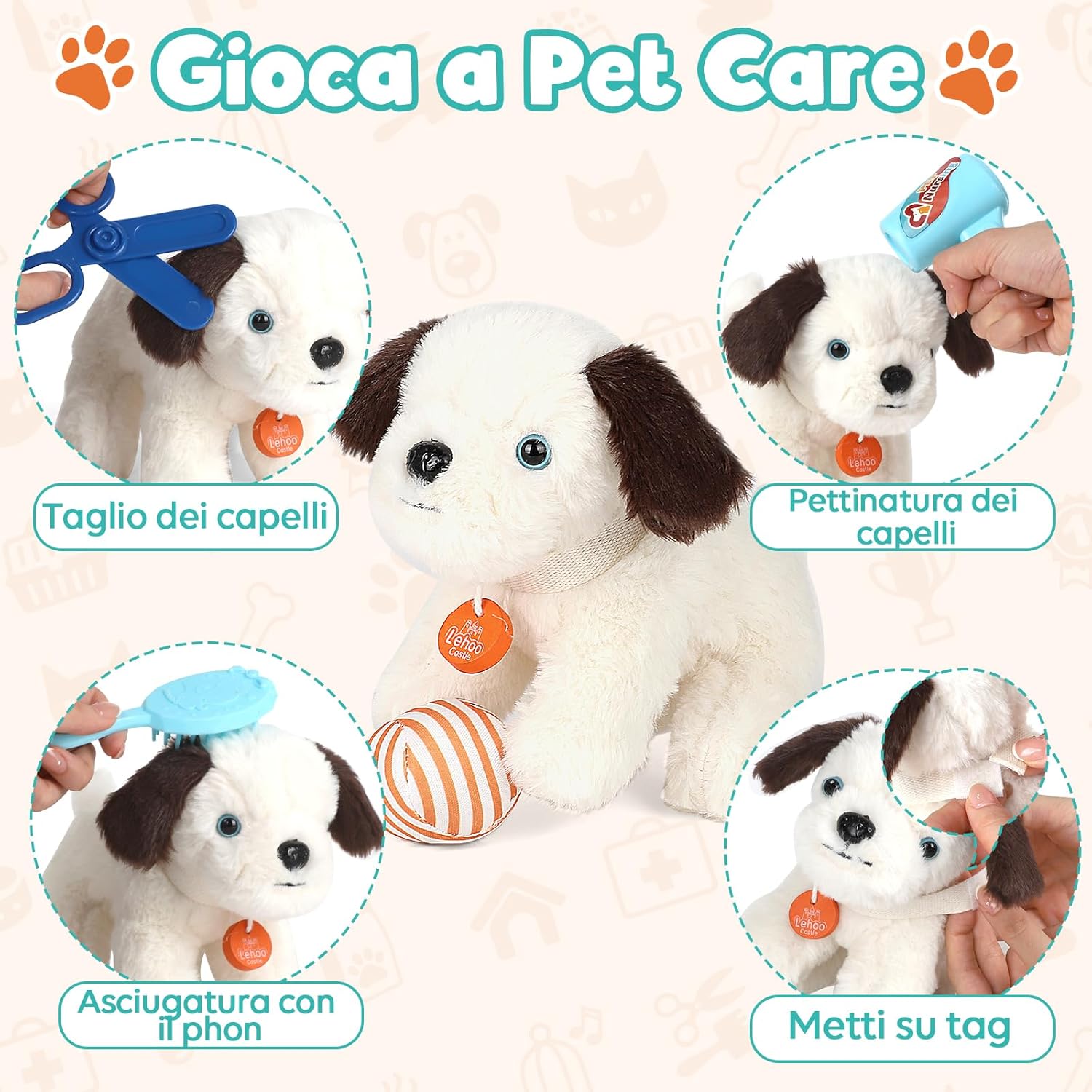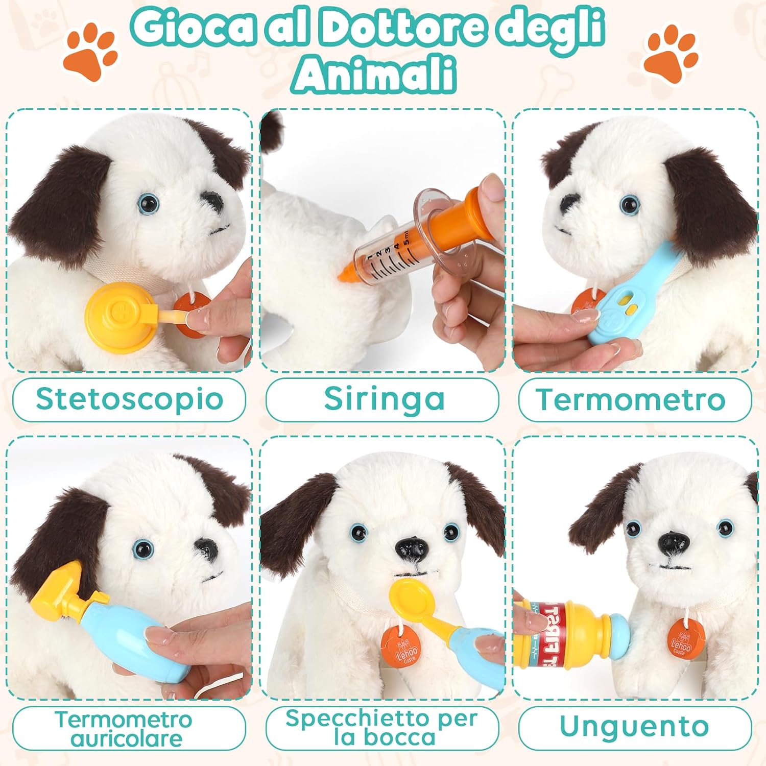 RICCA VALIGETTA DOTTORE BAMBINI: Il nostro kit veterinario comprende un cane di peluche, un passeggino per cani, un set di strumenti per la cura degli animali (asciugacapelli, forbici, pettine, ecc.), un kit di strumenti veterinari (stetoscopio, siringa, termometro, ecc.) e una custodia, ecc PASSEGGINO PORTATILE: quando si spinge un passeggino per animali domestici, i bambini devono coordinare i movimenti delle mani e dei piedi, il che può esercitare il senso dell'equilibrio e le capacità motorie MORBIDO CANE DA COMPAGNIA: i bambini possono giocare a prendersi cura del cane o eseguire cure mediche. Kit veterinario aiuta i bambini a simulare il processo di cura dei piccoli animali MATERIALE DI SICUREZZA E STABILITÀ: il Kit dottoressa bambina è realizzato principalmente in plastica di alta qualità, con bordi lisci e resistente, garantendo la sicurezza dei bambini durante l'utilizzo GIOCHI BAMBINA 3 4 ANNI: Il nostro kit dottore bambino aiuta a sviluppare l'immaginazione e le abilità sociali, permettendo ai bambini di imparare l'empatia e la responsabilità. Regalo ideale per bambini dai 3 ai 4 anni a Natale, feste di compleanno, regali o qualsiasi altra occasione