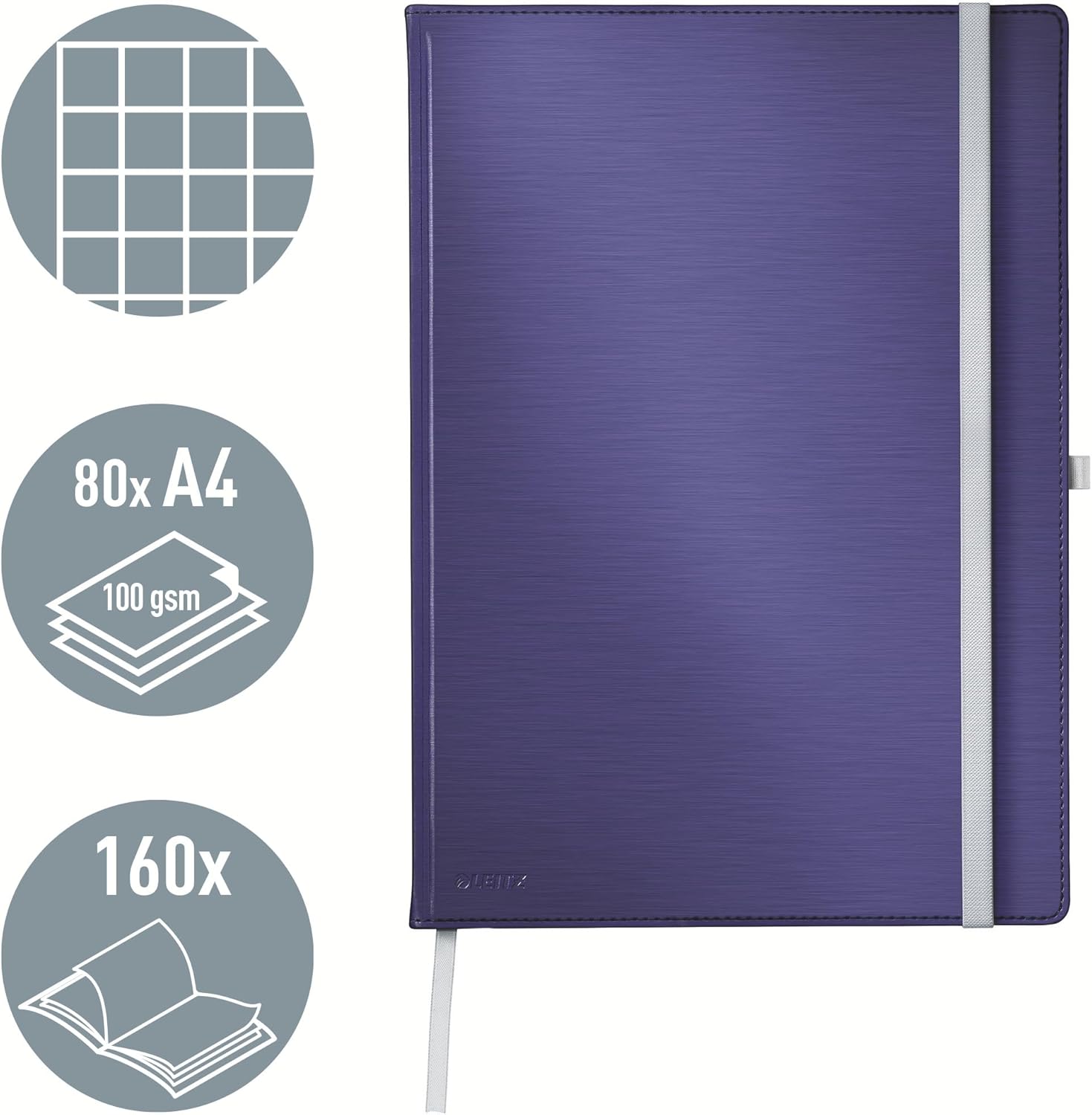 Taccuino di alta qualità: taccuino universale in formato A4 con 160 pagine, 80 fogli, carta certificata FSC da 100 g/m² come quaderno, diario, diario e quaderno da disegno, alternativa sostenibile al taccuino Design pratico: la copertina rigida ha una superficie moderna, leggermente strutturata che offre una piacevole sensazione al tatto, con segnalibri in tessuto e 8 pagine perforate a strappo Funzionalità estese: tenuta salda grazie alla chiusura con elastico, passante per penna e custodia placcata all'interno della copertina posteriore per fogli sciolti o biglietti da visita Sempre con te: un accessorio quotidiano indispensabile per l'ufficio, la casa, la scuola o in viaggio - adatto per appunti quotidiani, schizzi, disegni, idee, pensieri e progetti Contenuto: 1 quaderno Leitz A4 a quadretti, copertina rigida, 160 pagine 80 fogli, avorio, 100 g/m², dimensioni L x A x P: 21,7 x 2 x 29,7 cm, 0,71 kg, blu titanio, serie Style, 44761069
