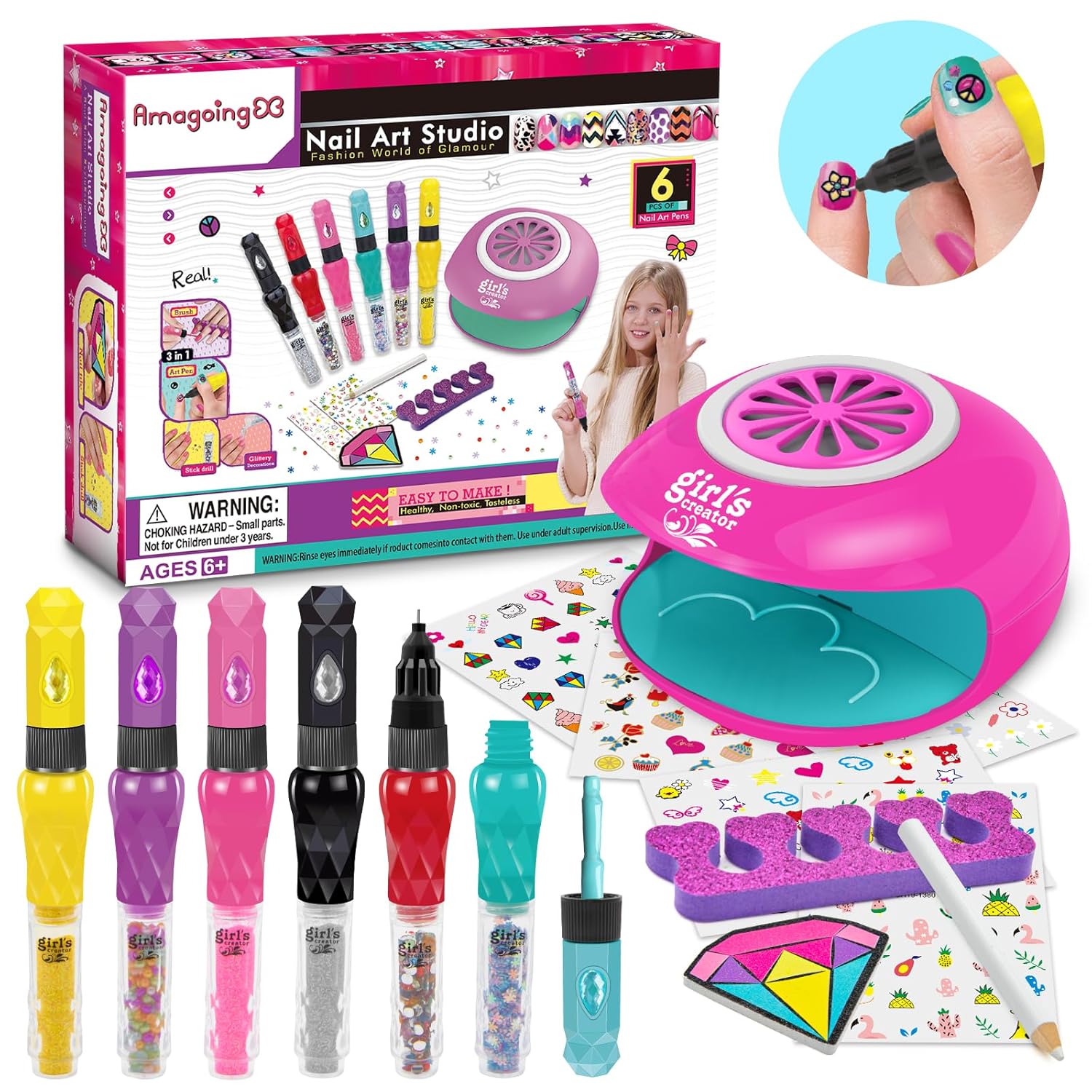 Smalto per unghie per bambine: il set per salone di bellezza contiene: penna per unghie x 6, adesivo x 5, asciuga unghie (batteria non inclusa), penna ornamentale x 1, lima per unghie x 1, separatore per dita x 1. sicuro per far giocare i bambini. Soddisfa le tue esigenze di design delle unghie. Le ragazze sono in grado di esplorare la moda e la bellezza. Regalo di compleanno per ragazze 6 7 8 9 10 11 12 anni: il nostro design unico, penna per unghie 3 in 1: 1) Colore del pennello; 2) Disegno a penna (disegna il motivo desiderato); 3) Glitter per unghie e gemme decorative in stick. I set di smalti per bambini sono un regalo perfetto per ragazze da 6 a 12 anni, le ragazze possono progettare una varietà di nail art alla moda, il set di nail art per ragazze fa sì che i bambini si mantengano più freschi e amati. Giocattoli per bambini da 6 7 8 9 10 11 12 anni Ragazze: le ragazze possono provare la gioia di diventare belle come la mamma! Ottieni il tuo glamour con il tuo studio di smalti per unghie! Crea manicure scintillanti e colorate che si adattano al tuo umore e al tuo stile. Realizza le tue unghie o organizza una festa e invita i tuoi amici con te! Regali per ragazze 6 7 8 9 10 11 12 anni: il trucco per bambini con smalto per ragazze offre ai bambini un divertente momento fai-da-te. I bambini possono creare combinazioni diverse in base alle loro idee e infine raccogliere il successo dopo averle realizzate con successo. Questo processo può coltivare l'immaginazione, la creatività e l'adattabilità dei colori dei bambini, promuovendo al contempo il legame genitore-figlio e lo spirito cooperativo. Regalo perfetto per i giocattoli di compleanno per ragazze: ed è l'inizio del viaggio della bambina alla scoperta della bellezza. Questo smalto per ragazze per bambini è adatto a tutti i tipi di festival: regali di compleanno, regali di Halloween, regali di Natale, regali per la festa dei bambini, regali di Pasqua per bambini.