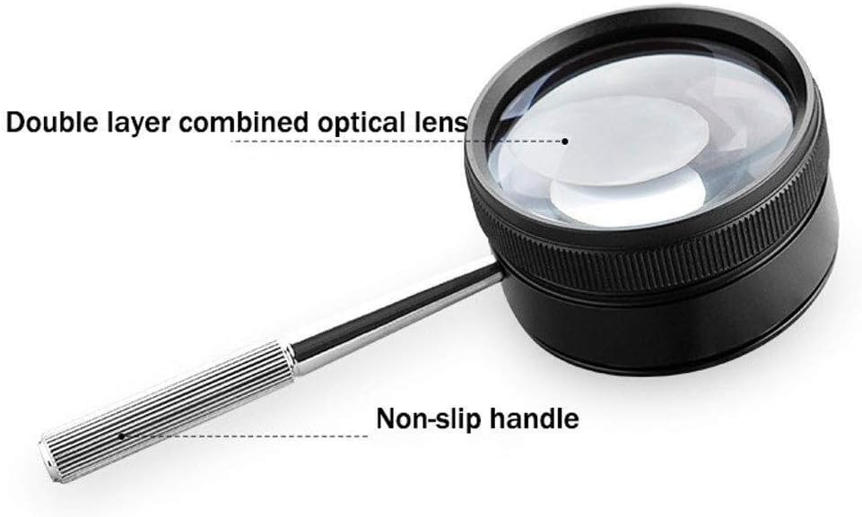 ?【Chiaro e trasparente】: lente ottica combinata a doppio strato con funzione dura e antigraffio, lente ottica 35x, elevata trasparenza e piccolo coefficiente di dispersione, che rende la lente in vetro ottico con alta definizione nell'intero campo visivo. ?【Multifunzione】: il vetro 35 volte è progettato per riparare lavori artigianali, come lettura, riparazione, gioielleria, filatelia, ecc. È molto adatto per controllare testi, immagini e oggetti molto piccoli. ? [dimensioni perfette]: compatto, adatto per tasche di camicie, borse, beauty case. Nessun guasto di archiviazione, facile da trasportare, design ergonomico compatto. La lente infrangibile non ha un'area di visualizzazione di distorsione. migliorare la qualità della vita ?[Regali di qualità]: Offri regali di qualità a tua madre, tuo padre, tuo marito, tua moglie e a tutti i parenti e amici anziani che sono stanchi di leggere. Saranno soddisfatti del bicchiere e si innamoreranno di questo pratico regalo di compleanno. [Design leggero]: con il design dell'impugnatura in metallo, il peso è distribuito uniformemente a 110 grammi, la presa è comoda, non renderà il braccio stretto, non trattenendo più l'affaticamento del braccio! Adatto a tutti