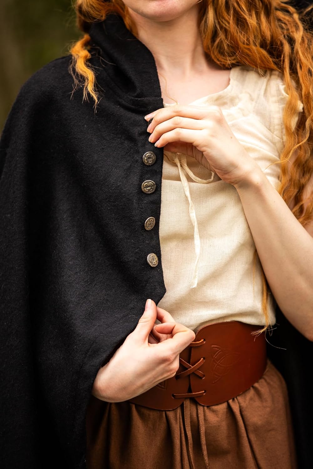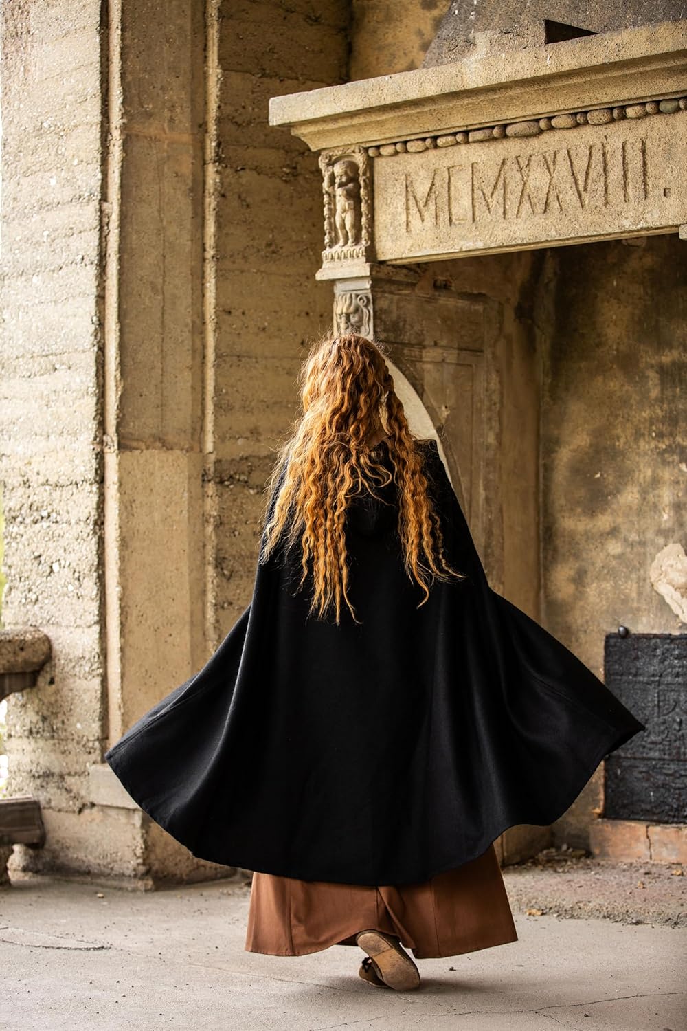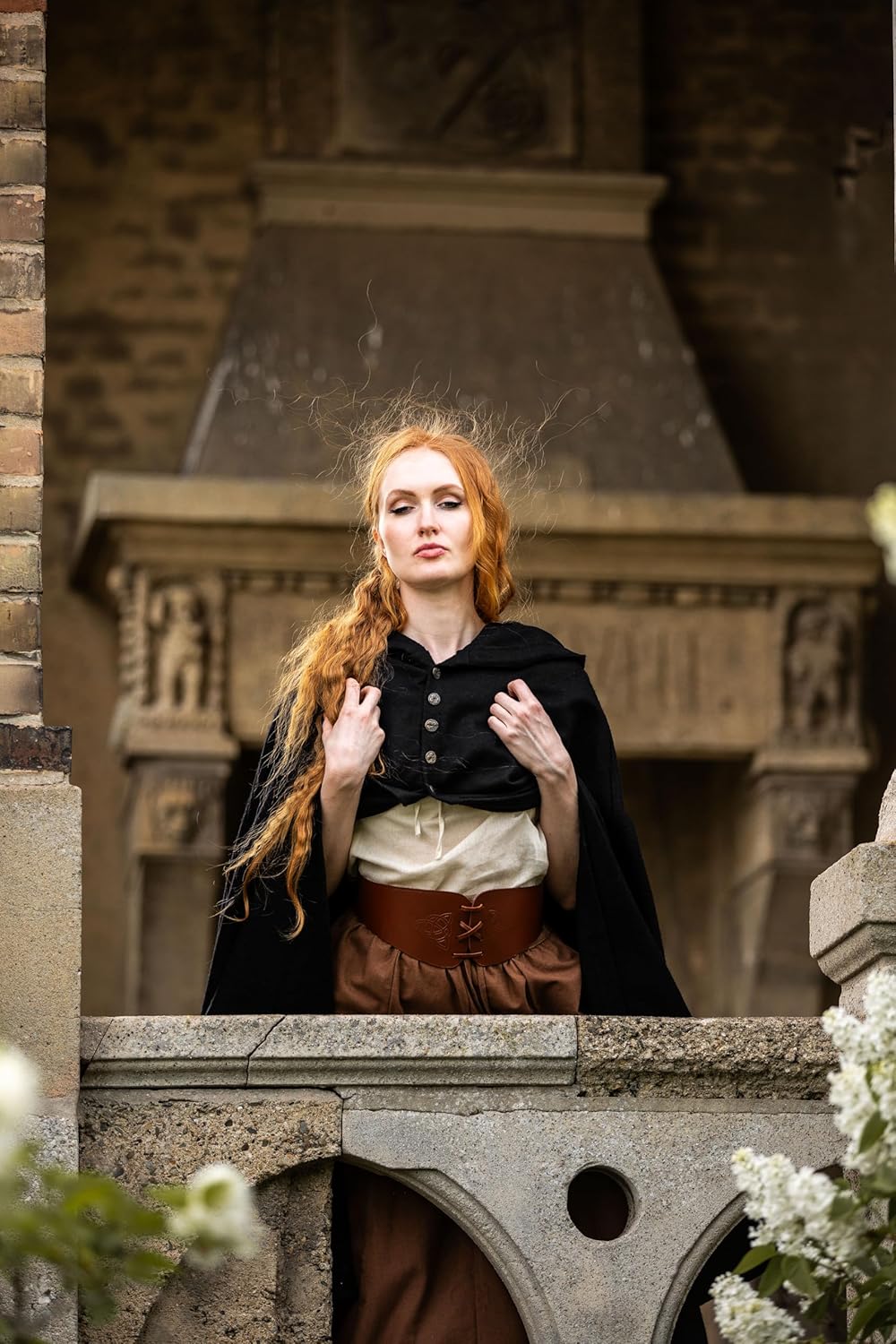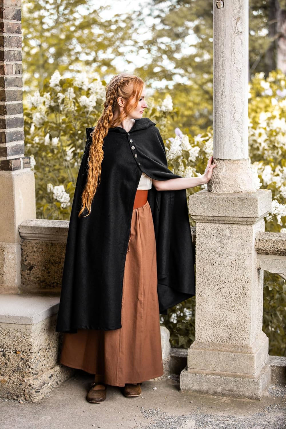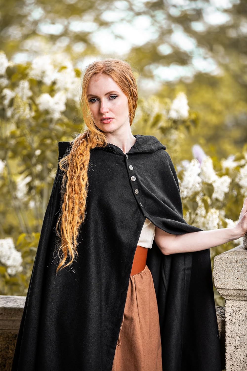 Colore: a scelta. Istruzioni di lavaggio: lavare a mano Tema: Medioevo & Vichinghi Tipo di chiusura: bottone Cinque bottoni in metallo sul davanti: i cinque bottoni in metallo offrono una chiusura sicura e conferiscono al mantello un elegante aspetto medievale. Mantello Heidi con cappuccio corto: il cappuccio corto protegge dal vento e dalle intemperie, senza limitare la libertà di movimento, perfetto per giornate fredde ed eventi storici. Qualità idrorepellente: il pesante misto lana non solo fornisce calore, ma ha un effetto idrorepellente in caso di pioggia leggera e fornisce una protezione aggiuntiva. Misto lana di alta qualità: realizzato in un robusto misto lana, il mantello offre comfort e durata ottimali, ideale per feste medievali e LARP. Dimensioni: lunghezza complessiva: circa 110 cm e larghezza del tessuto circa 231 cm. Offre una vestibilità generosa e una libertà di movimento ottimale. Contenuto della confezione: accessori raffigurati come cinture medievali e vichinghe, scarpe, borse e corna non sono inclusi, ma sono disponibili separatamente.