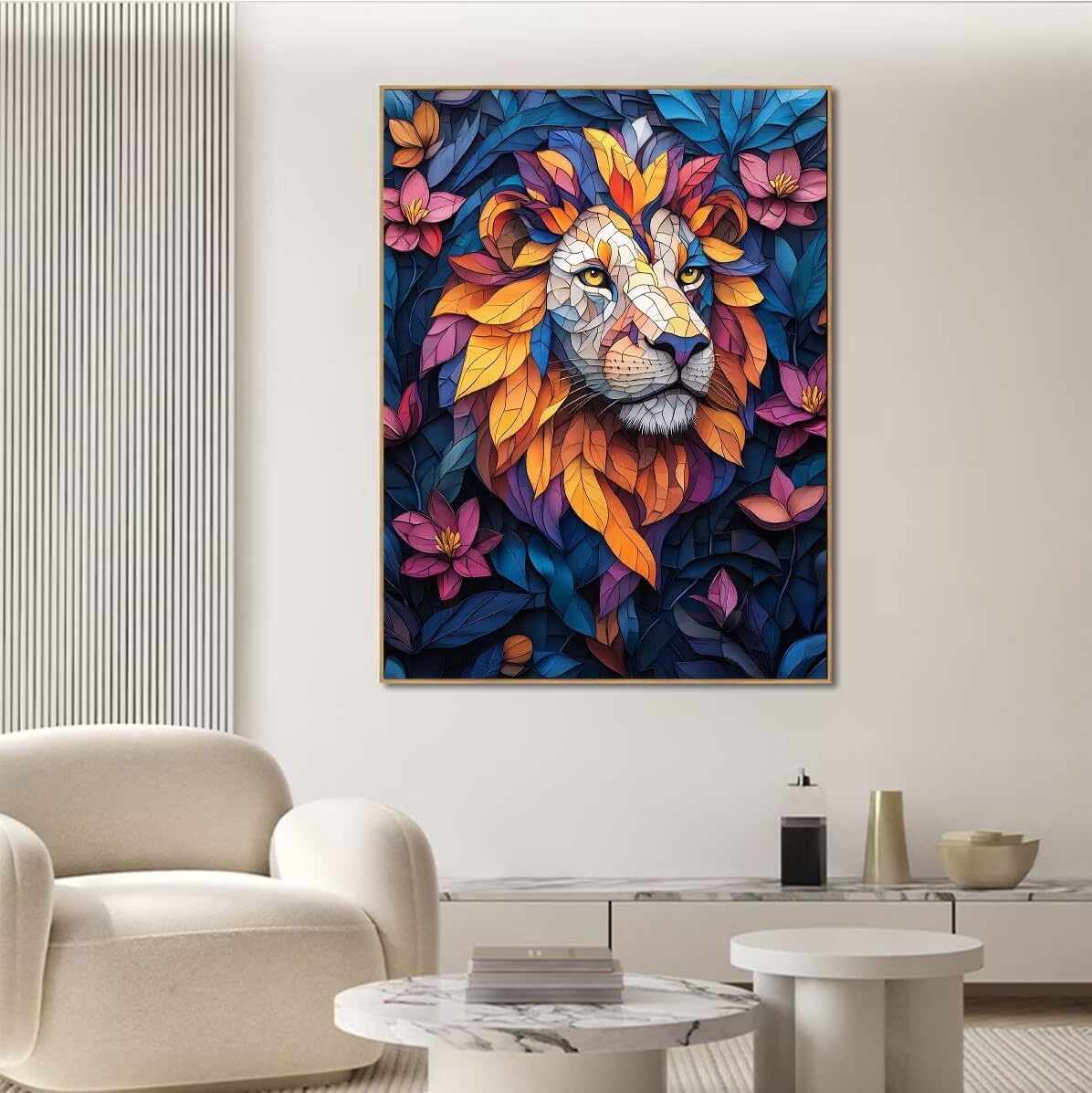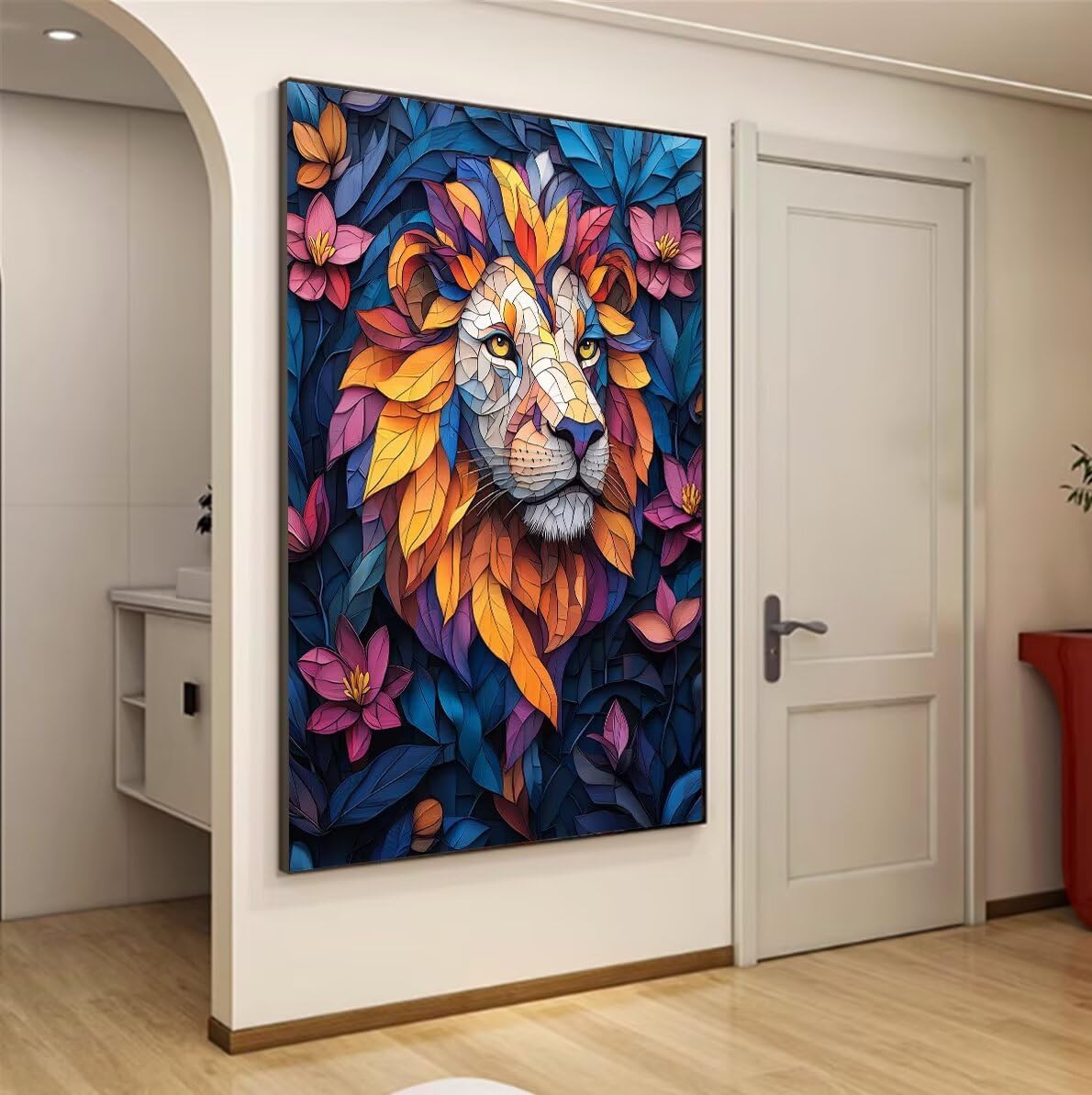 Leone Dipingere con i Numeri Fiore Paint by Numbers Dipingere con i Numeri Bambini con Cornice 30x40cm Tela, Kit Pittura Adulti Fai da Te Creativo con Vernici e 3 Pennelli, Home Room Decor F-764
