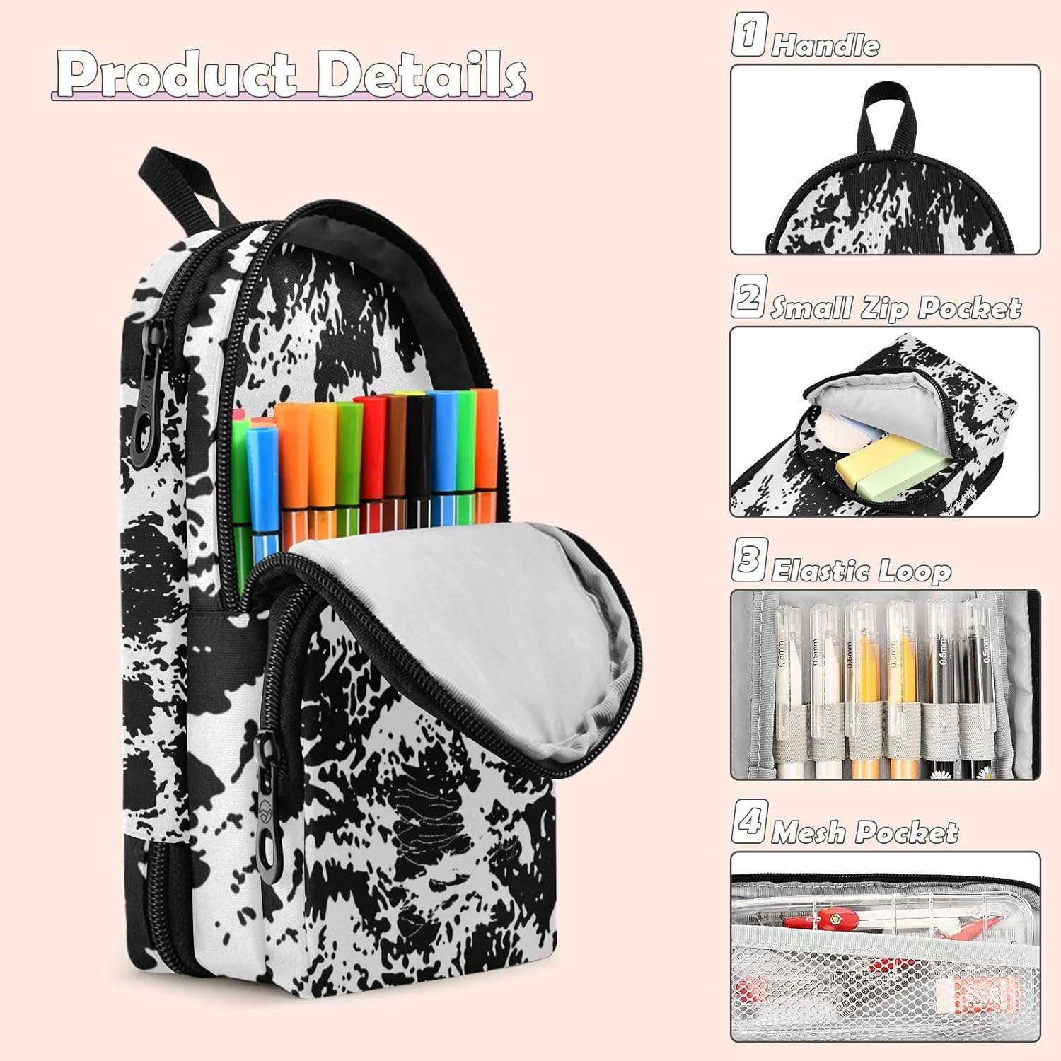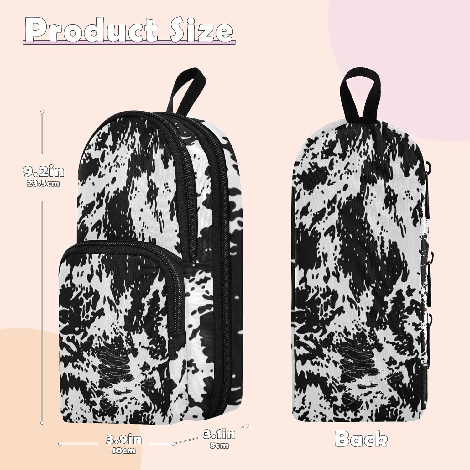 Conservazione: le dimensioni compatte di 23,4 x 9,9 x 7,9 cm, combinate con la grande capacità di 1600 ml, rendono questo astuccio comodo da trasportare soddisfacendo le vostre esigenze di carico. È un compagno per la tua creazione sempre e ovunque. Multiuso: con un design a tre strati, oltre ad ospitare un gran numero di matite sottili, l'astuccio può anche essere diviso in modo intelligente per riporre diversi tipi di cancelleria, come matite colorate e pennarelli, dando un gioco completo alla sua multifunzionalità. Materiale: plastica appositamente realizzata, la cerniera è liscia e facile da tirare. Il materiale è morbido ma resistente e non soggetto a deformazioni, fornendo una protezione affidabile e a lungo termine per le matite, che è una perfetta combinazione di qualità e durata. Design: il design alla moda, combinato con la squisita stampa senza cuciture, non è bello, ma ha anche una struttura interna ragionevole. Lo spazio a tre strati è completamente utilizzato, consentendo a ogni matita di trovare la giusta posizione. Età consigliata: dai 3 anni in su. Non adatto ai bambini di età inferiore ai 3 anni. Se avete qualche problema con questo astuccio estetico, vi preghiamo di contattarci via e-mail.