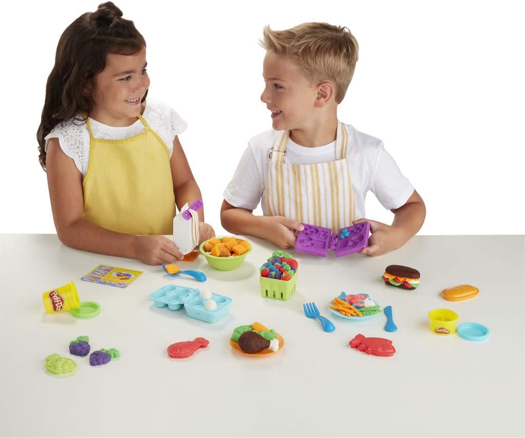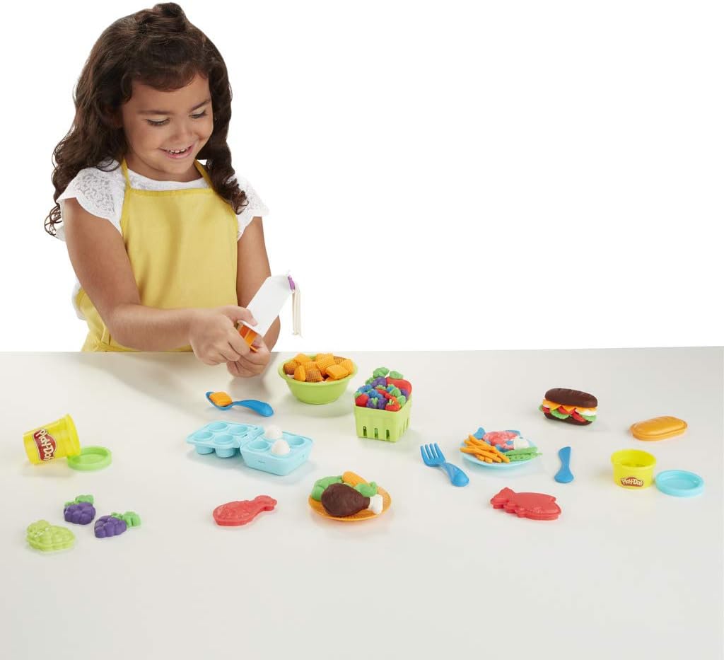 Con Plus Doh's Grocery Store, diventa il re degli chef di cucina con la plastilina! Imita i grandi chef, crea uova sode, carne, frutta e verdura e immagina i tuoi piatti! Versati una ciotola di latte con cereali utilizzando gli stampini inclusi. Le 2 carte di creazione mostrano passo dopo passo come realizzare progetti divertenti. Incluso: 10 stampi a forma di cibo, uno stampo a forma di scatola di cereali, uno stampo a forma di uovo sodo, uno stampo a forma di cartone di latte, uno stampo a forma di fragola, una ciotola, 2 piatti, una forchetta, un coltello, un cucchiaio, 2 carte di creazione e 7 vasetti di pasta da modellare Play-Doh (280 grammi in totale).