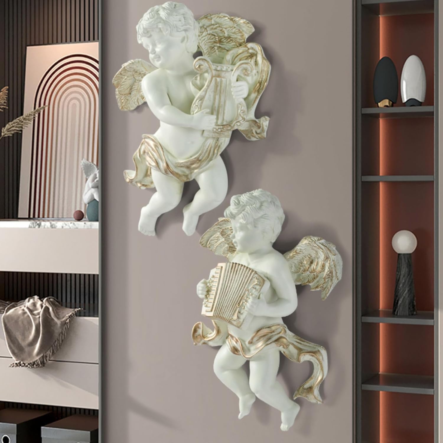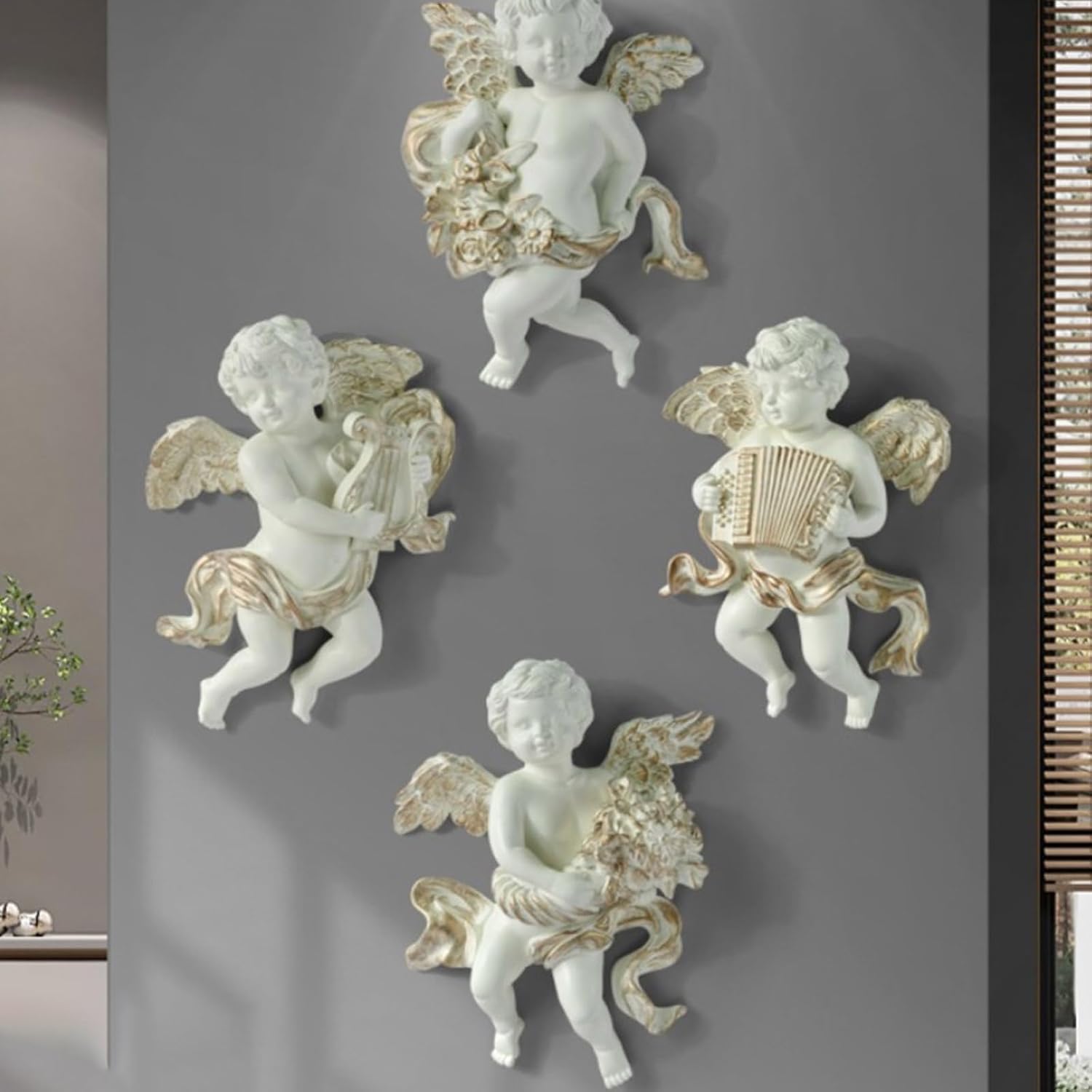 Questa intramontabile opera d'arte da parete in resina simboleggia l'amore ed è ideale come regalo di inaugurazione della casa o come regalo di anniversario per spazi preziosi Abbastanza versatile per valorizzare il soggiorno, lo studio o l'ufficio, trasforma la parete in un'area impegnativa, senza perforazione o hardware Perfetto per i proprietari di case impegnati, gli amanti dell'arte e le famiglie che cercano accenti decorativi a prova di bambino che si armonizzano con interni moderni o tradizionali Illumina la tua stanza con questo angelo alato a parete in resina che combina l'arte classica con l'installazione senza attrezzi e aggiunge eleganza a qualsiasi stanza senza sforzo Realizzato in resina resistente con elaborato intagliato a mano, questo ornamento da appendere alla parete resiste allo sbiadimento e all'usura mantenendo la sua qualità museale