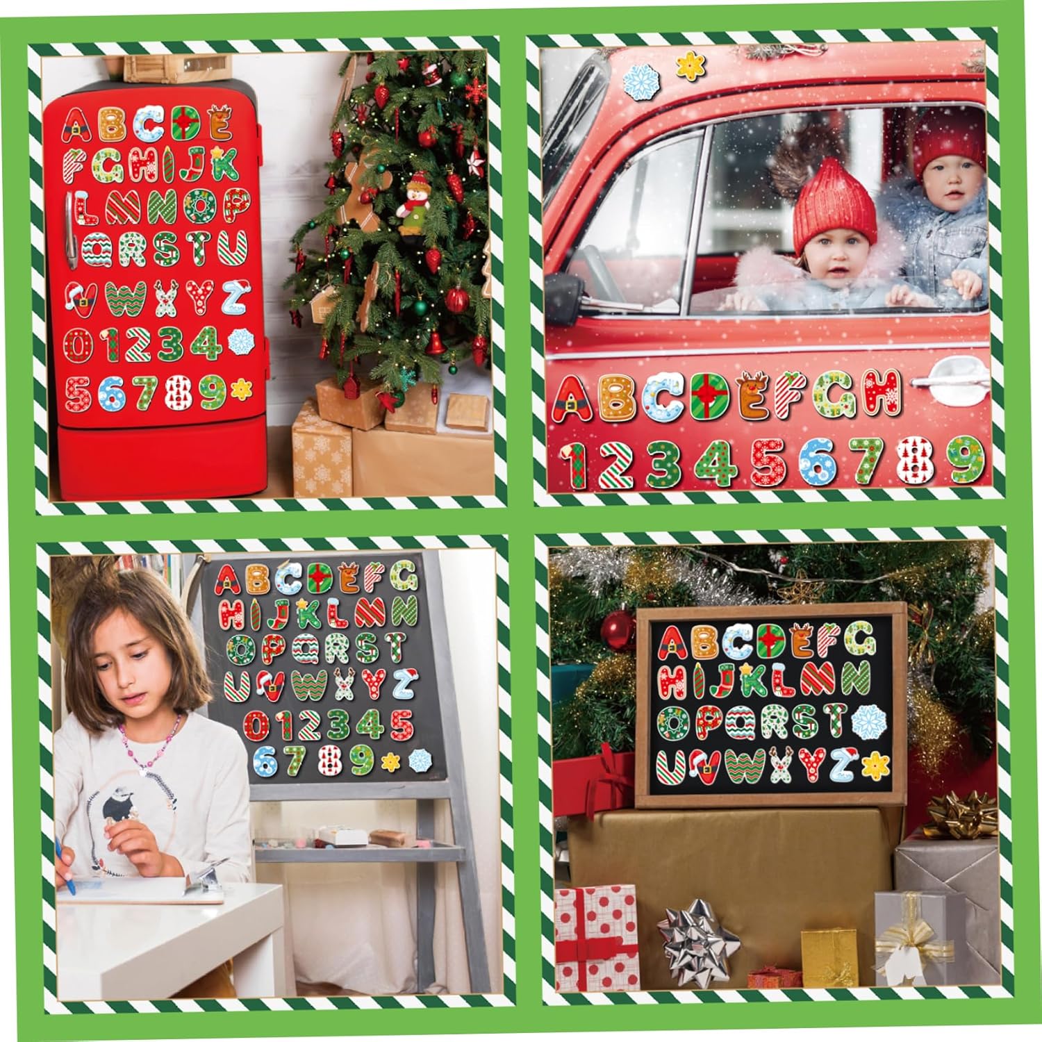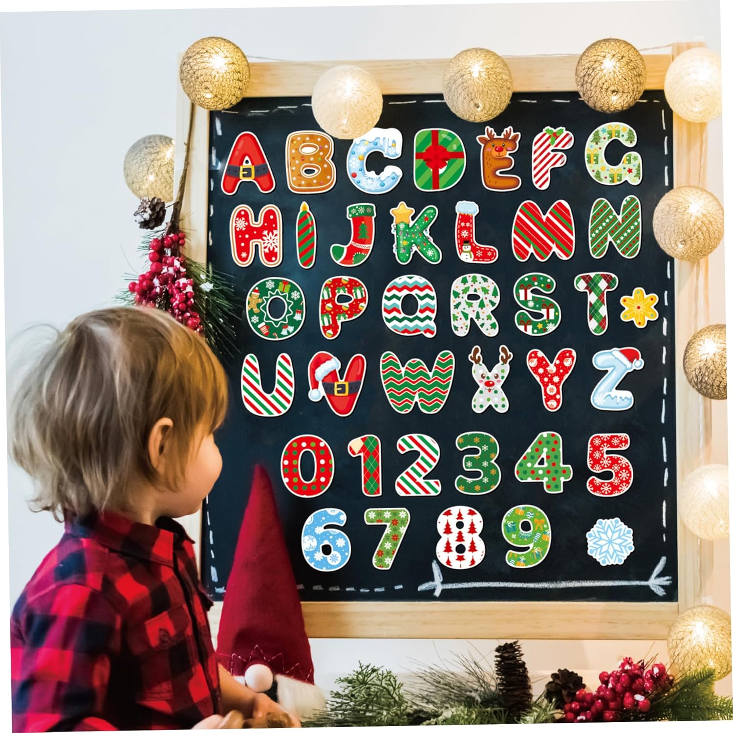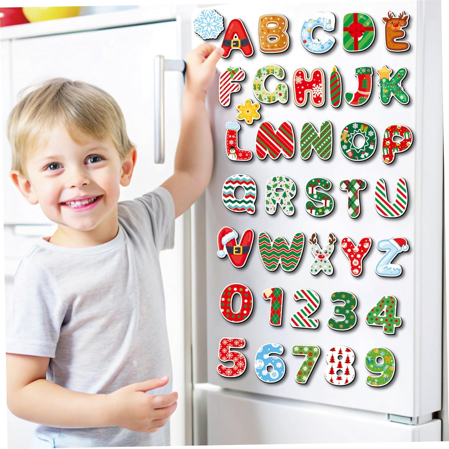 Versatile e facile da usare: il forte supporto magnetico aderisce saldamente ai frigoriferi e ad altre superfici metalliche, ideale per l'apprendimento precoce interattivo e la decorazione creativa delle vacanze. Design vivace dei cartoni animati: magneti luminosi e colorati a tema natalizio con simpatici personaggi dei cartoni animati attirano e attirano l'attenzione dei bambini, migliorando l'apprendimento visivo e il divertimento festivo. Divertimento per l'apprendimento precoce: lettere e numeri magnetici sono progettati per promuovere il riconoscimento dell'ABC e le abilità numeriche per i più piccoli, combinando l'istruzione con l'impegno giocoso. Sicuro e non tossico: realizzato con materiali atossici e sicuri per i bambini che garantiscono un gioco senza preoccupazioni per i bambini di età compresa tra 1 e 3 anni, supportando l'esplorazione sensoriale e l'apprendimento sicuri. Stabili e impermeabili: realizzati con materiali cartacei impermeabili di prima qualità, questi magneti da frigorifero resistono a schizzi e maneggiamenti bruschi, perfetti per l'uso quotidiano in famiglie frenetiche.
