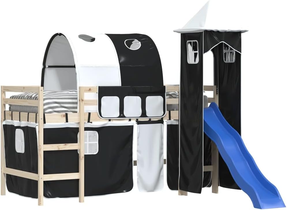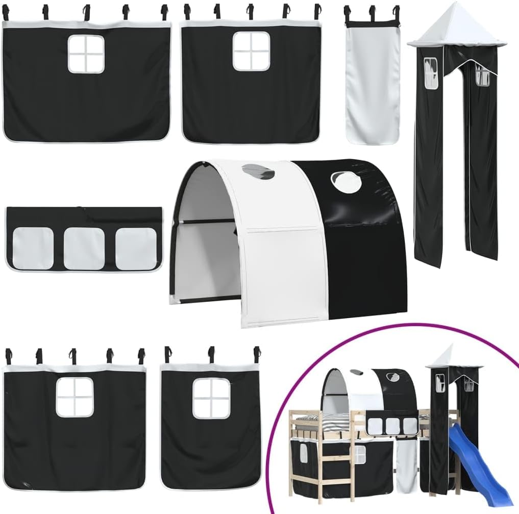 Letti e accessori, accessori per telaio letto e letto, tende per letto a soppalco con tunnel e torre, bianco e nero Colore: nero Mobili,Letti e accessori,Accessori per telaio letto e letto Tende per letto a soppalco con tunnel e torre, colore: bianco e nero