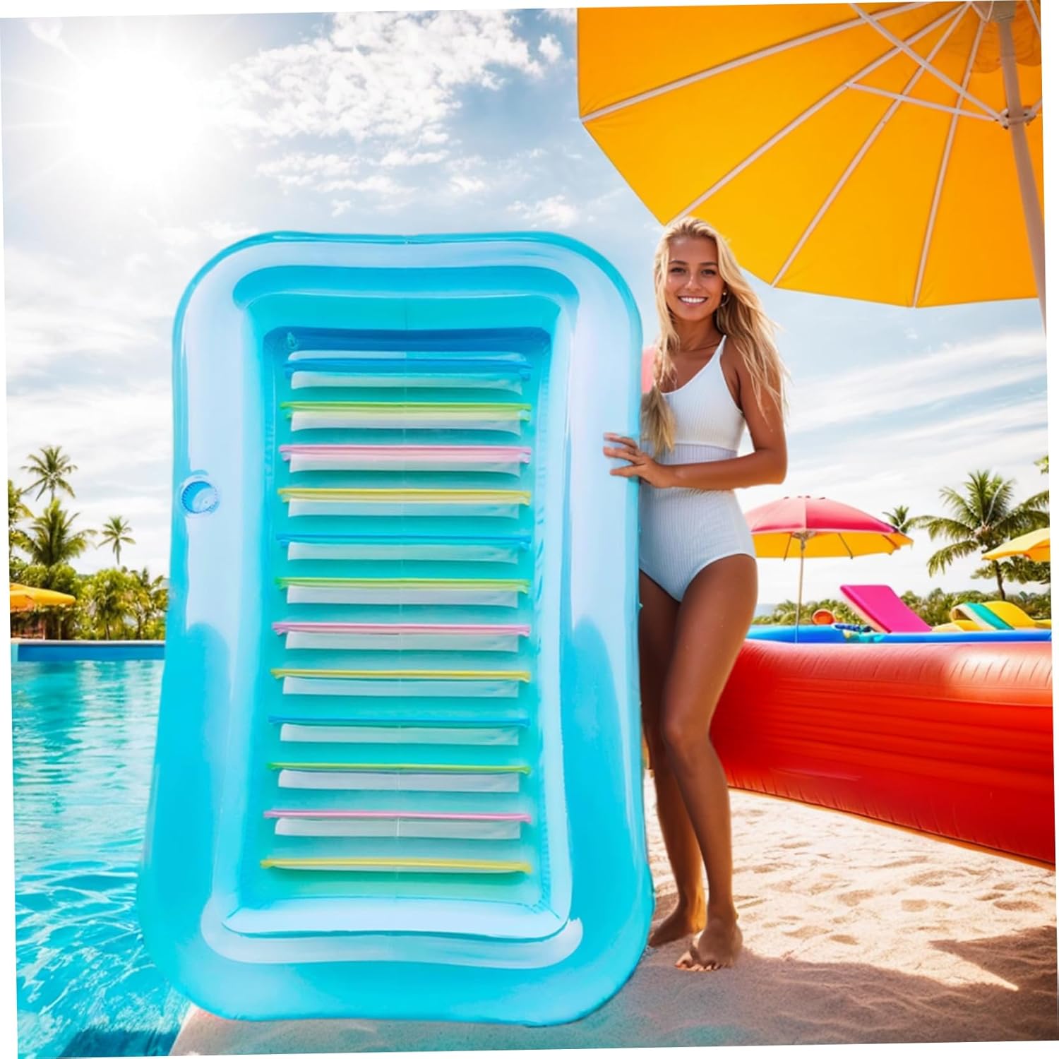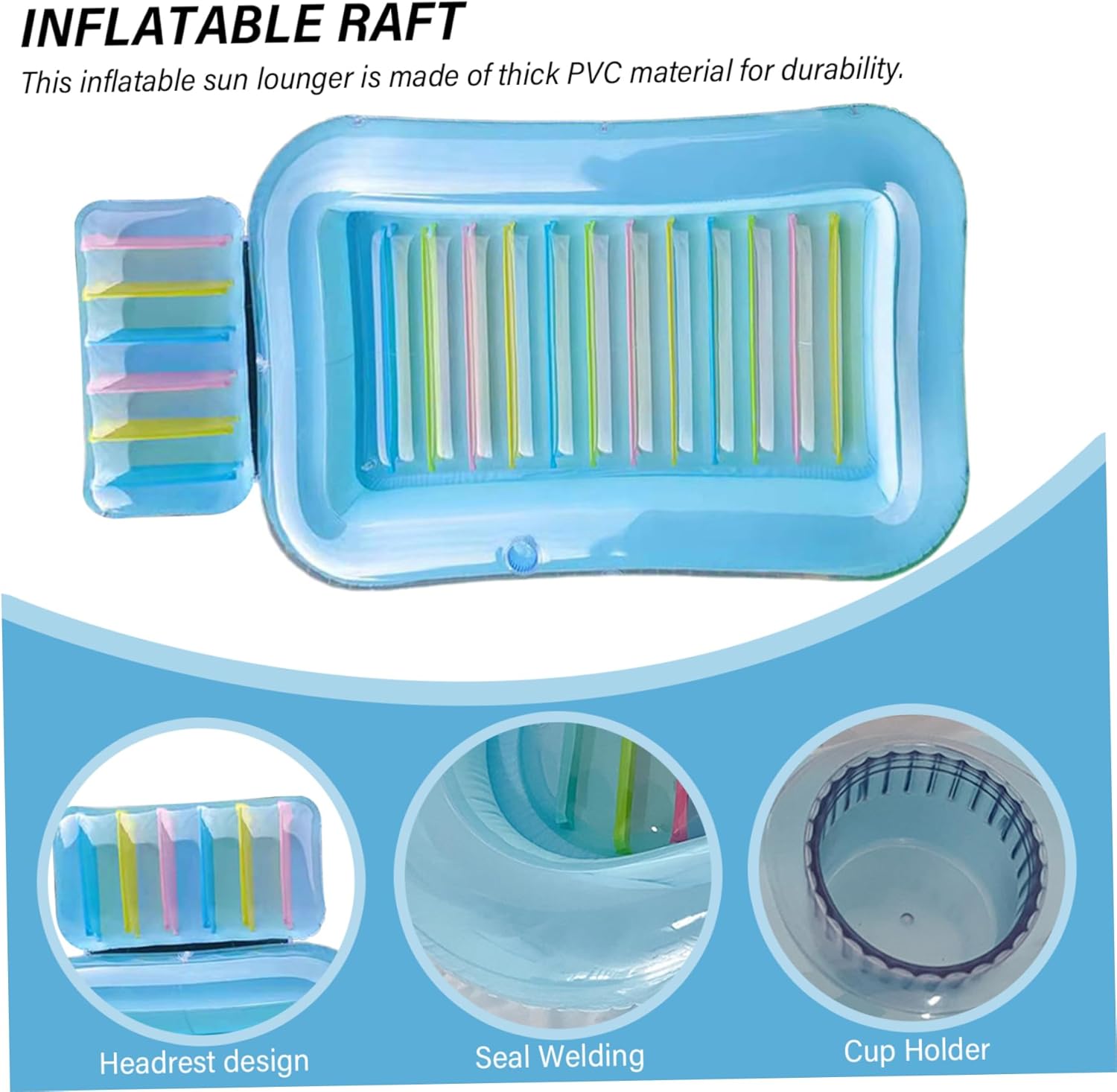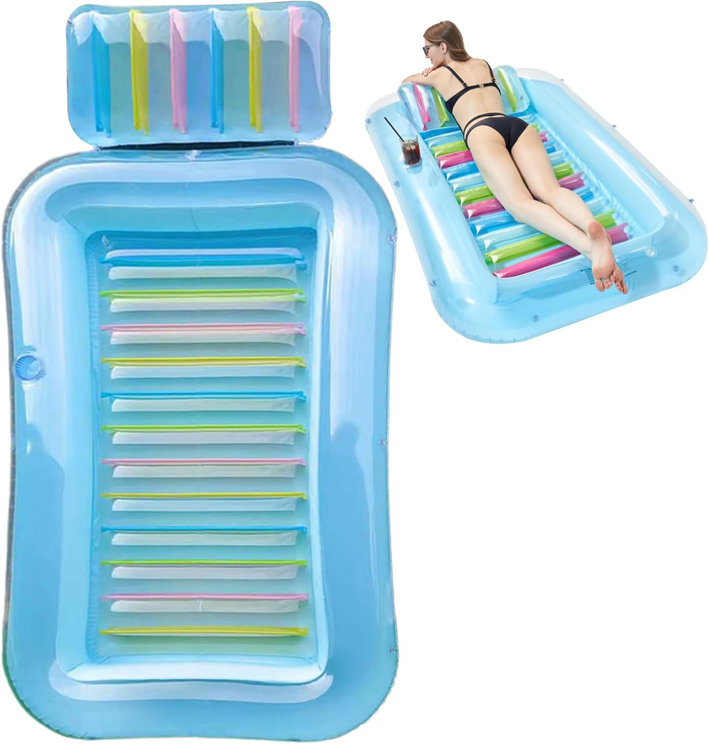 Portatile e pieghevole: questo galleggiante gonfiabile per piscina utilizza un ugello d'aria 3 in 1 per un rapido gonfiaggio e sgonfiaggio..Può essere gonfiato e sgonfiato ripetutamente, con più camere d'aria indipendenti per una maggiore sicurezza..Basta sgonfiarlo, piegarlo e riporlo per riporlo e trasportarlo comodamente. Uso versatile: ideale sia per adulti che per bambini, questo lettino abbronzante da piscina è perfetto per prendere il sole in spiaggia, rilassarsi in piscina e rilassarsi in giardino..Il suo design spazioso e le sue caratteristiche confortevoli lo rendono un must per tutte le tue attività estive. PVC spesso: realizzato in PVC spesso, questo lettino prendisole gonfiabile è costruito per durare e durare a lungo..La sua struttura robusta supporta sia adulti che bambini, garantendo infinite ore di divertimento e relax. Comodo portabevande: rimani rinfrescato mentre ti abbronzi con il portabevande integrato, mantenendo la tua bevanda preferita a portata di mano..Goditi una bevanda fresca senza dover lasciare la piscina, migliorando la tua esperienza di relax. Design spazioso: goditi un lussuoso bagno di sole con questo lettino da piscina rettangolare abbronzante da 69,29x43,31x7,87 pollici progettato sia per adulti che per bambini..È dotato di un comodo cuscino che sostiene perfettamente la testa e il collo mentre prendi il sole.