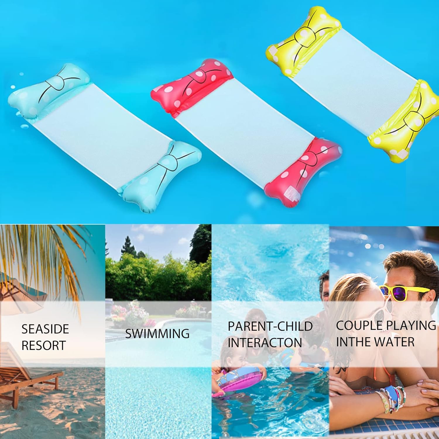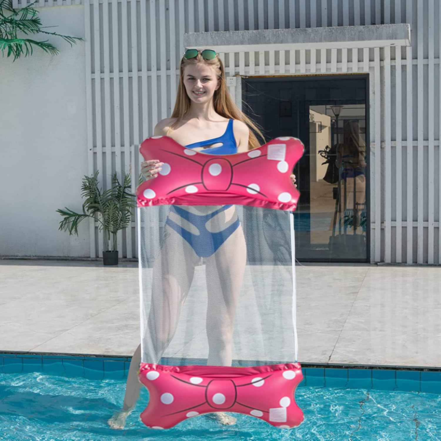 Qualità: la nostra amaca ad acqua è realizzata in PVC spesso di alta qualità e rete intrecciata di alta qualità. La maggiore tenuta all'aria ti consente di nuotare comodamente nell'acqua. Amaca gonfiabile multifunzionale 4 in 1: design 4 in 1, puoi trasformare l'amaca ad acqua in un'amaca, una sedia, un vagabondo o una sella sportiva. Puoi goderti il divertimento dei giochi acquatici in estate. Facile da trasportare e trasportare: l'amaca gonfiabile può essere piegata in una forma piatta, basta arrotolarla per riporla o portarla con sé. Puoi gonfiarlo e sgonfiarlo facilmente con una pompa ad aria, puoi portarlo con te quando viaggi. Con grande capacità di carico: il carico massimo è di 150 kg, ha una perfetta forza di galleggiamento in acqua. Il design ergonomico offre molto supporto e comfort, consente ai nuotatori di rilassarsi per ore in piscina e godersi ogni momento della vacanza. Regalo estivo perfetto: perfetto per feste in piscina e divertimento in spiaggia. Il miglior regalo di compleanno, regalo estivo. In caso di ulteriori problemi, non esitare a contattarci e il nostro amichevole team di assistenza clienti è qui per aiutarti.