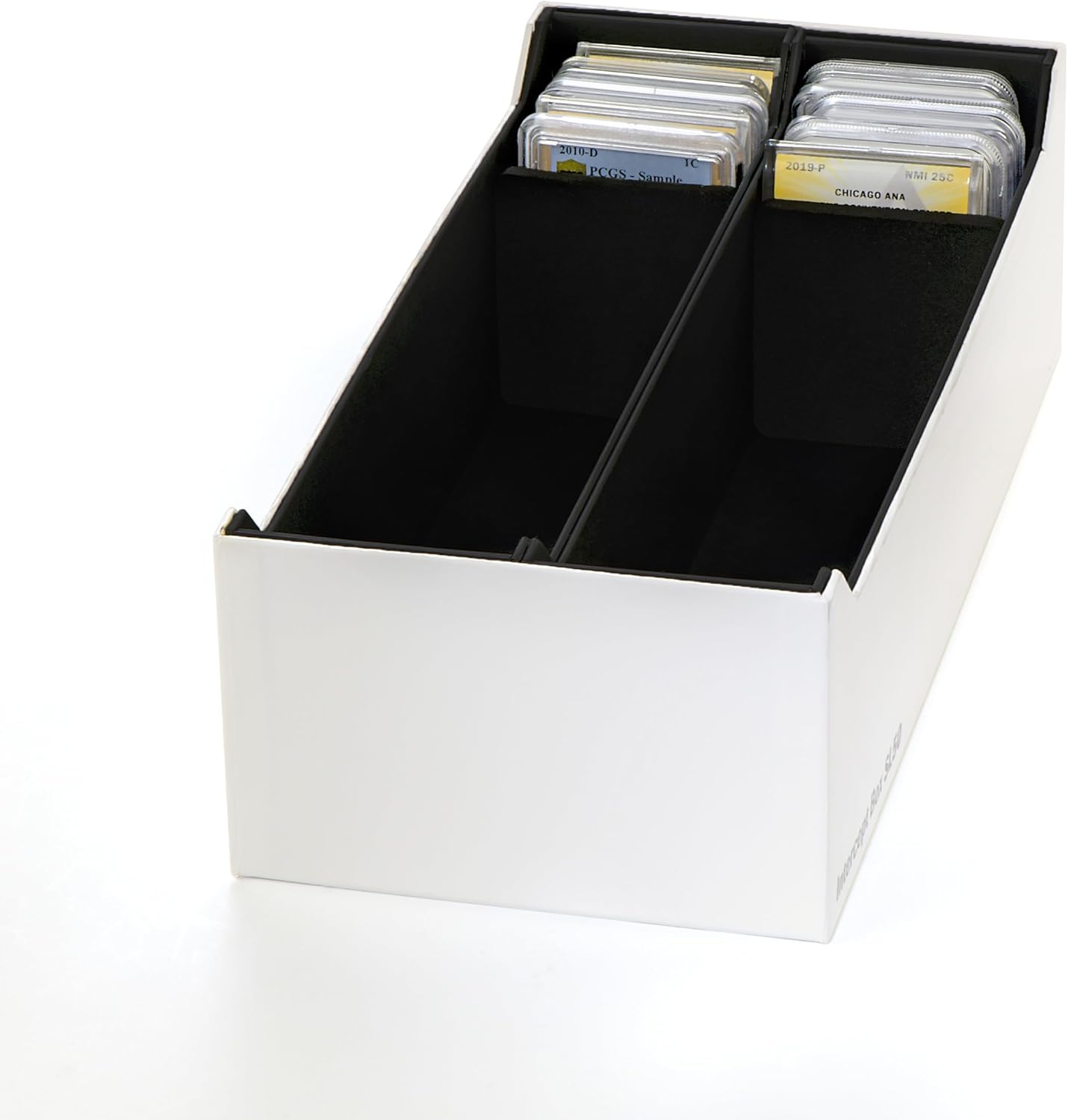 Antiossidazione: l'interno della scatola portaoggetti è rivestito con materiale Intercept, che protegge attivamente gli oggetti da collezione dall'ossidazione e dall'invecchiamento. Protezione - La scatola serve a proteggere 50 capsule per monete Slab (Everslab, Quickslab, PCGS, NGC, ecc.), ma anche monete e medaglie in rame, oro, argento, ottone, ecc. Tecnologia Intercept: le particelle di rame contenute nel materiale legano permanentemente i gas corrosivi e creano così un'atmosfera neutralizzata Formato - Grazie alle sue dimensioni di 321 x 152 x 97 mm, la scatola è ideale per conservare diversi oggetti da collezione, ma anche per conservarli rapidamente e facilmente. Faro - Dal 1917 produciamo accessori da collezione per monete, francobolli e altri oggetti da collezione sia per principianti che per collezionisti esperti.