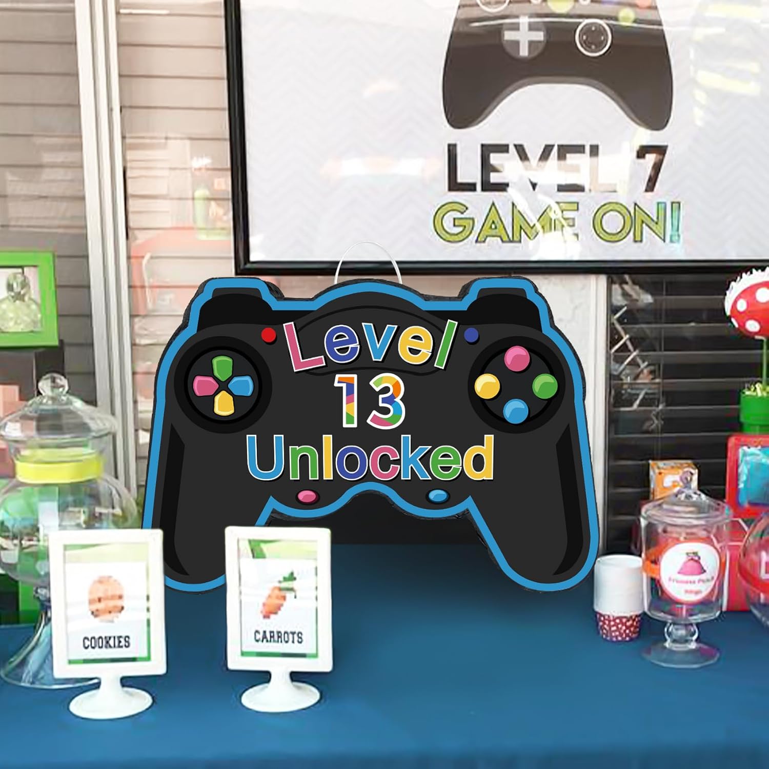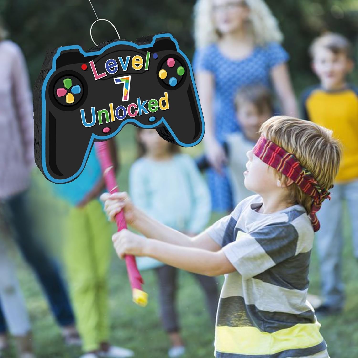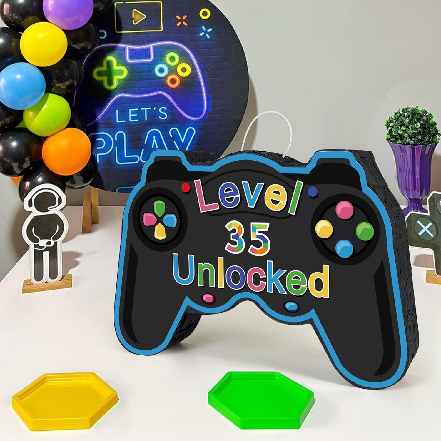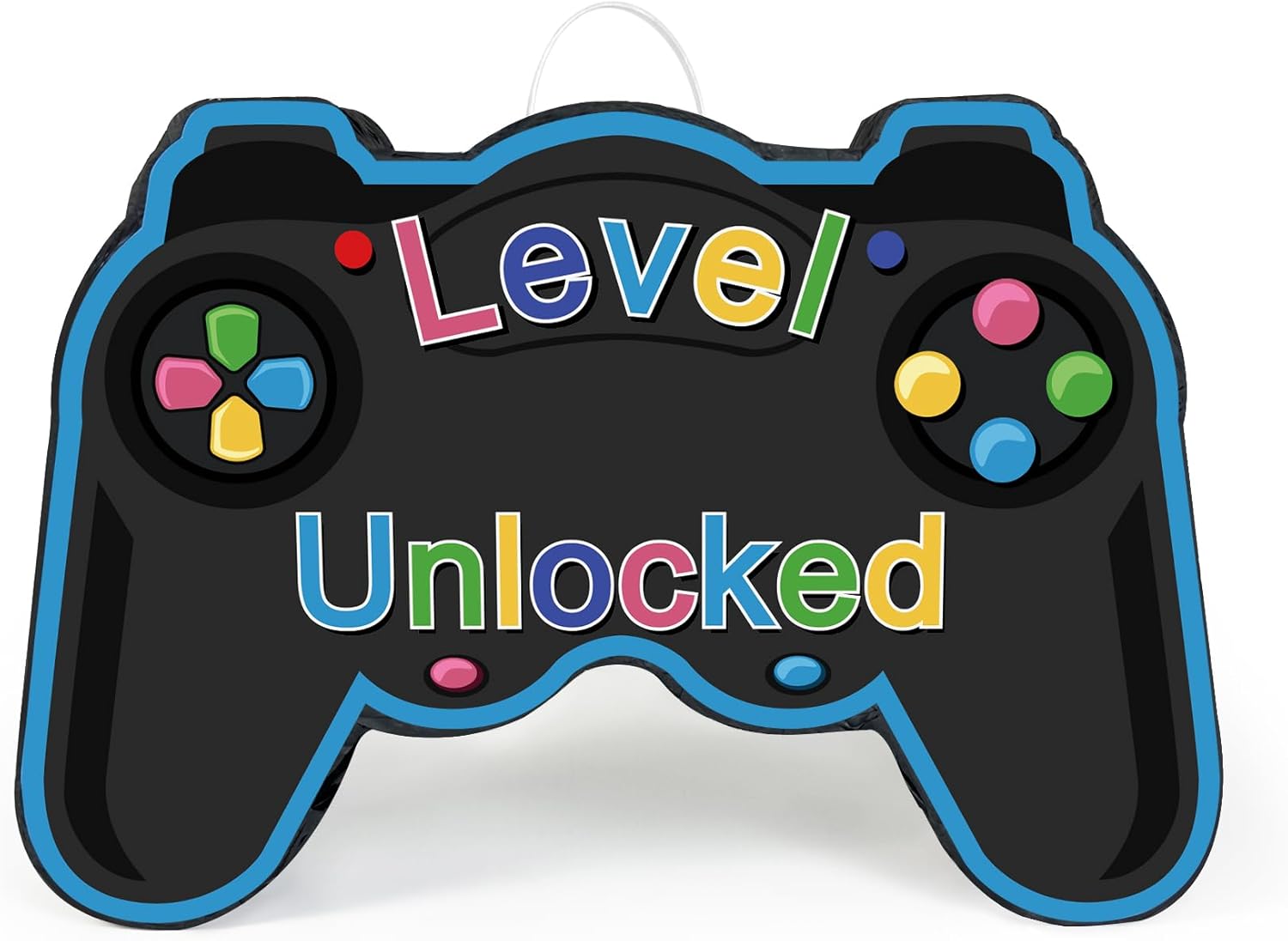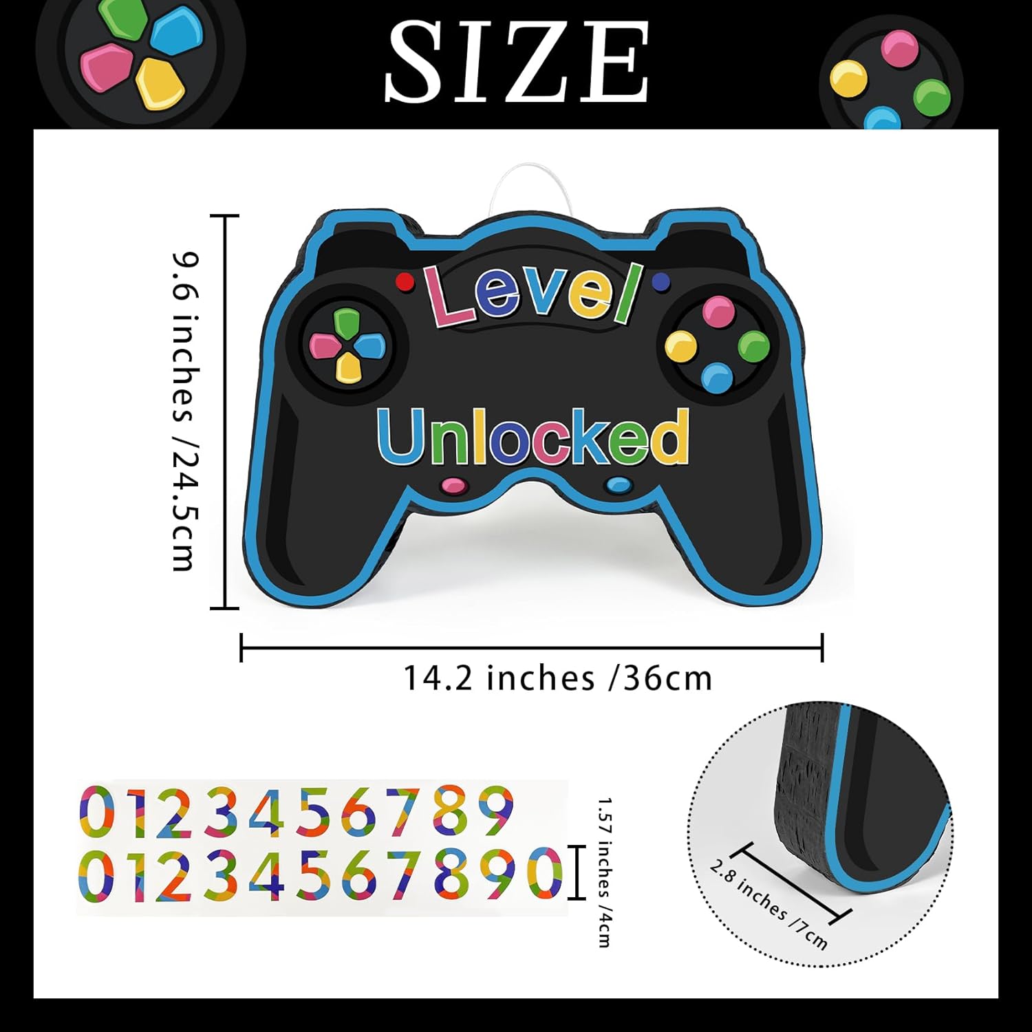 Level Unclock - Piñata a forma di controller per videogiochi, per feste di compleanno, decorazione per il 21° compleanno, personalizzabile da 1 a 100 anni, con numeri adesivi, decorazioni per feste