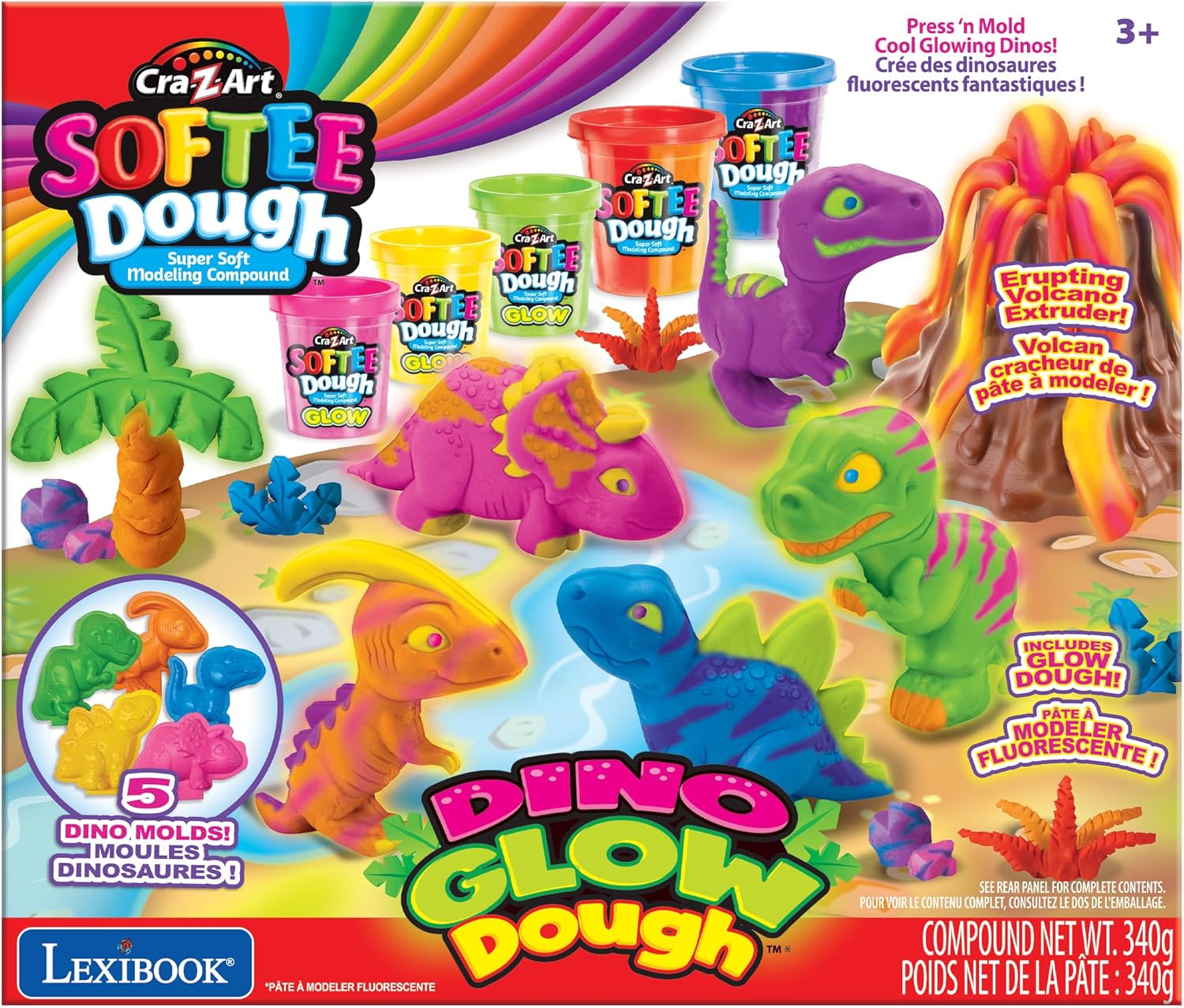 VIAGGIA NELLA PREISTORIA – Questo gioco invita i bambini a viaggiare nell’era dei dinosauri, creando dinosauri colorati in un attimo grazie agli stampi forniti UN’ESPERIENZA RICCA DI COLORI – Grazie all’apparecchio vulcano integrato, è possibile far fuoriuscire lava rossa e arancione in pasta modellabile per ricreare spettacolari eruzioni vulcaniche SVILUPPARE LA MOTRICITÀ DIVERTENDOSI – Manipolare, premere, rotolare, modellare: divertendosi, i bambini affinano la coordinazione e la destrezza senza nemmeno accorgersene ACCESSORI CREATIVI INCLUSI – Un set completo per immaginare un intero mondo preistorico: il kit comprende 2 barattoli di pasta da modellare bicolore da 85g, 3 barattoli fosforescenti da 57g, un dispositivo vulcano, un tappetino da gioco, 5 stampi di dinosauri, un rullo e uno strumento per tagliare QUALITÀ LEXIBOOK - Apprezzato dai bambini, approvato dai genitori. Marchio di giocattoli rinomato e certificato, Lexibook offre prodotti intelligenti, di alta qualità e sicuri, per cui potete acquistare con fiducia.