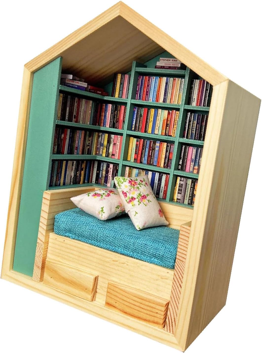 [Relief di ansia terapeutica] Scuotere la tua libreria d'ansia offre un'esperienza unica e calmante. Scuoti questi libri quando sei stressato, organizzali quando sei ansioso e scopri qualcosa di nuovo ogni volta. Questa attività terapeutica aiuta a lenire la tua mente e fornisce un senso di rilassamento e tranquillità, rendendola un'aggiunta perfetta alla tua routine quotidiana. [Materiale in legno premium] Realizzato in legno robusto e di alta qualità, questo scaffale è progettato per resistere alla deformazione e garantire una durata duratura. La sua costruzione robusta garantisce anni di utilizzo, mentre la sua finitura in legno naturale migliora l'atmosfera festosa del tuo spazio abitativo, aggiungendo un tocco di eleganza e calore a qualsiasi stanza. [Exquisito design fatto a mano] Il nostro scaffale di ansia Shake Away presenta un design bellissimo e dettagliato, in grado di contenere fino a 200 libri piegati. Questa casa di libri e bambole fatte a mano funge da accattivante pezzo decorativo, infondendo fascino e carattere in qualsiasi ambiente. La sua intricata artigianato lo rende un'aggiunta straordinaria alla tua casa o all'arredamento 'ufficio. [Perfetta scelta ] Questa bellissima libreria che scuote l'ansia in miniatura è un ideale per gli amanti dei libri e per chiunque apprezzi un arredamento unico e artistico. Il suo tocco artistico e il design divertenti impressioneranno chiunque lo veda, rendendolo un delizioso e ponderato per compleanni, vacanze o occasioni speciali. [Versatile pezzo decorativo] La nostra libreria di ansia Shake Away aggiunge arte e creatività alle tue decorazioni per le vacanze, adatti a camere, studi, scrivanie, soggiorni, librerie e caffetterie. Il suo design versatile gli consente di fondere perfettamente con vari stili interni, migliorando il fascino estetico di qualsiasi spazio fornendo al contempo un elemento funzionale e decorativo.