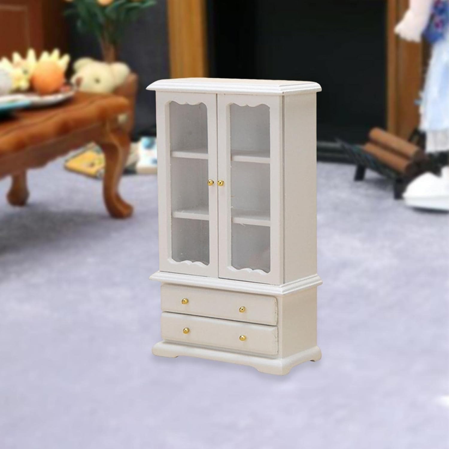 Ottimo regalo: libreria da collezione per chi ama l'artigianato e le miniature simulazione foto prop: scaffale libro con cassetti modello, artigianato delicato, semplice ma stile vintage foto prop Montaggio: libreria a doppia porta modello di mobili per casa delle bambole 1:12, accessorio per casa delle bambole Materiale: libreria in miniatura realizzata in legno di qualità, durevole, superficie liscia Decorazione della casa delle bambole: mini libreria con doppie ante modello decorazione casa delle bambole in miniatura