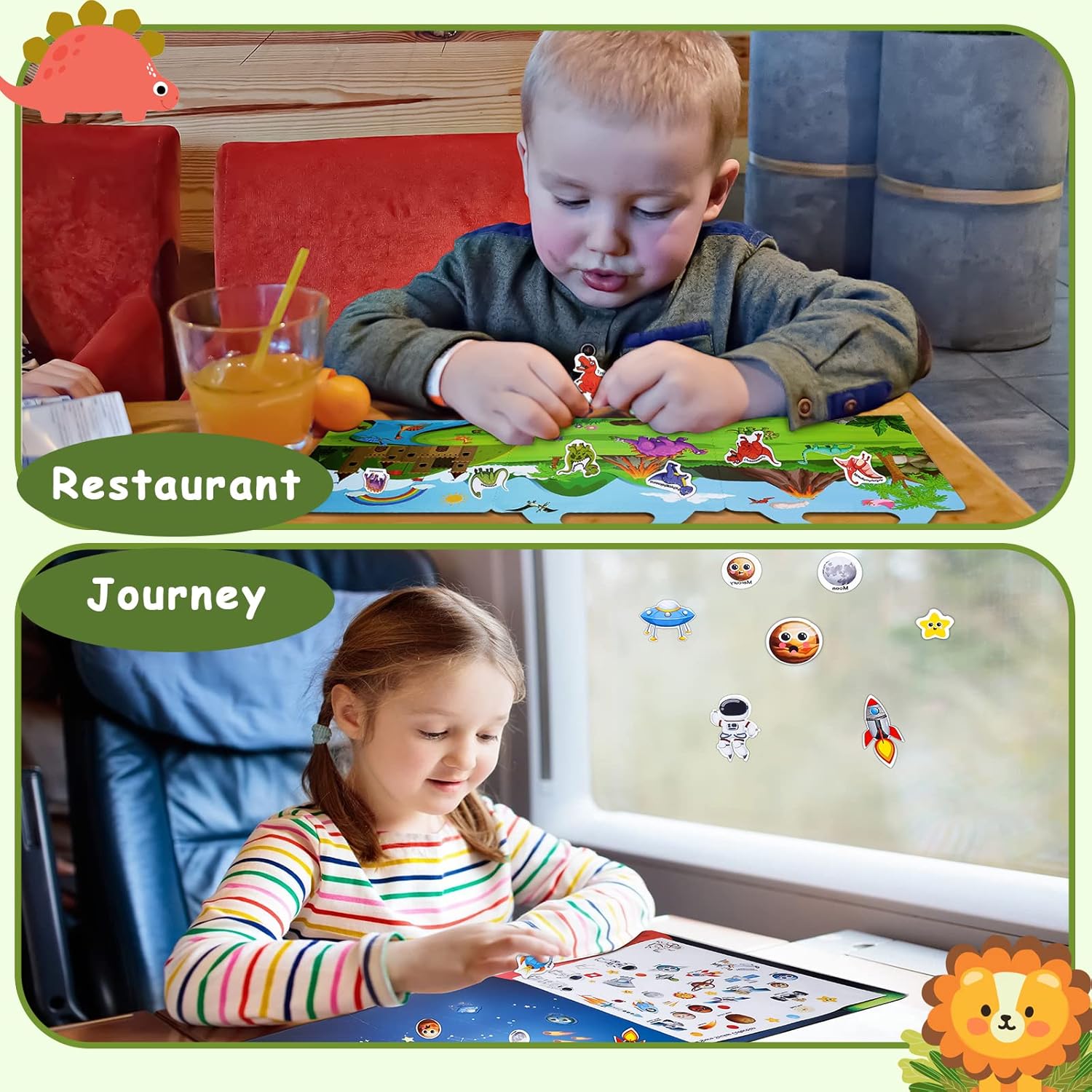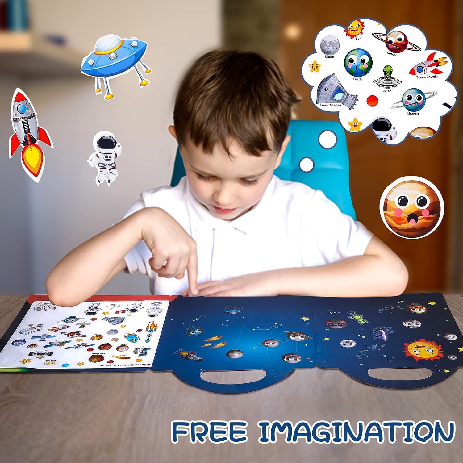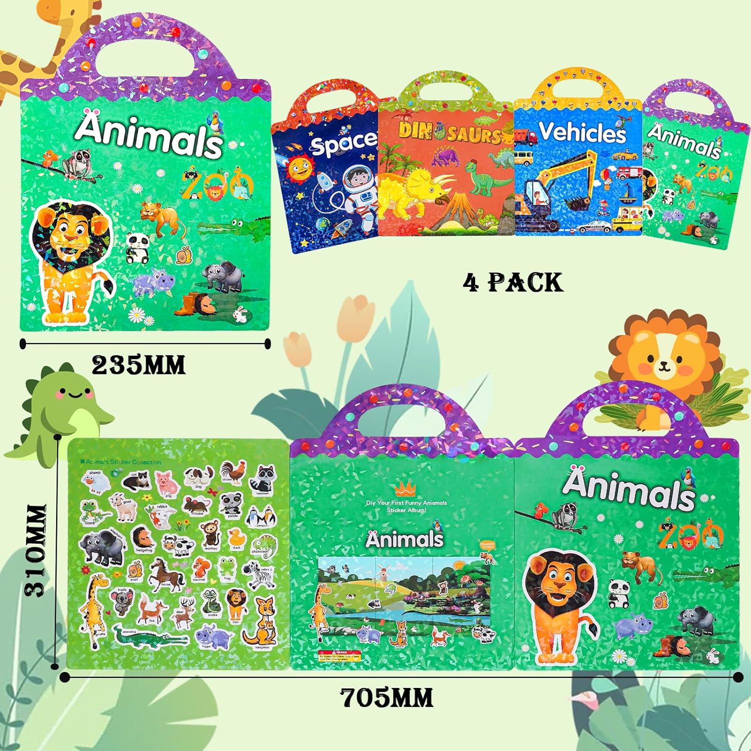 Libri di adesivi creativi ed educativi per bambini: la nostra confezione da 4 libri di adesivi è progettata per incoraggiare la creatività e l'apprendimento nei bambini. Crea le tue scene e storie con adesivi riutilizzabili attraverso diversi temi carini. INCORAGGIA LA CREATIVITÀ: Con i nostri libri di adesivi, i bambini possono usare la loro immaginazione per decorare scene diverse e dare vita alle loro creazioni con adesivi vivaci. Questo gioco fai-da-te è perfetto per il divertimento interattivo con i bambini, stimolando l'immaginazione e consentendo il gioco creativo lontano dagli schermi. Sviluppa le capacità motorie: gli adesivi di questi libri sono appositamente progettati per essere facili da staccare e incollare, aiutando i bambini piccoli a sviluppare le loro capacità motorie. Imparano la coordinazione occhio-mano e la destrezza mentre manipolano e posizionano gli adesivi sulle pagine. Adesivi riutilizzabili e impermeabili: i nostri adesivi sono realizzati in materiale PVC resistente, sono impermeabili, rispettosi dell'ambiente e possono essere staccati e riutilizzati più volte senza perdere la loro adesività. I bambini possono attaccarli non solo nei libri ma anche su superfici lisce come finestre, vetri, specchi e altro. Giocattoli per ogni occasione: i nostri libri di adesivi sono dotati di una pratica maniglia, che li rende ideali per i viaggi, i viaggi su strada e l'asilo. Sono un giocattolo ideale per compleanni, Natale, Pasqua o qualsiasi occasione speciale per ragazzi e ragazze. I nostri libri di adesivi sono progettati per offrire ore di divertimento e incoraggiare i bambini a usare la loro immaginazione e imparare mentre lo fanno.