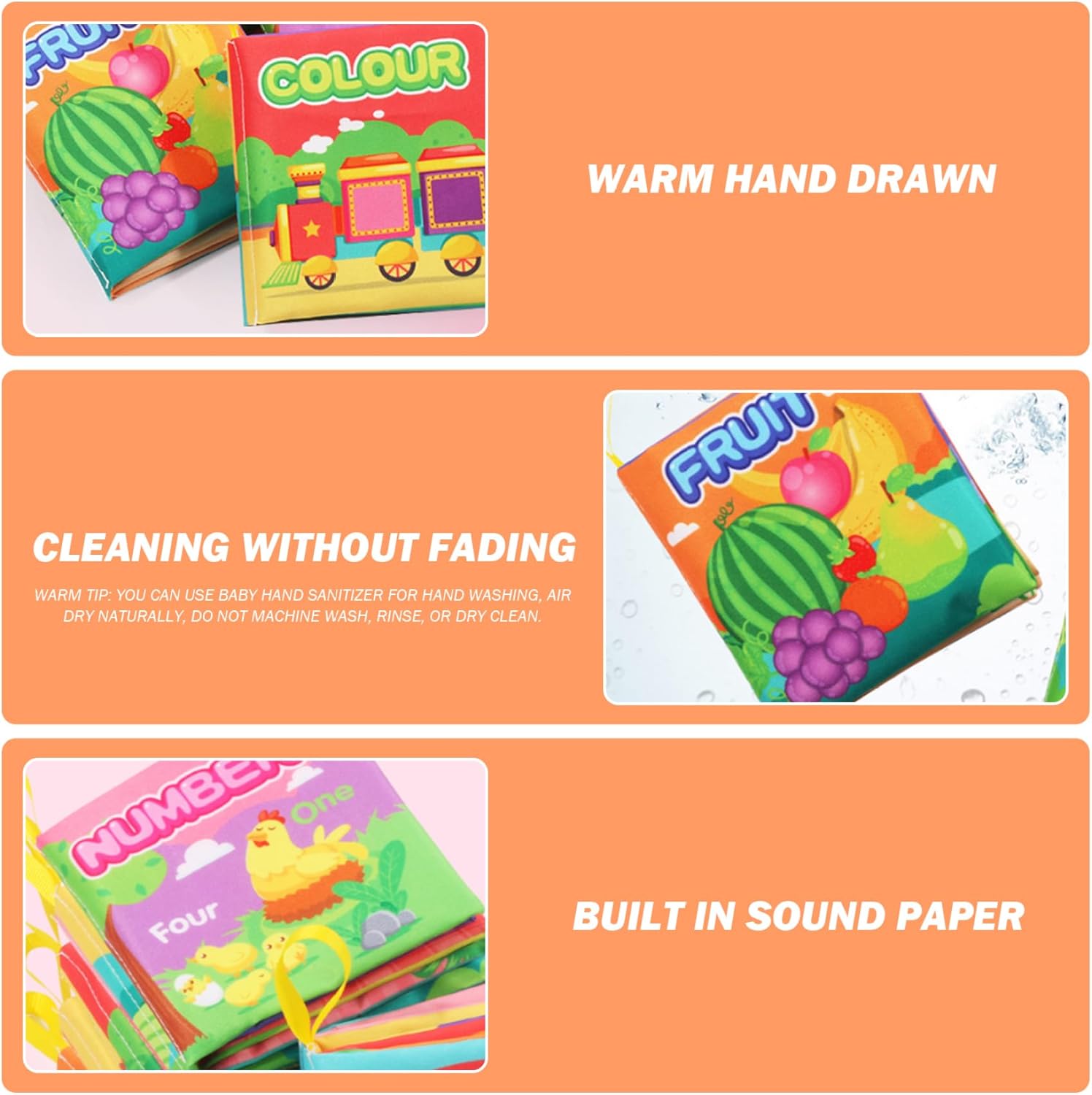 Educativo e divertente: presenta al tuo bambino concetti di apprendimento precoce come animali, forme, colori e altro ancora, rendendo il momento del bagnetto un'esperienza educativa e divertente per il tuo bambino. Divertenti e coinvolgenti: progettati per attirare l'attenzione del tuo bambino con colori vivaci e motivi accattivanti, questi libri da bagno rendono il momento del bagnetto più piacevole e coinvolgente per il tuo piccolo. Dimensioni perfette: questi libri da bagno per neonati sono della dimensione perfetta per le mani piccole, garantendo che i bambini possano facilmente afferrare, tenere e girare le pagine in modo indipendente per un'esplorazione autoguidata durante il bagno. Costruzione impermeabile: Realizzati con materiali di alta qualità, impermeabili e antistrappo, questi libri per il bagnetto sono perfetti per le giocose sessioni di spruzzi del tuo bambino, garantendo longevità e durata anche durante la manipolazione brusca. Effetti sonori interattivi: ogni libro dei giocattoli da bagnetto è dotato di una copertina sonora interattiva che intratterrà il tuo bambino stimolando i suoi sensi uditivi e migliorando lo sviluppo cognitivo durante il bagnetto.