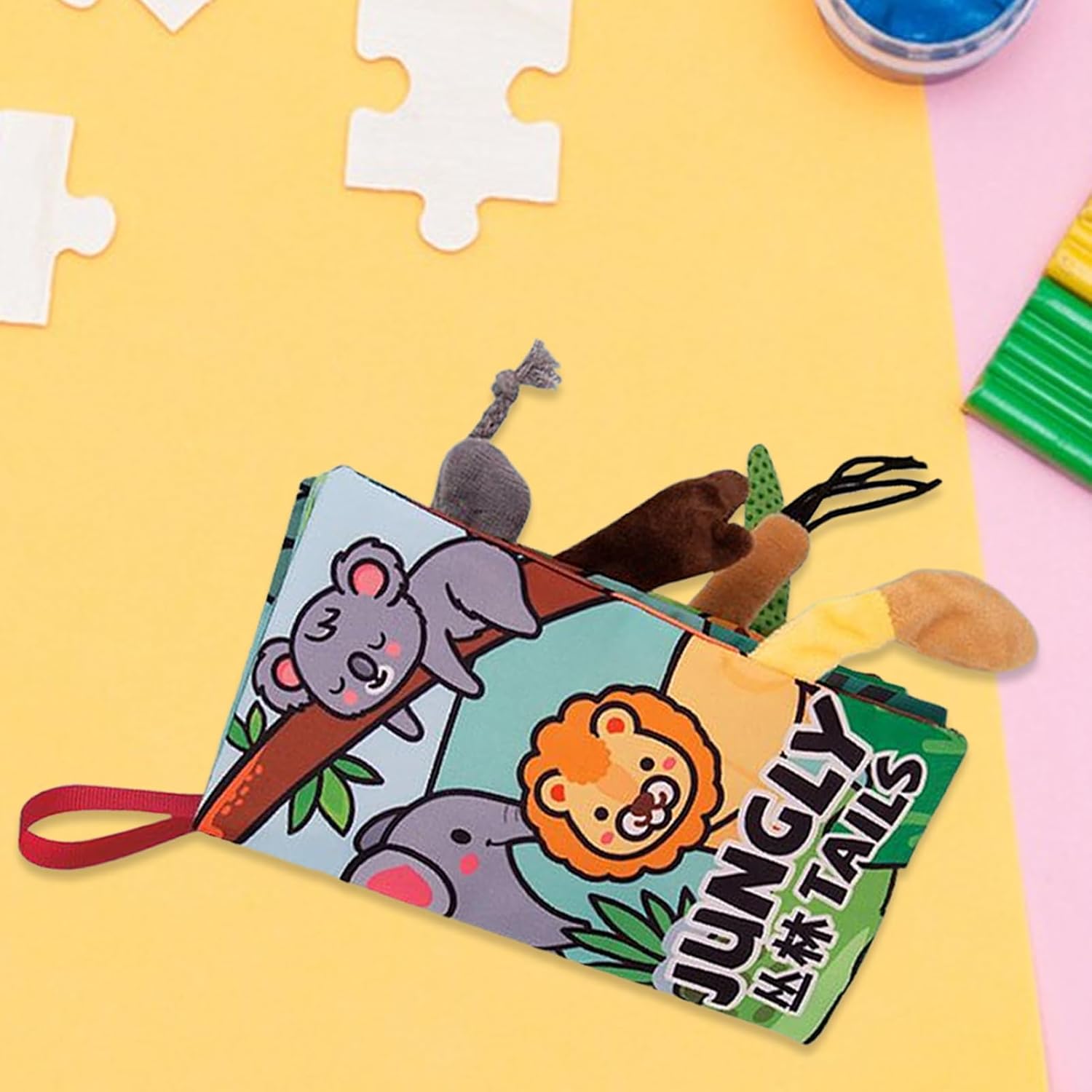 Morbidezza Assoluta: Design a misura di con spigoli arrotondati e materiale orale sicuro. Il libro sensoriale in stoffa garantisce totale sicurezza per mani e bocca, adatto dalla nascita fino ai 3 anni per scoperte senza rischi. Compattezza:Libro sensoriale per infanti con 8 superfici su 4 pagine. La costruzione pieghevole facilita il trasporto in auto o bagaglio, adatto per giochi domestici e in movimento. Sviluppo Armonioso: Favorisce l'acquisizione linguistica e la crescita uditiva usando code testurizzate e stimoli a doppia lingua, garantendo un'esperienza educativa piacevole ideata per piccoli apprendisti Design Creativo: Pagine a tema animale catturano l'attenzione dei piccoli, integrando effetti 3D sulle code e texture diversificate per un coinvolgimento tattile e visivo che incoraggia naturalmente il evolutivo Apprendimento Progressivo: Combinazione di personaggi animali e design a tema esplorativo ispira esperienze coinvolgenti, potenziando osservazione critica e concentrazione prolungata nei primi anni