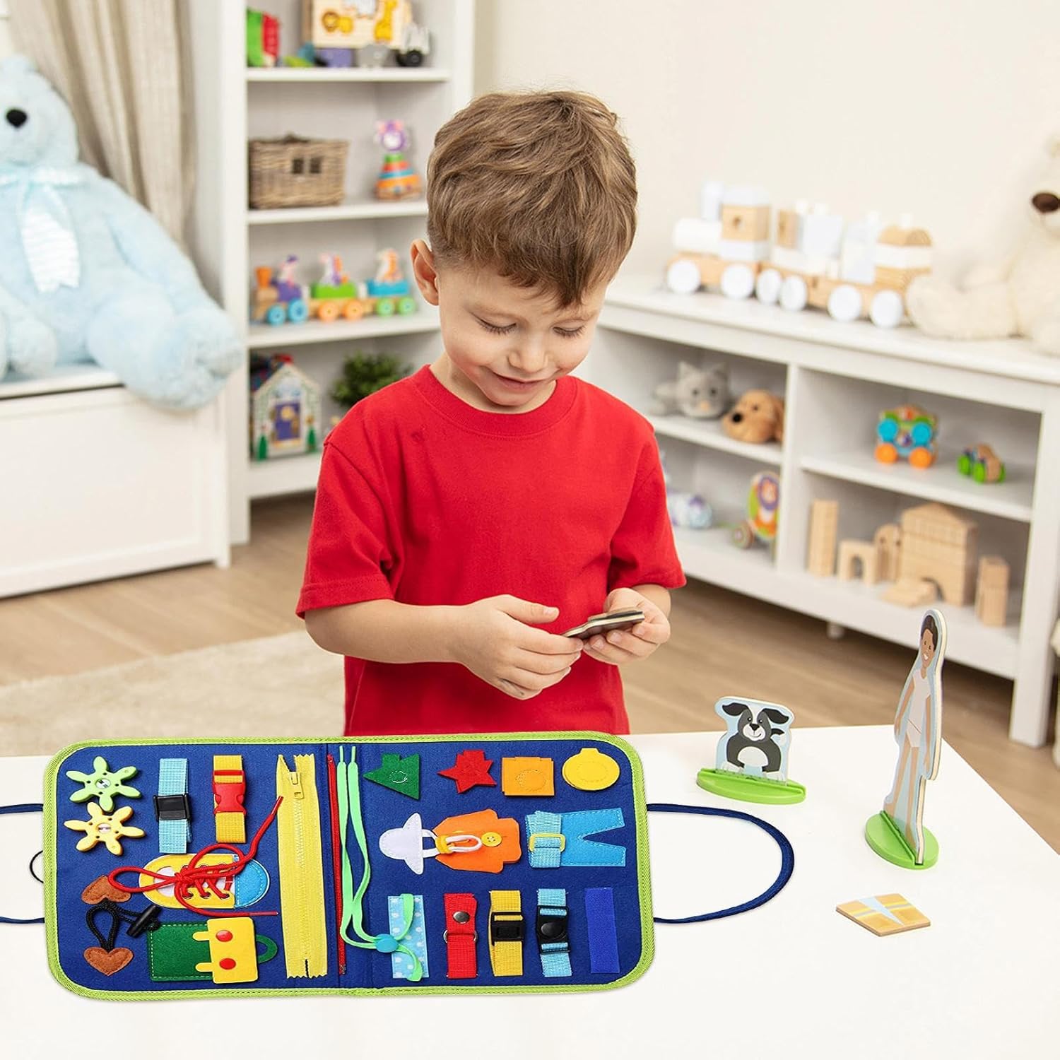 Altre funzioni: include 6 attività coinvolgenti, permettendo ai bambini di concentrarsi; incoraggia il gioco individuale e collaborativo e offre una gamma di fantastici elementi educativi Affari da giocare: questo libro di attività di tutte le piccole dimensioni è sicuro per i bambini, assicurando che le mani non siano causate. Realizzato in robusto materiale feltro, ogni dettaglio è stato accuratamente progettato per una maggiore sicurezza Progettato per apprendere le abilità di vita: questo libro di affari per bambini piccoli offre ai bambini un mezzo divertente e interattivo per acquisire abilità essenziali per la vita. Grazie a una varietà di attività sensoriali, i bambini miglioreranno le loro capacità motorie e la coordinazione motoria tra cui vestirsi, abbottonare, scarpe stringate e l"apprendimento del tempo e della data. Uso semplice: questo libro di attività completamente piccolo offre un apprendimento ininterrotto grazie alla facilità d'uso e al design compatto. I bambini possono accuratamente e incollare le parti del con precisione, riducendo così il rischio di ingestione. Fa attività fluide e realizzabili, promuovendo un"esperienza educativa sicura e divertente. Facile trasporto: grazie al suo design portatile, questo piccolo libro di attività scivola facilmente nella maggior parte delle borse in tessuto, perfetto per occupare i tuoi bambini in aereo o durante i viaggi in auto, facilitando il trasporto ovunque tu vada.