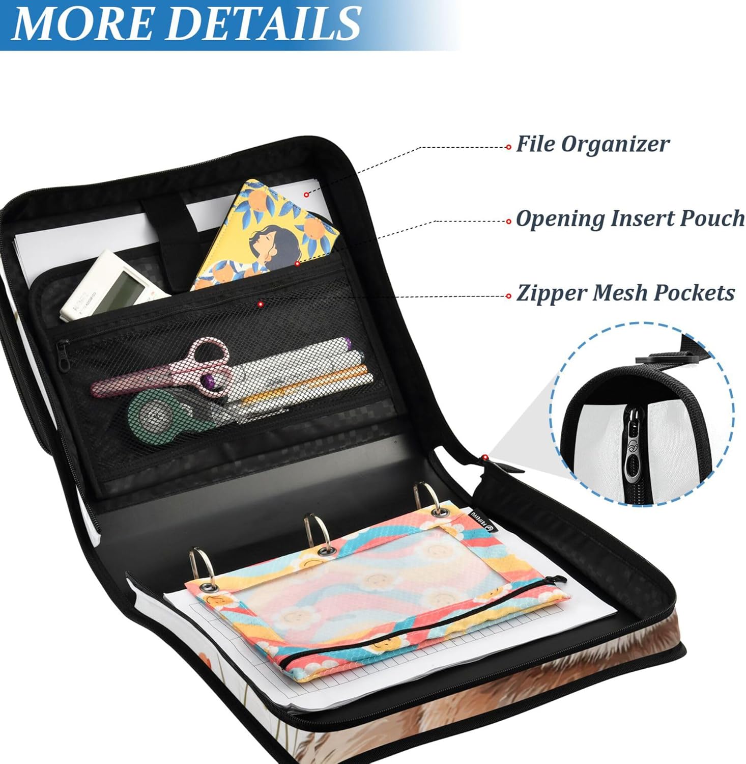 Materiale di alta qualità: l'organizer con cerniera è realizzato in tessuto di nylon ed è resistente agli strappi. Realizzato in tessuto resistente all'acqua per respingere schizzi e pioggia leggera, garantendo resistenza per i tuoi spostamenti quotidiani. 【Massimo spazio di archiviazione】 Dotato di una grande tasca con cerniera per riporre utensili da scrittura, calcolatrici e altri oggetti. La tasca in rete trasparente garantisce che gli oggetti conservati siano chiaramente visibili a colpo d'occhio. Un'ulteriore tasca frontale offre spazio flessibile per riporre comodamente gli oggetti. Trasforma facilmente il caos in ordine: dì addio alle note smarrite o smarrite e dai il benvenuto a un'organizzazione perfetta. Con tasche multiple, un pannello frontale e un libro con cerniera a 3 anelli da 1,5", puoi riporre ordinatamente dispense, documenti, articoli di cancelleria e accessori come penne, ecc. Cartella portatile: con scomparti multipli, la cerniera garantisce un'organizzazione efficiente. Gli scomparti separati ti consentono di tenere gli oggetti classificati e a portata di mano. Dì addio al fastidio di scavare in una borsa disordinata per trovare i tuoi oggetti: trovali e recuperali senza sforzo in pochi secondi. Un multitasking. La tasca esterna con cerniera offre spazio immediato per riporre oggetti penne, chiavi o carte di trasporto, mentre il raccoglitore ad anelli a 3 fori dello scomparto principale chiude in modo sicuro fino a diverse centinaia di fogli. Tre tasche interne - elastiche, slip-in e con cerniera in rete - classificano tutto, dai file di grandi dimensioni ai piccoli bigiotteria, eliminando il disordine.
