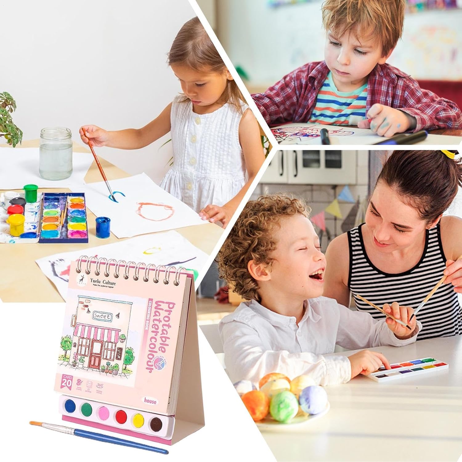Progetto Versatile: Caratterizzato da struttura verticale che agevola salutari, questo libro ad acquerelli minimizza l'affaticamento oculare e offre simultaneamente vantaggi pratici e attrattiva ornamentale per la formazione artistica Viaggi Visivi Ispiratori: Scopri scene tematiche coinvolgenti concepite per raffinare la percezione cromatica, accendendo l'interesse per la narrazione e l'estetica artistica naturale attraverso esplorazioni immaginative. Libertà Creativa: Pratica abbondante supportata da carta spessa per garantisce effetti vivaci di stratificazione, permettendo correzioni lavabili e prevenendo spargimenti per un processo creativo senza intoppi Praticità completa: Contiene tutto l'occorrente tra cui vernici ad e set artistici integrati per progetti creativi senza preparativi aggiuntivi, avviabili subito con elementi inclusi Manutenzione Pratica: Struttura antigoccia con superficie impermeabile semplifica la pulizia, preservando l'ordine grazie ai pennelli riutilizzabili e lavabili