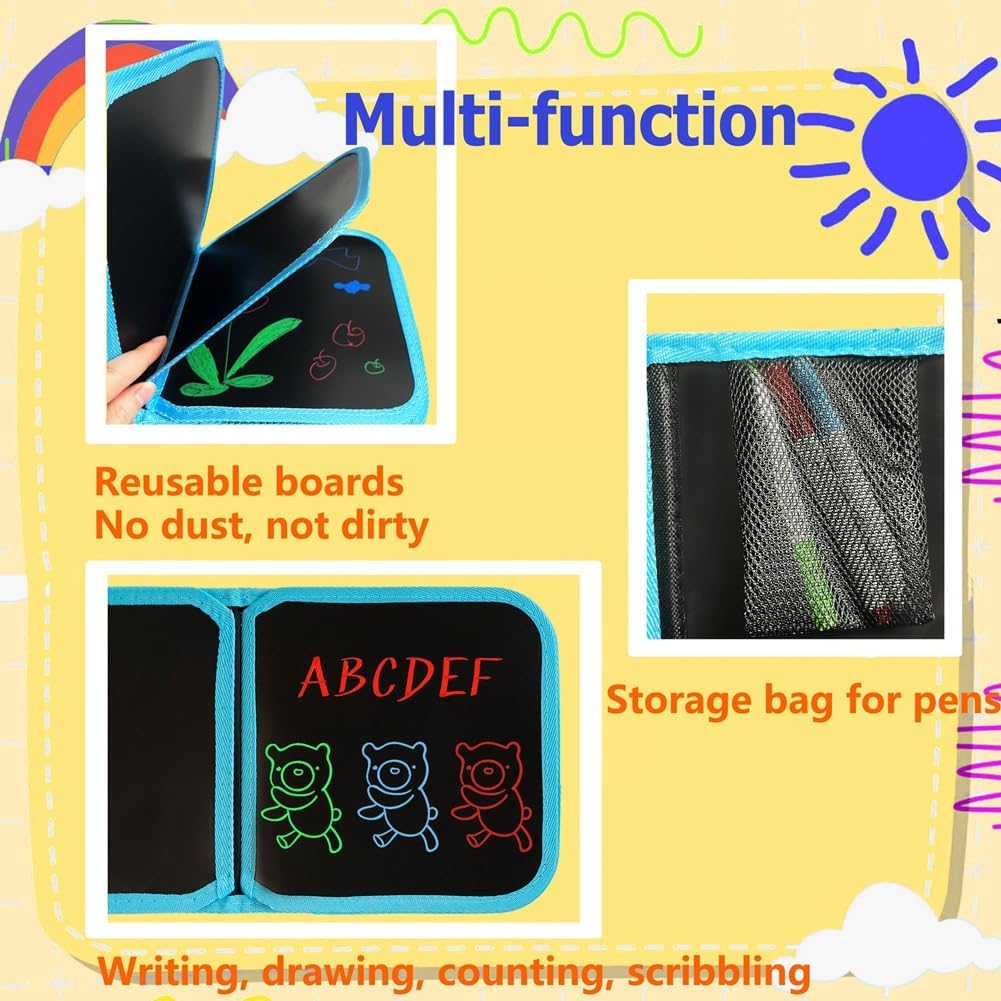 Blocchi da disegno: la lavagna ha 6 pagine, ogni pagina può essere disegnata o scritta, offrendoti molto spazio per disegnare. La lavagna non si strappa, a lungo ed è leggera Tavole da disegno per qualsiasi luogo: una tavola da disegno che può essere utilizzata in viaggio, le dimensioni compatte la rendono facile da trasportare e riporre. La tavola è dotata di 3 penne colorate, così puoi scarabocchiare e disegnare ovunque tu vada e divertirti a disegnare Facile da pulire: puoi pulire la tavola da disegno con un panno , residui di colore e riutilizzabile. Non scarabocchiare mai più sul muro Regali per piccoli artisti: il libro da disegno è adatto per regali artistici. Perfetto per premi in classe, regali di compleanno, regali per le feste, sacchetti per . Amerai le tavole da disegno per materiali artistici per studiare o dipingere