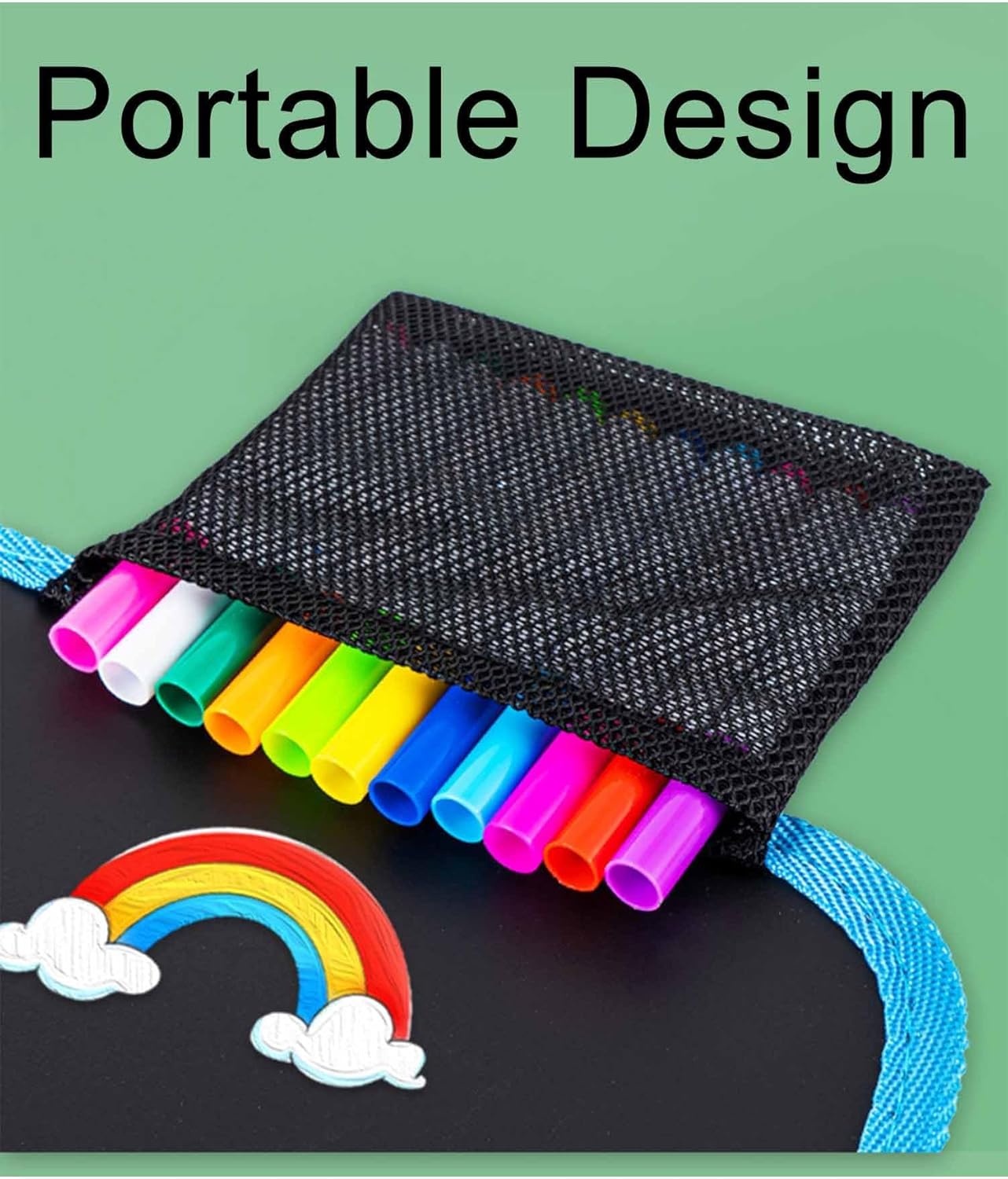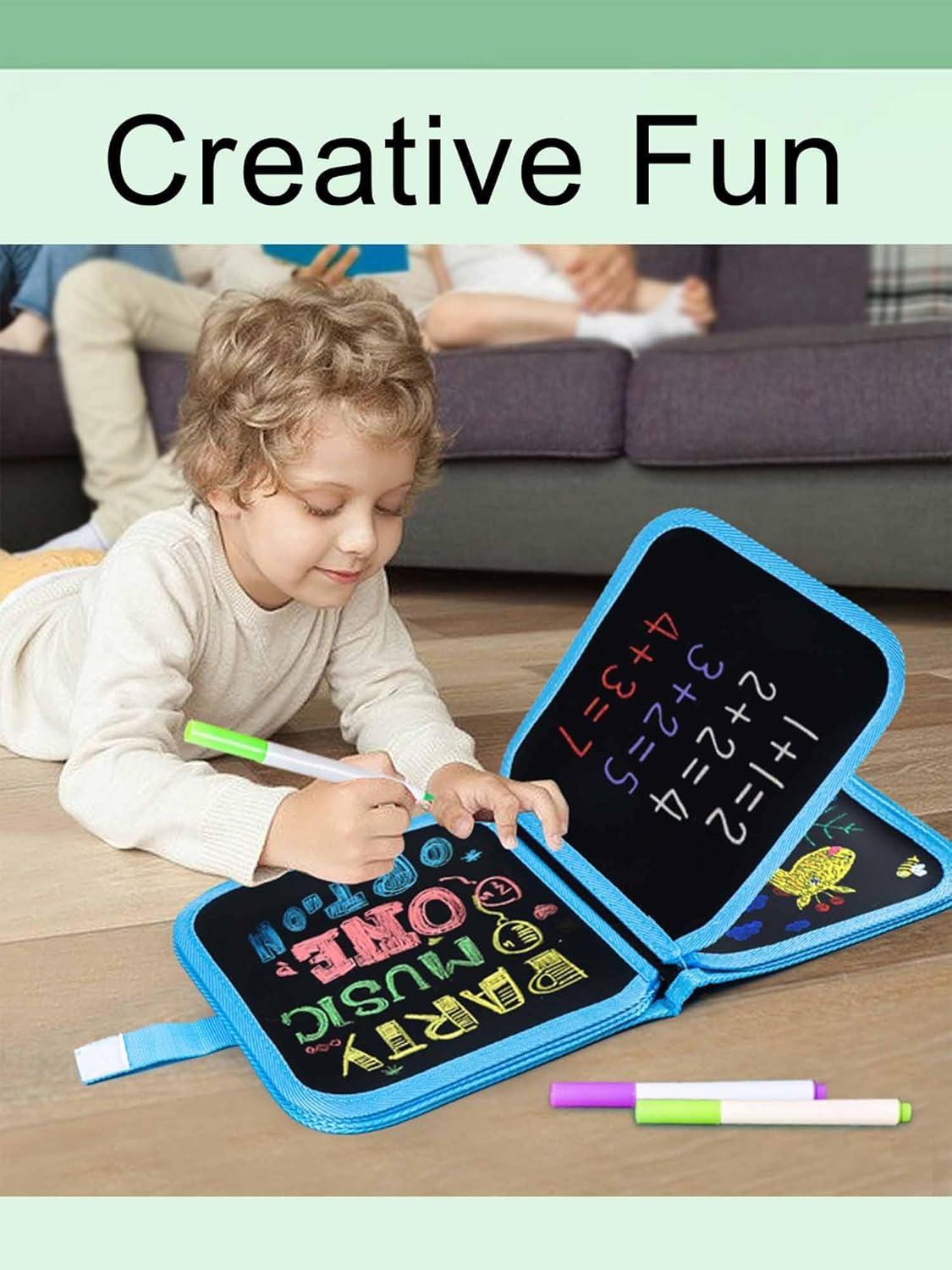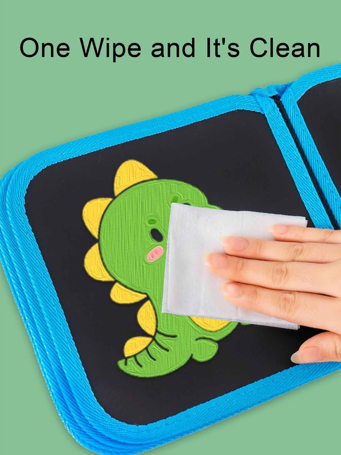 Riutilizzabile e facile da pulire: il libro da disegno con graffiti cancellabile portatile consente ai bambini di disegnare e scarabocchiare liberamente e le pagine possono essere facilmente pulite con salviette umidificate, garantendo un divertimento creativo senza fine senza confusione Sicuro e conveniente: il libro da disegno presenta un design con bordi arrotondati per la sicurezza, garantendo che i bambini possano usarlo senza il rischio di lesioni Portatile e adatto ai viaggi: con dimensioni compatte e custodia inclusa, questo libro da disegno è perfetto per l'uso in movimento, a casa, in viaggio o durante i viaggi in macchina, per intrattenere i bambini Stimola la creatività e l'immaginazione: ideale per consentire ai bambini di esercitarsi a disegnare, scrivere e scarabocchiare, il libro aiuta a coltivare la loro creatività, immaginazione e sviluppo cognitivo Ottima idea regalo: questo libro con scarabocchi è un regalo eccellente per i giovani artisti, incoraggiando l'intrattenimento senza schermo e offrendo ore di divertimento creativo per bambini e famiglie