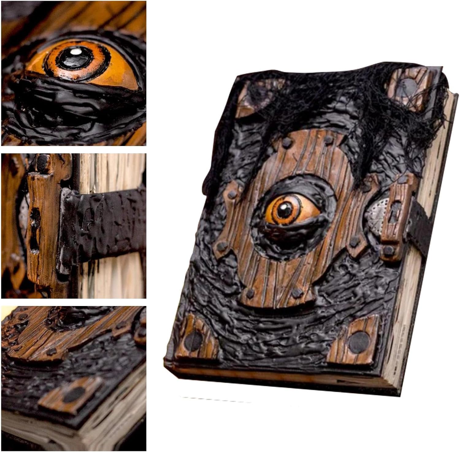 Retroween Craft: The Devil's Eye simboleggia il mistero. Libro del dannato arredamento di Halloween è classico e vintage. una carta spessa, coperta e spessa con un di legno naturale profondo. Incantesimi creativi Prop: la tua stanza con un'aggiunta misteriosa e interessante. Halloween Book of Spells Prop ha un'attrazione per la storia. Un must-buy per i fan che vogliono riunire tutti i suoi scritti in un singolo libro autorevole e avvincente. Pieno di elementi di Halloween: Halloween Decoration Resin Craft è progettato con horror, fantascienza e elementi horror cosmici. Crea un'atmosfera di Halloween spettrale per la tua stanza. Adatto per la decorazione in casa e che si sta trasportando in . Materiale preferito: intagliato a mano in dettaglio inquietante, la grafica è realistica, spaventosa. Libro degli incantesimi L'arredamento di Halloween è delicato, che è realizzato in materiale di resina preferito. Regalo per le vacanze: ti preoccupi ancora del regalo per le vacanze? Sia per famiglia, amici o colleghi, il libro degli incantesimi del libro degli occhi malvagi è un regalo per le vacanze di Halloween.