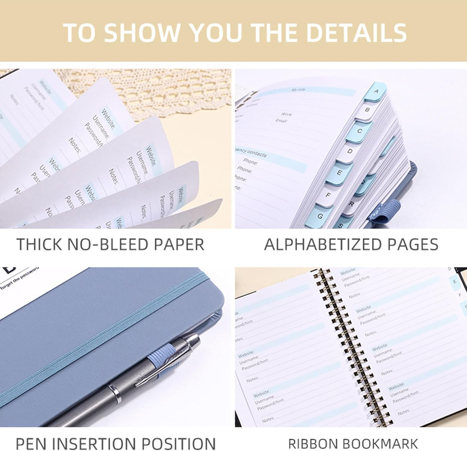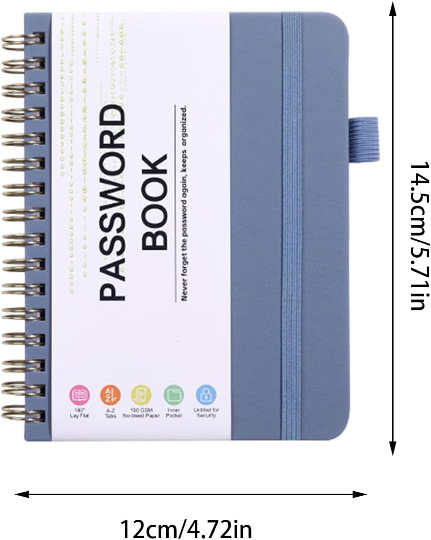 Tracciamento efficiente: con robusta rilegatura a spirale e formato A6, questo libro per password si apre piatto, offrendo un facile accesso e una comoda vestibilità in borse o tasche, mentre la carta spessa riduce al minimo le infiltrazioni di inchiostro. Sicurezza massimizzata: con linguette alfabetiche e design discreto, proteggi le tue password a tuo agio; fissato con un elastico, garantisce la sicurezza delle password e la chiusura sicura, senza lasciare alcun titolo sulla parte anteriore per una segretezza ideale. Regalo eccezionale: mantieni le password al sicuro e organizzate con questo libro delle password con schede alfabetiche. Una scelta regalo pratica ideale per occasioni speciali come compleanni, Natale, anni, anniversari, Pasqua: e perfetto per salvaguardare momenti cari con familiari, amici e bambini. Ampia gamma di usi: mantieni i tuoi account sicuri e accessibili con il nostro Libro delle Password, completo di schede alfabetiche facili da usare per un rapido riferimento a indirizzi Web importanti, e-mail, nomi utente e password. Sistemazione efficiente: le linguette con etichettatura individuale impediscono lo strappo, consentendo un accesso rapido e facile ai dettagli di accesso. Tutte le linguette sono laminate per una maggiore durata e sicurezza.