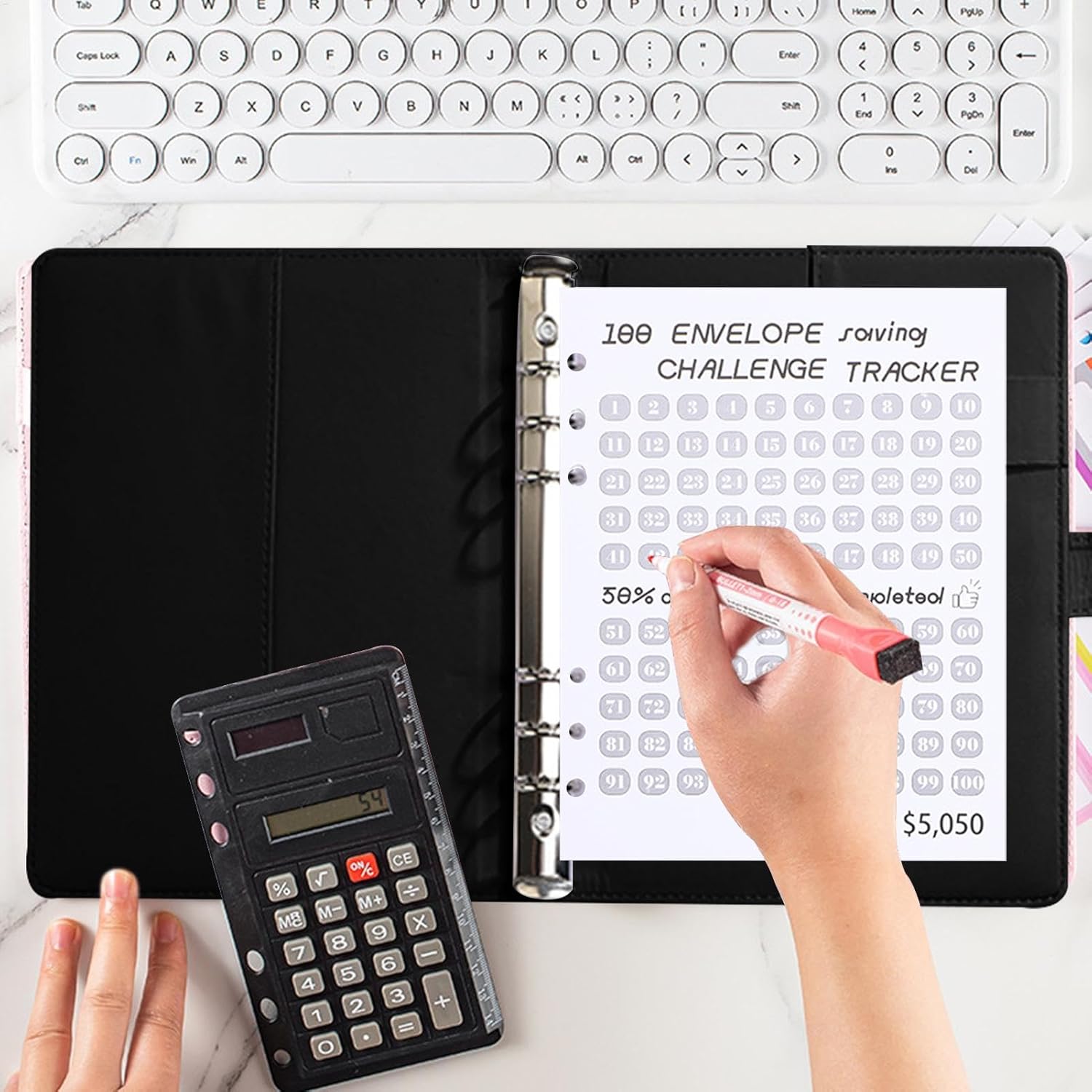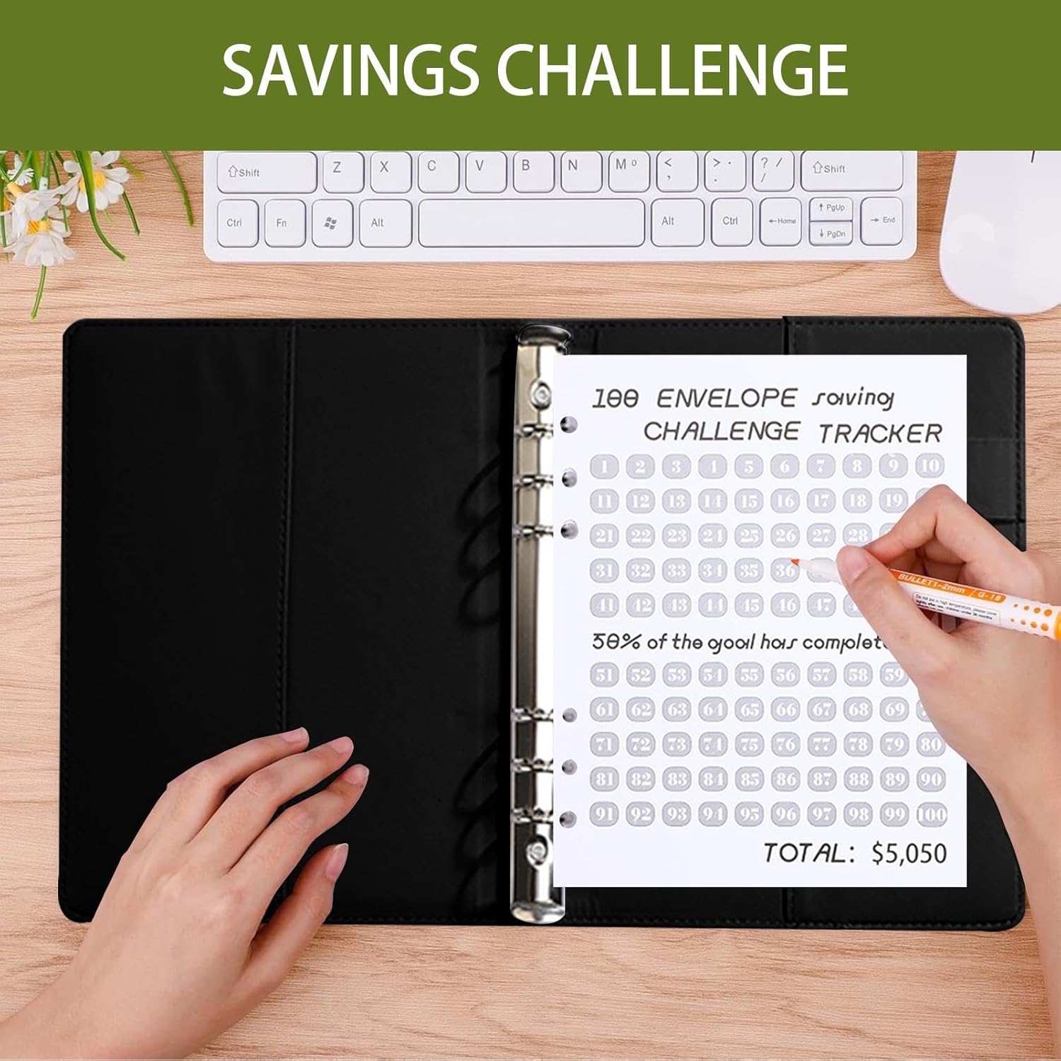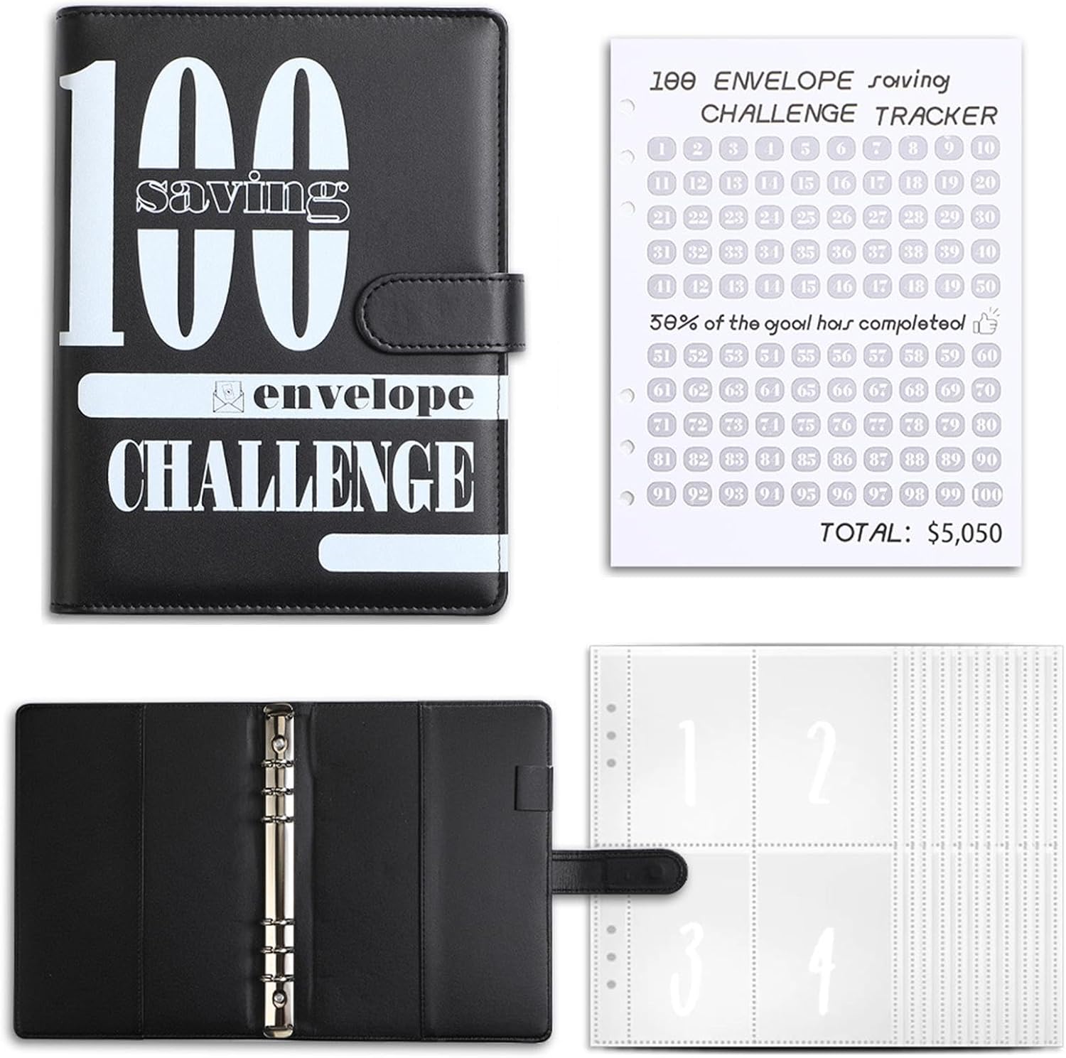 Coinvolgente monitoraggio del risparmio: questo libro di 100 giorni per risparmiare denaro è un modo divertente e interattivo per adulti e bambini di raggiungere i loro obiettivi finanziari. Include un raccoglitore flessibile con buste per organizzare i contanti, oltre a uno slot per penne per una maggiore comodità Organizzato e pratico: il raccoglitore per risparmiare denaro presenta sezioni separate per ogni sfida di risparmio, con un tracker integrato per aiutarti a rimanere al top dei tuoi progressi. Le sue dimensioni compatte lo rendono facile da trasportare ovunque Ideale per tutte le età: che tu stia insegnando ai bambini il budget o stabilendo obiettivi di risparmio da adulti, questo libro di sfide è un modo flessibile e divertente per tenere traccia. La sfida di 100 giorni è progettata per aiutare chiunque a raggiungere i propri obiettivi di risparmio Durevole ed elegante: realizzato in materiale PU di alta qualità, questo libro di risparmio è resistente ed elegante. Il suo design elegante con uno slot per penne lo rende comodo e facile da usare, aiutandoti a rimanere organizzato e motivato durante i tuoi risparmi Regalo perfetto per obiettivi finanziari: questo raccoglitore di risparmio è un'ottima idea regalo per chiunque cerchi di migliorare le proprie abitudini finanziarie. È un modo pratico e divertente per impostare e raggiungere obiettivi di risparmio di denaro, rendendolo perfetto sia per bambini che per adulti