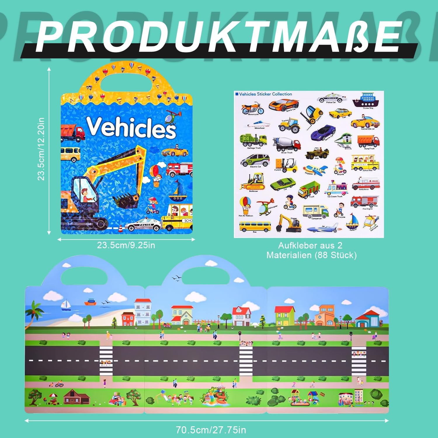 Materiale: l'adesivo per veicoli stradali 3D è realizzato in materiale TPE e PVC di alta qualità, non tossico, impermeabile e può essere incollato ripetutamente senza lasciare residui. Incoraggia l'immaginazione e la creatività dei bambini di età compresa tra 3 e 4 anni: questi libri sono giocattoli educativi e sbocchi creativi. I bambini progettano le proprie storie disponendo gli adesivi in scene diverse Altri adesivi: alcuni adesivi per veicoli hanno parole e altri no per aiutare i bambini a imparare e riconoscere Gioco senza schermo: il libro degli adesivi si diverte molto. Chiedi ai bambini di ridurre il tempo trascorso davanti ai dispositivi elettronici per proteggere gli occhi e il collo. Libro con scene pieghevole: libro vivace e colorato per tenerli occupati mentre sono in movimento. Non importa se viaggi in aereo o in macchina. Facile da trasportare. Si adatta facilmente ovunque e ha una maniglia sulla parte superiore in modo che i bambini possano tenerlo