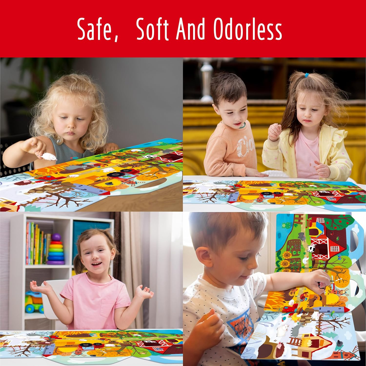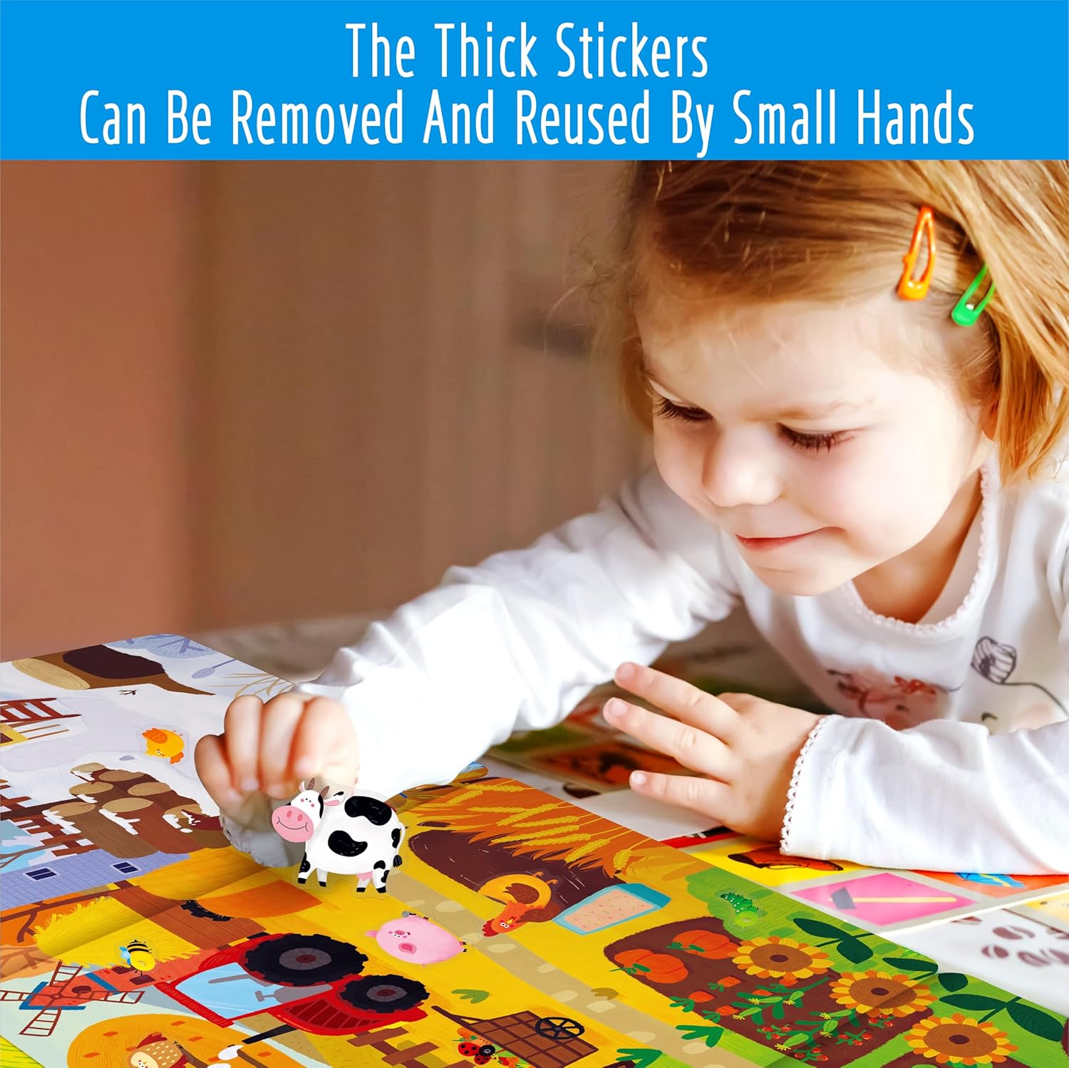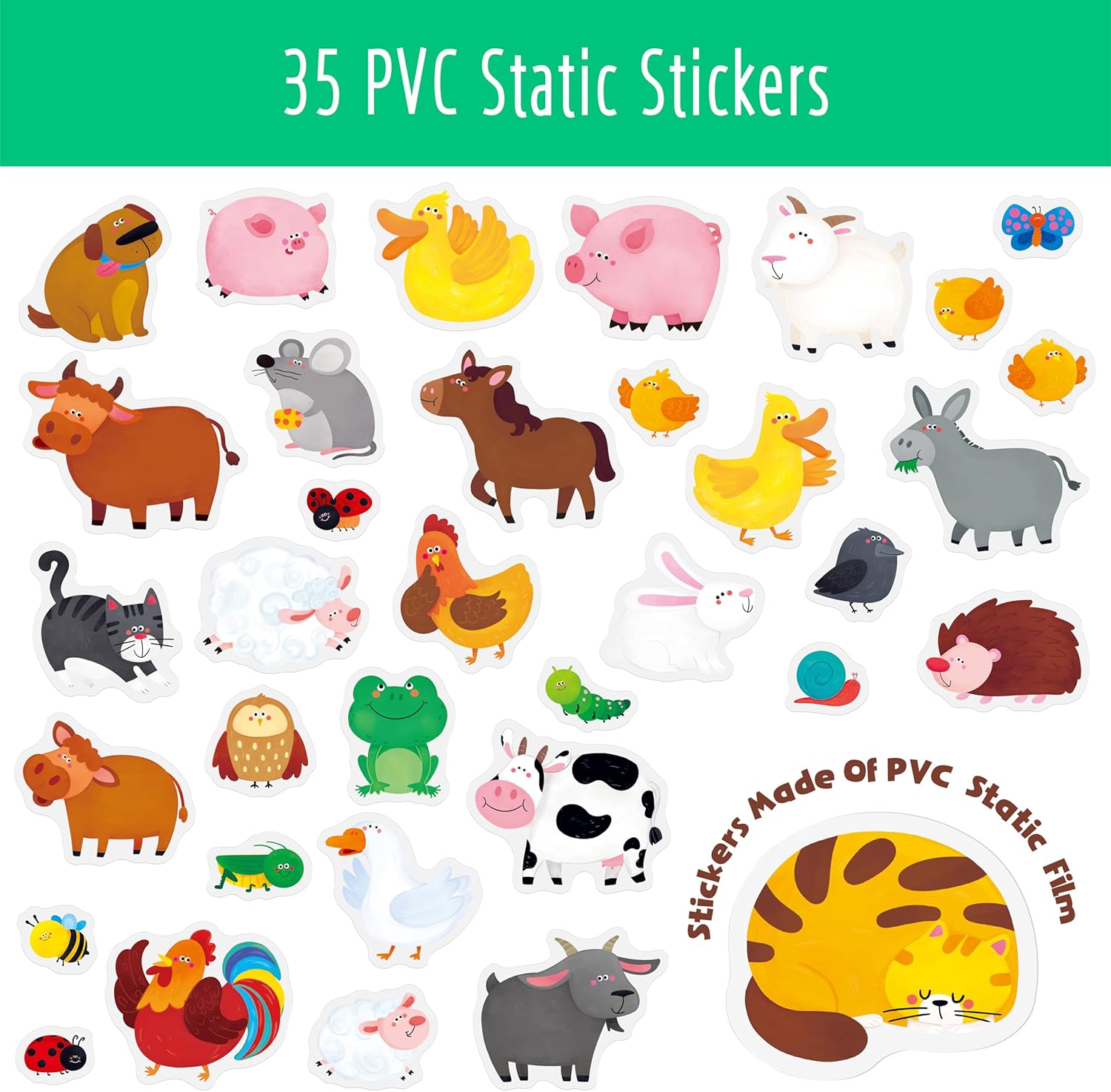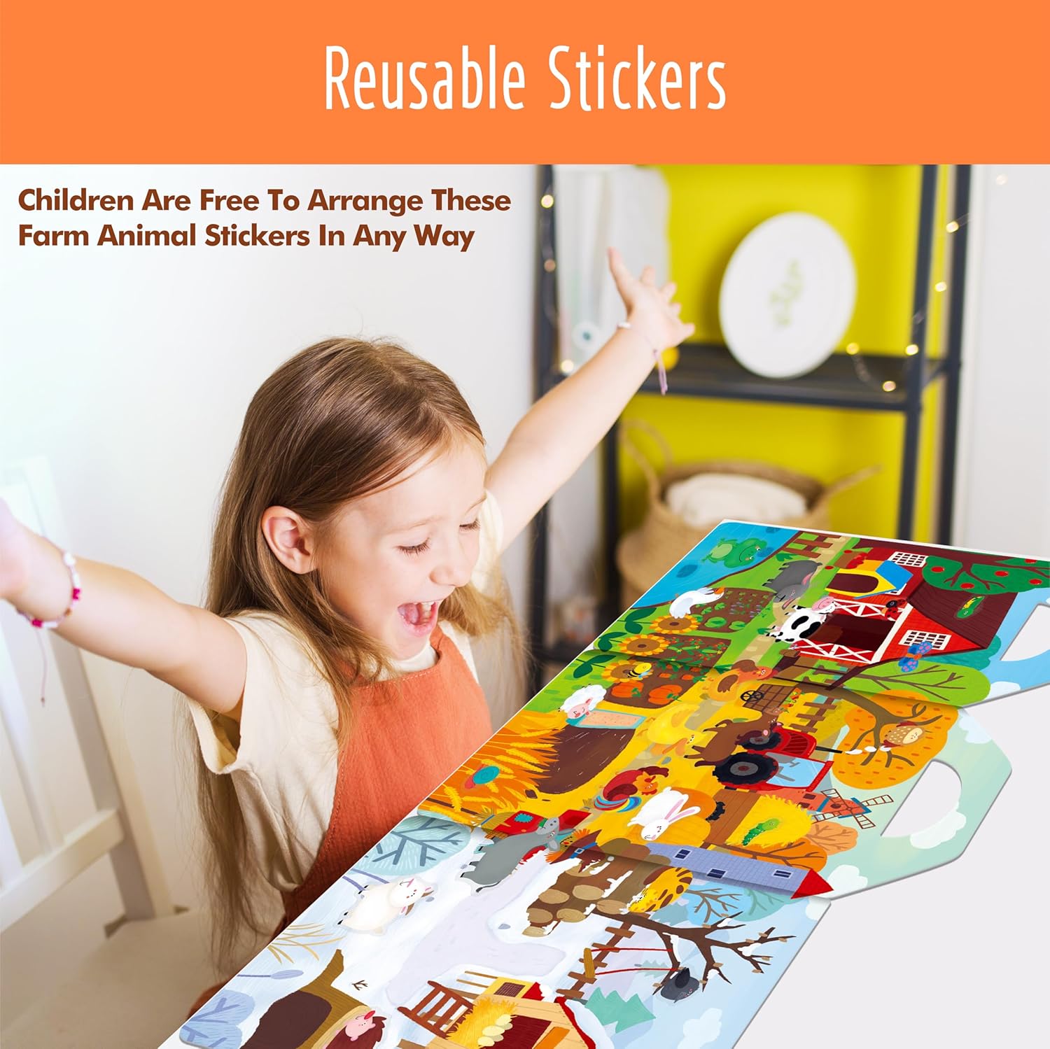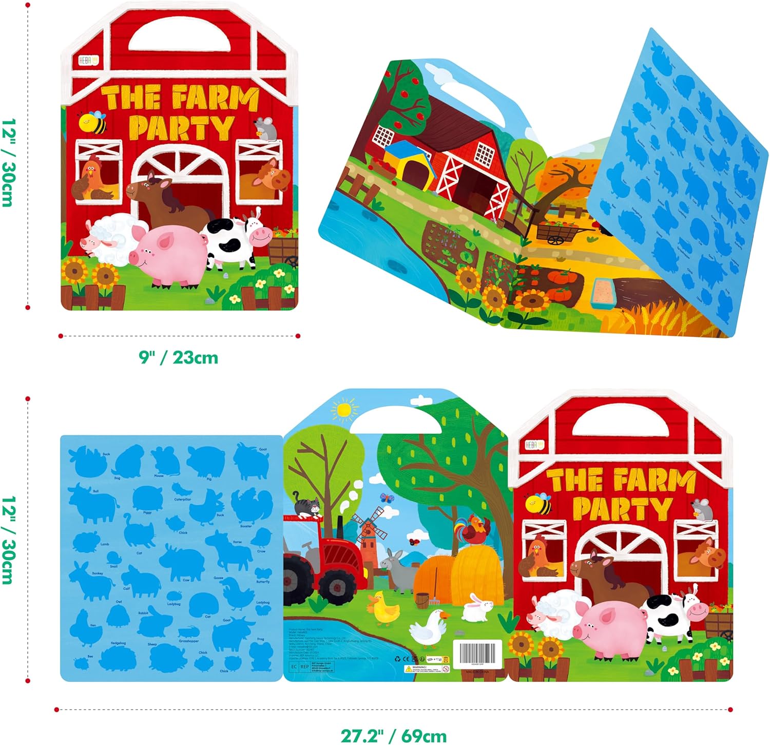 Pacchetto risparmio: include un libro di adesivi e 35 adesivi statici su un foglio di adesivi, offrendo vari modi per creare scene e storie infinite. Un divertente mondo agricolo stimola la creatività e l'immaginazione dei tuoi bambini. Rimovibili e riutilizzabili: i simpatici adesivi sono realizzati in materiale PVC statico, che ha una forte adesività e non lascia residui. Sono facilmente rimovibili e riutilizzabili più volte, rendendoli un modo pratico e pulito per decorare questo libro o altre superfici lisce. Design delicato e portatile: il libro di adesivi è pieghevole e ha una comoda maniglia per il trasporto, che lo rende perfetto per viaggiare e portare con sé. Il libro misura 30 cm x 23 cm quando piegato e 30 cm x 69 cm quando aperto e offre ai bambini molto spazio per decorare. La pagina degli adesivi può anche essere conservata in modo ordinato e ben organizzata in questo libro. Colori vivaci e accattivanti: mostra una varietà di animali come mucca, pecora, coniglio, gallo, cavallo, coccinella, ape, ecc., che suscitano notevolmente l'interesse e la curiosità dei bambini. Un ottimo modo per avvicinare i bambini al mondo della fattoria e farli conoscere un meraviglioso regno animale. Ampia gamma di usi: può essere applicato non solo sugli album di adesivi, ma anche su finestre, frigoriferi, bicchieri, ecc. Un regalo meraviglioso per i bambini di tutte le età che amano gli animali e il gioco creativo ed è perfetto per compleanni, vacanze o occasioni speciali. Questo set può promuovere le capacità motorie dei bambini, la coordinazione occhio-mano e migliorare la concentrazione.