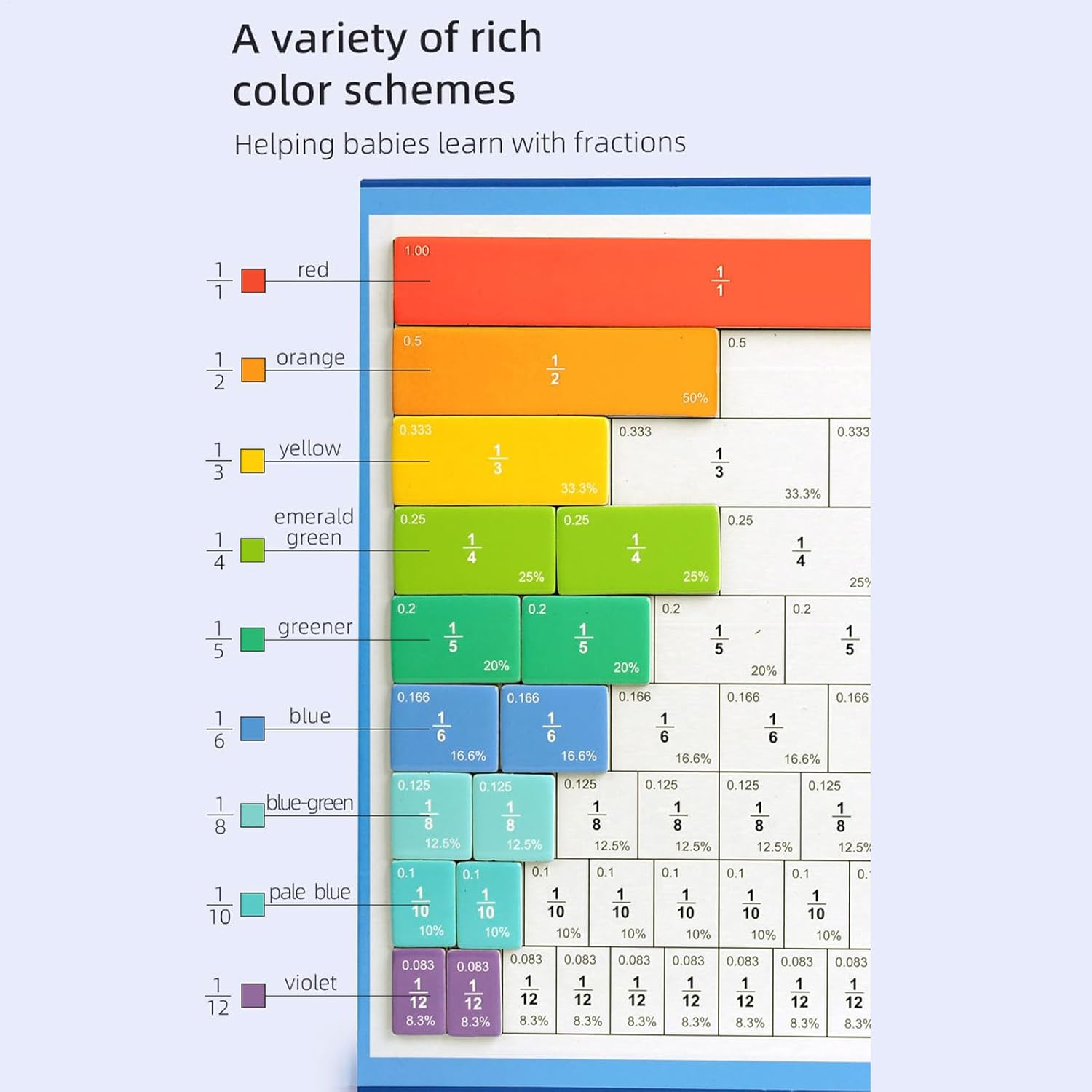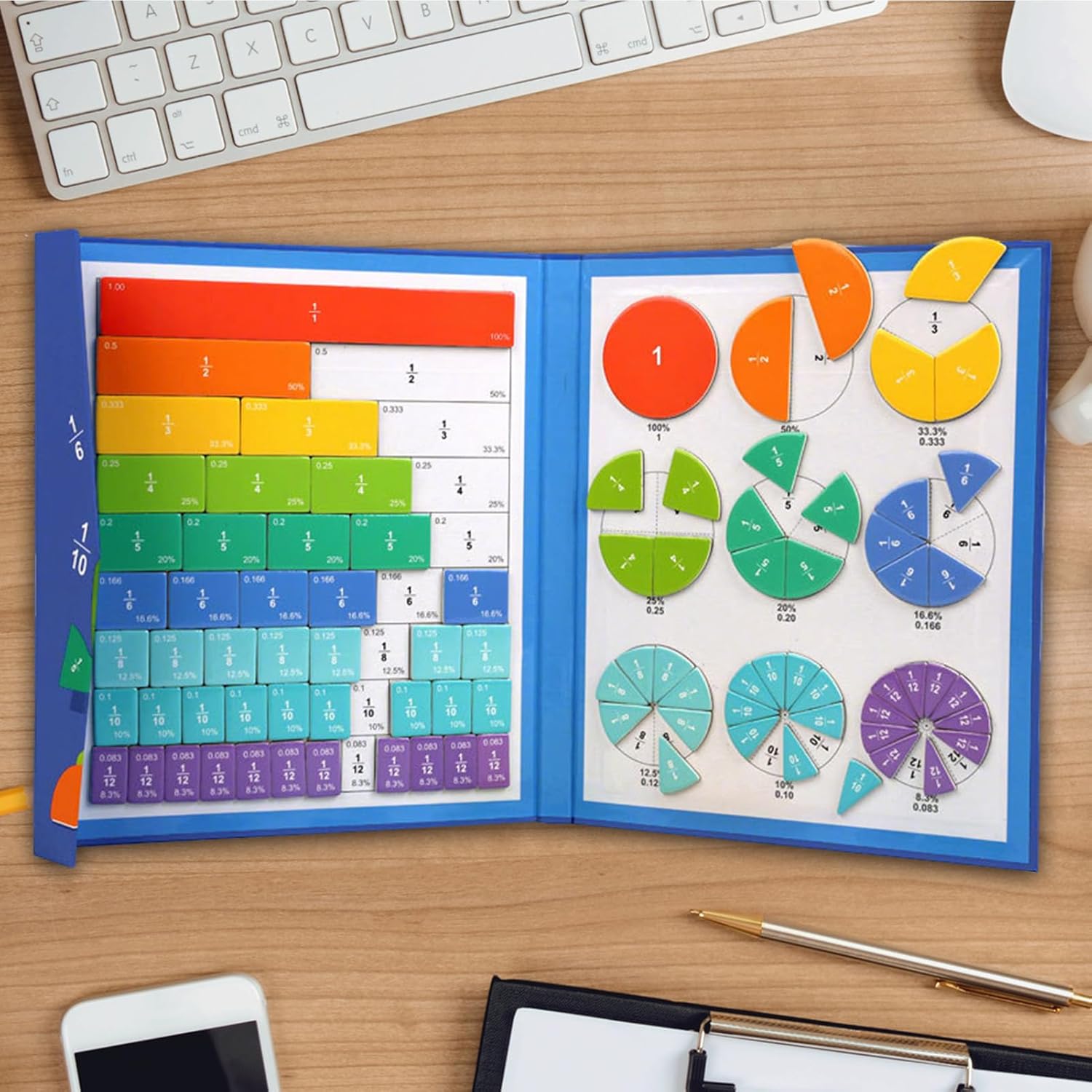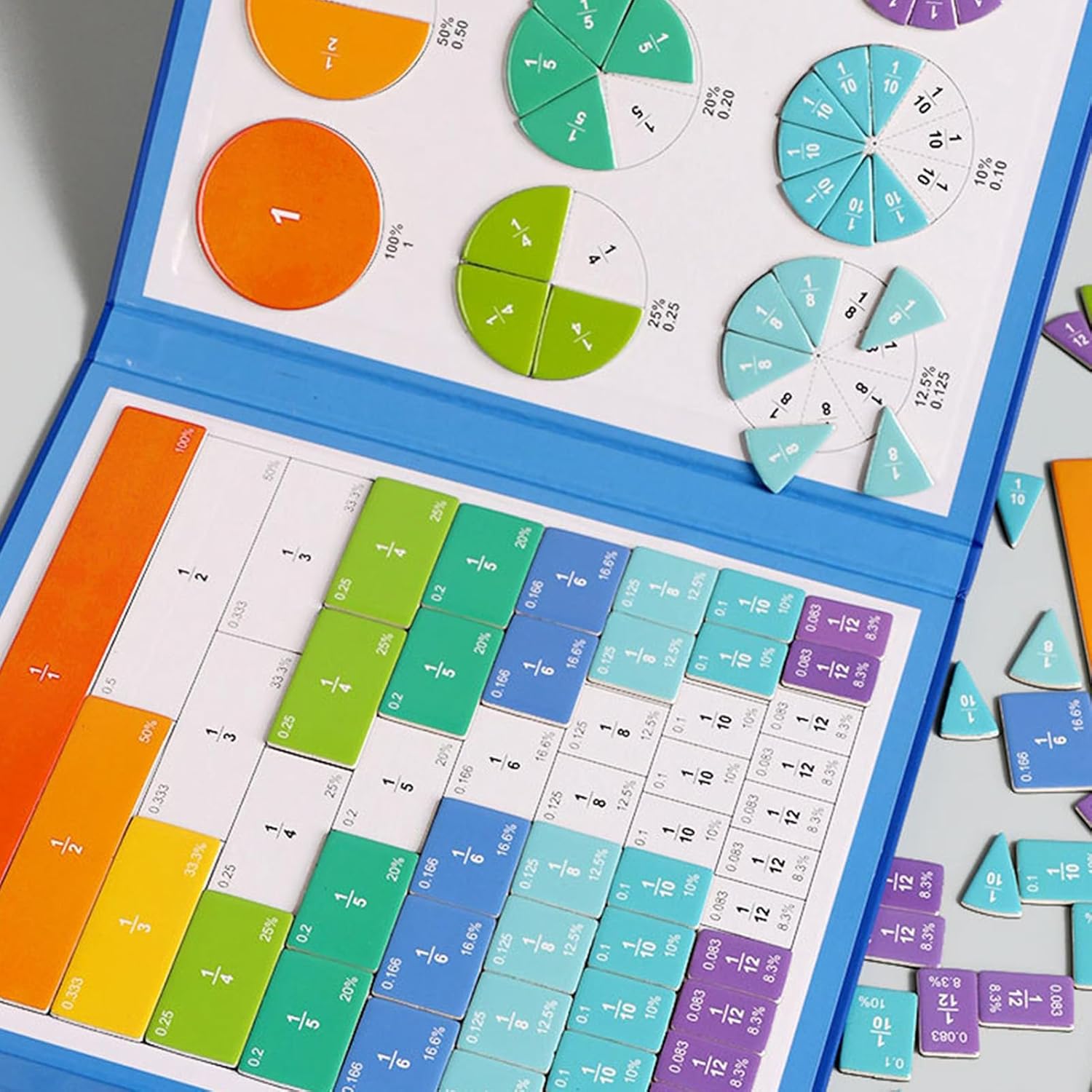 Bordi morbidi e affidabili: le tessere magnetiche per fraction resistono all'uso quotidiano grazie alla consistenza del materiale intatto, ai bordi morbidi e alle sostanze prive di tossine, garantendo un gioco duraturo in classe o a casa senza preoccupazioni di usura o sicurezza durante l'apprendimento pratico Esperienza pratica: il libro dimostrativo magnetico con parti mobili consente agli studenti di esplorare concetti matematici attraverso il gioco pratico, rendendo le idee astratte tangibili e attraenti durante le attività di classe o gli studi a casa Fiducia in se stessi attraverso la leadership: combinato con le carte passo, questo aiuto magnetico per l'apprendimento crea uno strumento efficace per sviluppare la logica e la fiducia in se stessi. Consente di sviluppare capacità di pensiero intelligente durante la modifica delle attività di elaborazione frazionaria in scenari di insegnamento interattivi per la scuola e la casa. Connessione matematica visiva: il libro delle fazioni magnetiche collega forme con numeri attraverso dischi, linee e tavole, migliora interattivamente le abilità di fazione e matematica per i giovani studenti in classe o homeschooling Divertimento di matematica: con colori vivaci e design giocoso, le frazioni magnetiche per bambini trasformano le ore di matematica in giochi divertenti, adatti per bambini dai 6 ai 12 anni, consentono un apprendimento senza interruzioni durante l'istruzione domestica o in attività di gruppo e stimolano la curiosità sulla matematica