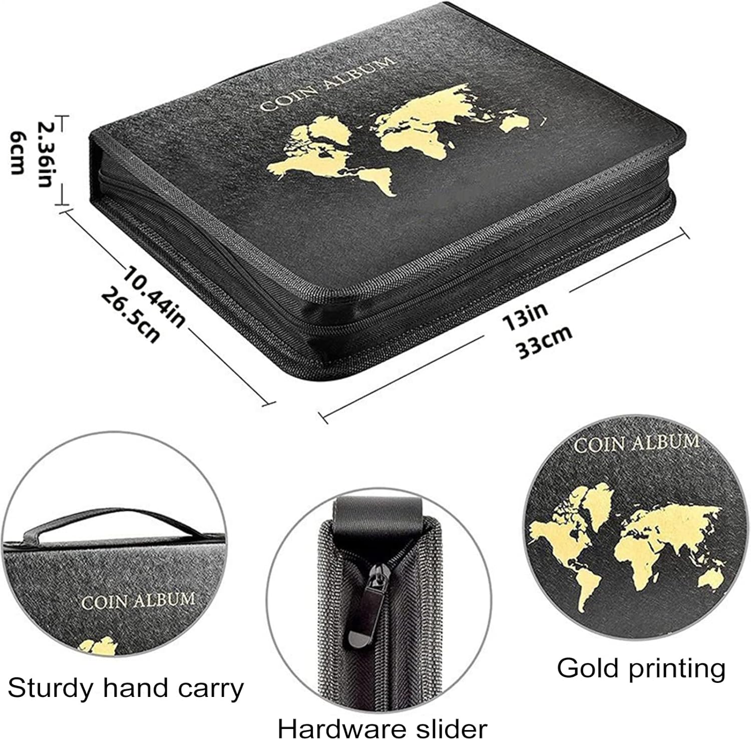 Facile da portare ovunque: stupisci i tuoi amici con questo libro di raccolta monete dotato di una maniglia per un facile trasporto. Con il suo design portatile, mostra il tuo quando e dove vuoi. Resistenza impermeabile: realizzato con materiali antipolvere e impermeabili, il nostro libro di raccolta monete garantisce la massima protezione contro acqua e umidità, mantenendo il tuo in perfette condizioni. Maggiore sicurezza: la tua preziosa collezione di monete con l'ultima aggiunta al libro della collezione di monete. Caratterizzato da un design resistente con cerniera, assicura che il tuo prezioso rimanga in posizione e rimanga senza danni in ogni momento. Protezione migliorata: il raccoglitore di monete ha più tasche e scomparti portaoggetti, fornendo ampio spazio per riporre e organizzare. La grande capacità previene urti e graffi, garantendo la massima sicurezza e senza graffi. Possibilità di raccolta illimitate: il nostro libro di raccolta monete offre una vasta selezione di pagine adatte a diverse dimensioni e forme, nonché banconote e francobolli.