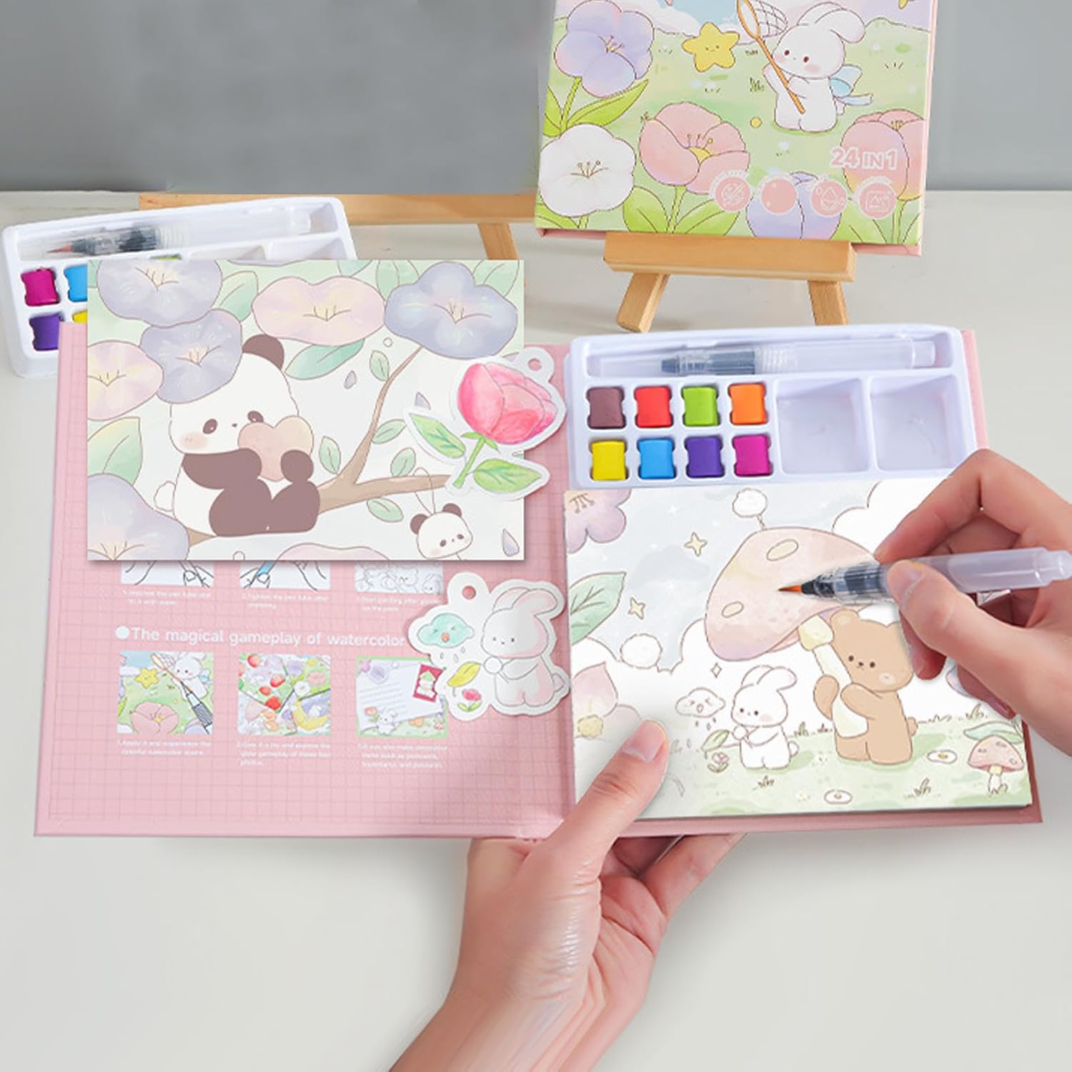 Materiali Sicuri per Arte: Progettato con materiali inodori e pigmenti di alimentare, garantisce sicurezza certificata per bambini grazie agli angoli arrotondati che proteggono da lesioni accidentali durante la pittura Arte Interattiva Familiare: Promuove la collaborazione genitore-figlio con temi progressivi come animali, piante e veicoli, sostenendo in modo piacevole lo sviluppo del riconoscimento cromatico di base Accessorio Organizzato:Struttura leggera e compatta promuove capacità organizzative, garantendo facile stoccaggio durante i viaggi senza necessità di attrezzi extra per esprimere creatività all'aperto. Sviluppo Abilità: Unisce compiti di immaginazione spaziale a una curva di difficoltà strutturata per promuovere il controllo motorio fine e coltivare una profonda consapevolezza artistica Design Funzionale: Struttura organizzata con supporto per fusione acquerelli, carta antitraccia ad alta assorbenza e strumenti integrati (pennello + 8 pastiglie) per applicazione colore uniforme e creazione artistica senza sforzo con risultati vivaci.