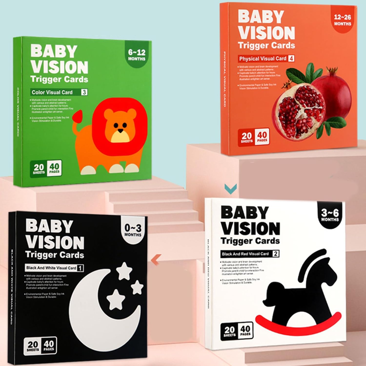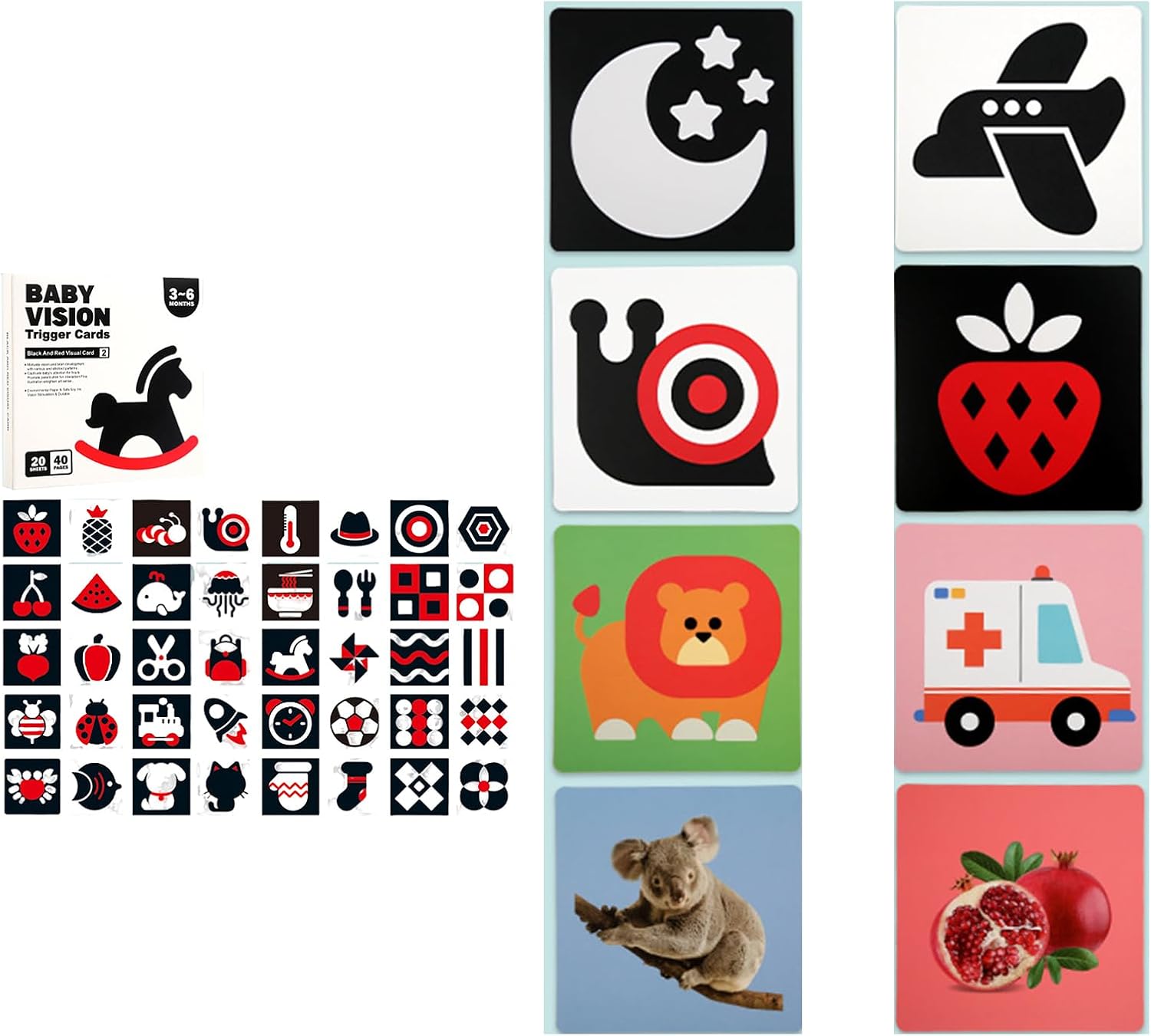 Scheda di stimolazione visiva del bambino, stimolazione visiva bianca e nera, ad alto contrasto, per neonati, giocattolo per lo sviluppo sensoriale, carta di riconoscimento per la prima istruzione precoce, educazione precoce, carte di riconoscimento, sviluppo cognitivo I biglietti presentano audaci disegni in bianco e nero con un alto contrasto di colore per l'attenzione del tuo bambino e incoraggiano l'apprendimento Tra 0 e 3 anni è l'età migliore per lo sviluppo del bambino. Attiva il bambino nervoso visivo attraverso carta bianca e nera e carta a colori Promuovere l'intero sviluppo e abbinamenti di luce e ombra, percezione della grafica alla salute Migliora l'osservazione, la curiosità e la capacità di esplorare. È ideale per lo sviluppo e lo sviluppo della visione del bambino