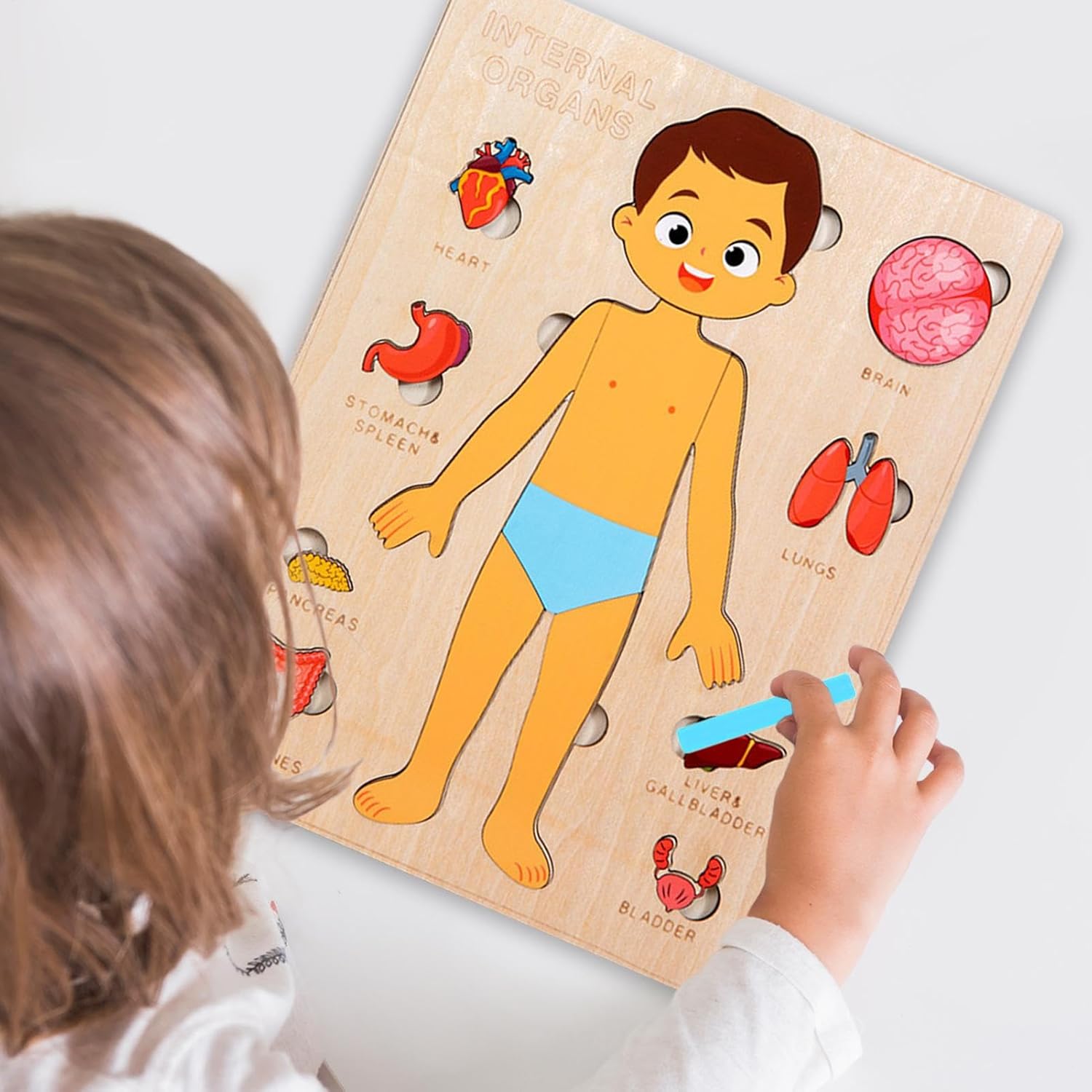 Giocattolo educativo in tiglio: Puzzle sensoriale in legno di tiglio che favorisce il ragionamento logico e la coscienza spaziale attraverso l"esplorazione interattiva dei diversi strati anatomici umani. Strumento di apprendimento interattivo: questo giocattolo unico mescola educazione alla cura personale e sensibilizzazione del corpo. Funzionando come enciclopedia del corpo umano, questo strumento interattivo consente di esplorare e comprendere l'anatomia attraverso una manipolazione concreta e giocosa. Coordinamento del gioco: giocattolo in legno di precisione, questo puzzle di alta qualità sottolinea lo sviluppo delle capacità motorie fini grazie al suo taglio preciso e al montaggio aderente. Crea opportunità per migliorarle la loro destrezza manuale e capacità cognitive durante esplorazioni giocose e tattili con ogni utilizzo, promuovendo così il coordinamento fisico e mentale. Puzzle Sicuro: progettato in tiglio ecologico, questo gioco senza schegge assicura bordi arrotondati per loro, fornendo un'esperienza di gioco coinvolgente e duratura con materiali non tossici. Puzzle Anatomico Interattivo: Puzzle del corpo umano per progettato come strumento didattico accattivante. Offre un'esperienza educativa STEM pratica che risveglia la curiosità scientifica grazie alle caratteristiche interattive di questo giocattolo anatomico.