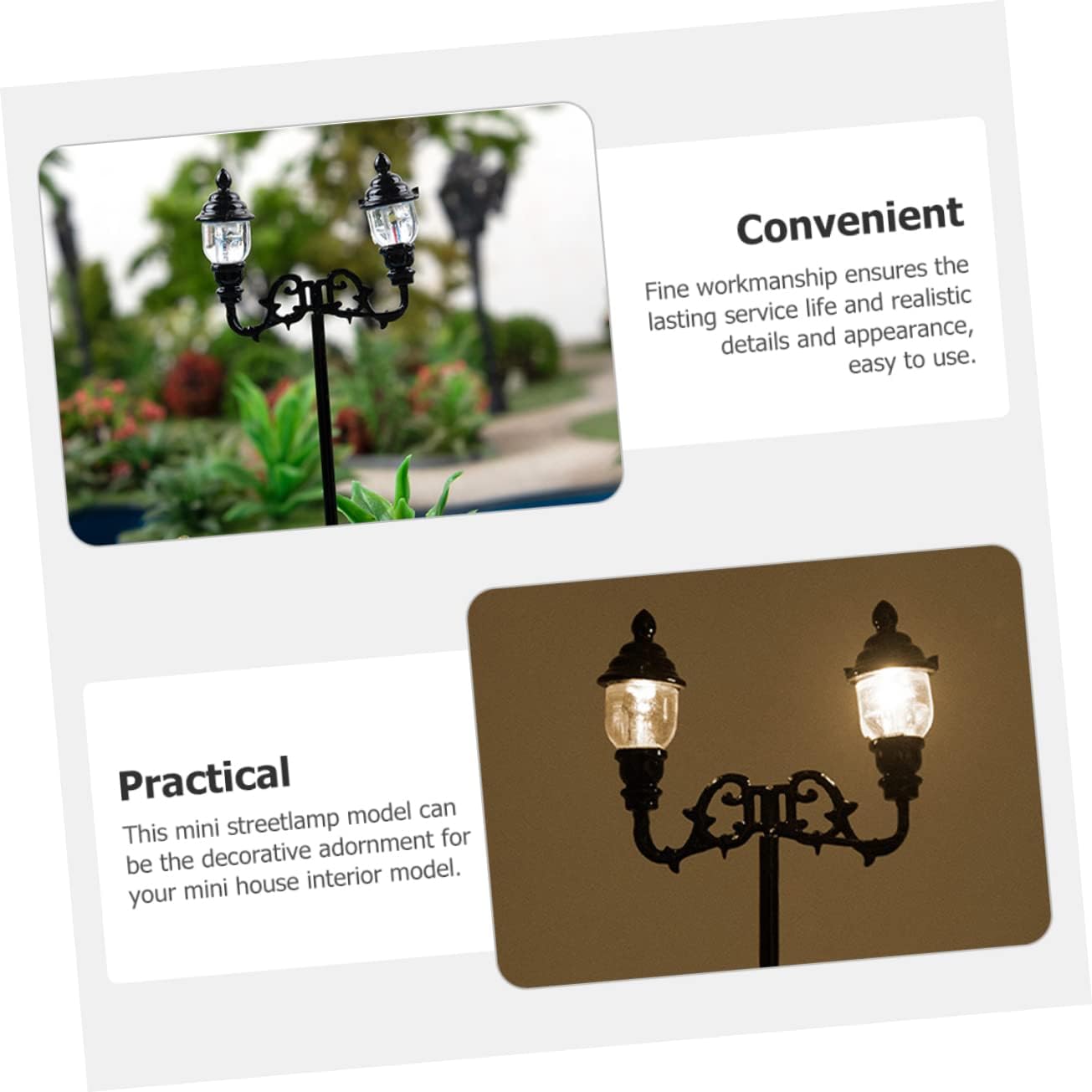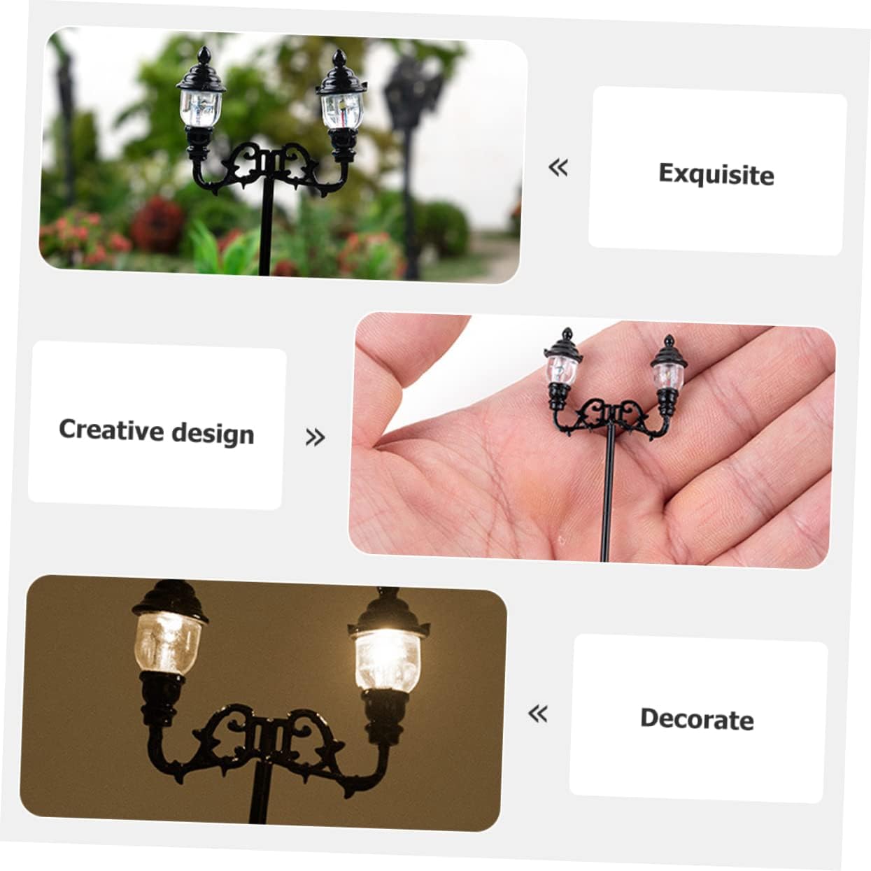 Lampade da tavolo per camera da letto: utili per la progettazione e la costruzione di modellini di treni, stazioni ferroviarie, modelli di progetti scolastici, lampioni in miniatura Accessori da giardino in miniatura: pregevole fattura, design ragionevole, stabile e pratico, ti offriranno una buona esperienza di utilizzo, decorazione del tavolo di sabbia Materiali per modelli di tavoli da sabbia, modellini di auto: posizionali nella tua mini casa o stanza per dettagli più realistici, rendi la mini casa più affascinante, decorazione per lampioni Modellismo di lampioni a led: questo modello di lampione in miniatura è un fantastico per i tuoi amici o familiari che amano i mini lavoretti, i lampioni ferroviari in miniatura Decorative modello: questa mini lampada è per i tuoi per avere il miglior arredamento per il percorso del giardino domestico in miniatura, lampada da strada