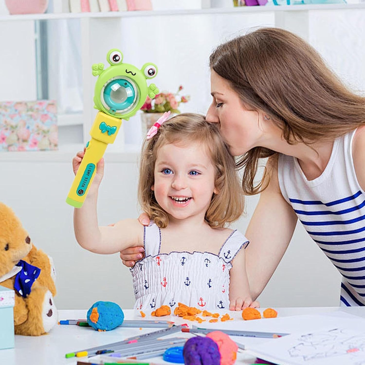 Design distinto: con un design unico, giocattolo in bacchetta di questo bambino, a forma di rana e coniglio con colori vivaci, garantisce divertimento creativo, e accattivante Lungo e sicuro: guardare la felicità prevale con questo incantevole giocattolo di bacchetta per bambini. È un design sicuro, inodore e sicuro realizzato con materiali addominali di alta qualità garantisce un uso a lungo termine e presenta un aspetto regolare che non è facile da danneggiare-un compagno di giochi per i tuoi bambini Divertimento sensoriale: migliora l'esperienza di gioco di tuo figlio con il nostro giocattolo per bacchette per bambini. La pressione di un pulsante ispira affascinanti effetti e musica a LED multicolore, fornendo ore di richiamo di delizia sensoriale che li mantengono felici e intrattenuti Ispira l'immaginazione: i bambini possono intraprendere un viaggio magico, ispirandoli a esplorare la loro creatività e immaginazione. Che si tratti di creare spettacolo di luce o di eseguire un'avventura , questo divertente oggetto di scena per i giochi è lo strumento per incoraggiare il gioco fantasioso e innescare la gioia 'esplorazione Eccellenza da regali: per ragazzi e ragazze di età superiore ai 3 anni, questo giocattolo di bacchetta crea un'atmosfera incantevole per compleanni, vacanze e sorprese, i bambini accattivanti con il suo fascino interattivo e rendendolo un eccellente regalo