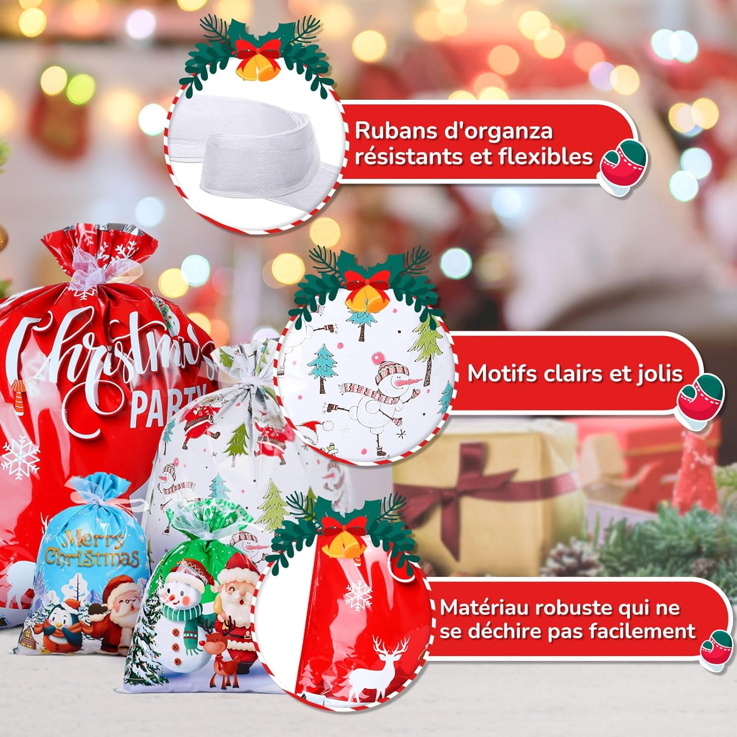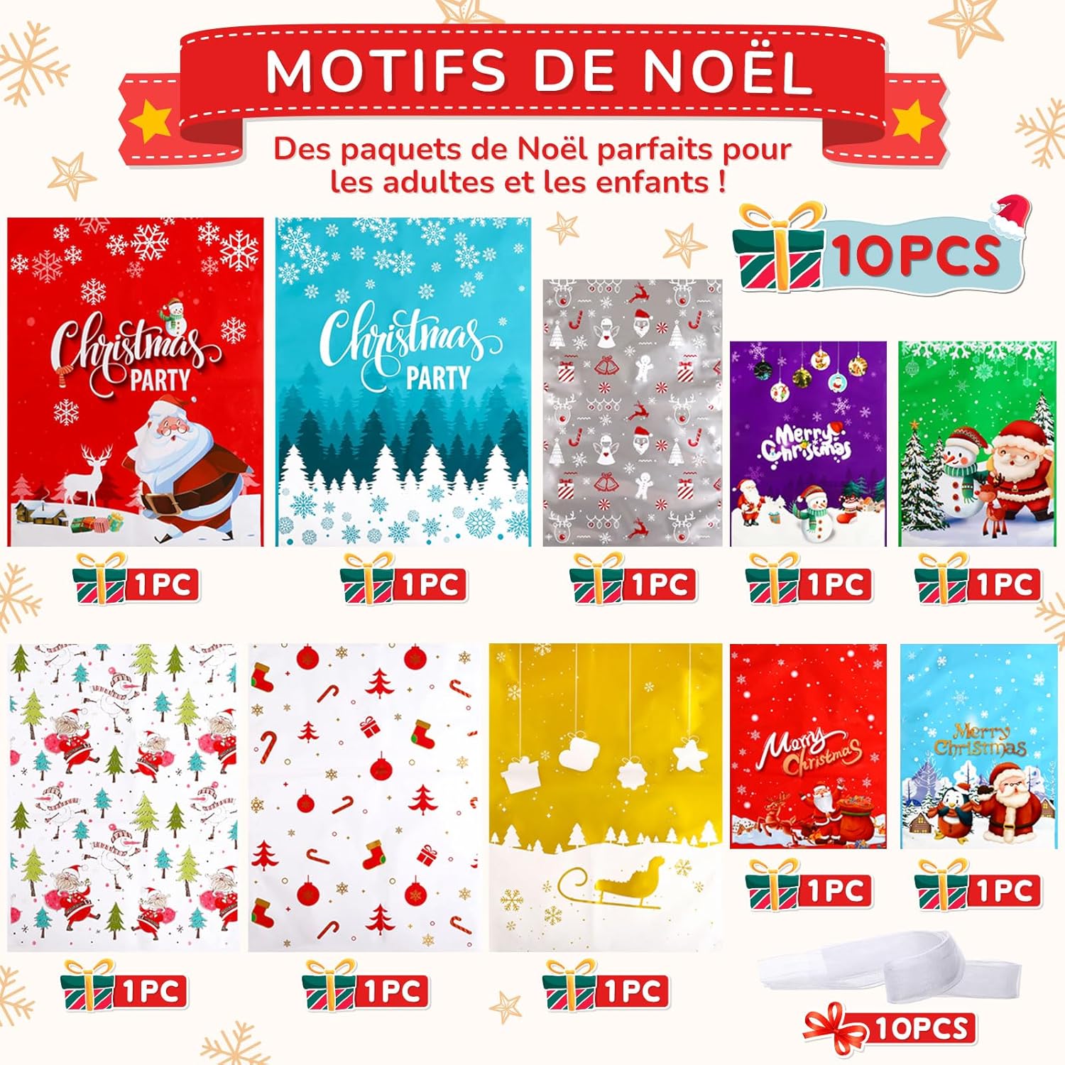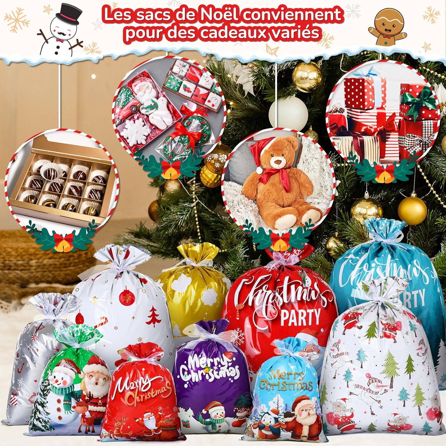 🎁MATERIALE DI ALTA QUALITÀ - Questo sacchetto regalo di Natale è realizzato in polietilene di alta qualità, che è bello, leggero e molto resistente e può essere riutilizzato a lungo. 🎄USI MULTIPLI - I sacchetti regalo natalizi in plastica con coulisse sono perfetti per confezionare regali a sorpresa natalizia. Non solo può essere utilizzato per conservare tutti i tipi di regali di Natale, bottiglie, caramelle, bambole, biscotti, ecc., ma può anche essere utilizzato per decorazioni natalizie, come alberi di Natale, feste di Natale, stanze, ecc. 🍬FACILE DA USARE - Sono inclusi in totale 10 sacchetti regalo di Natale riutilizzabili, ogni sacchetto regalo di Natale è dotato di un nastro bianco. Metti semplicemente i tuoi regali nei sacchetti regalo di Natale e chiudi il nastro. Molto pratico per incartare i regali, fa risparmiare molto tempo ed energia. 🎅MODELLO PERFETTO - I sacchetti regalo di Natale con coulisse sono disponibili in diversi formati, con disegni piuttosto luminosi e allegri (colori vivaci come rosso, verde, viola, disegni natalizi come Babbo Natale, alberi di Natale, ecc.). I disegni sono colorati e si inseriscono perfettamente nel mondo delle celebrazioni natalizie. Mettendo i regali in questi sacchetti, porterai più sorprese ai tuoi amici, bambini o familiari. 🎉ATMOSFERA DI NATALE - Diversi stili di sacchetti regalo natalizi con coulisse sono la scelta migliore per confezionare regali di Natale, decorazioni natalizie, regali per feste di Natale, decorazioni per l'albero di Natale, creando una gioiosa atmosfera natalizia e rendendo la vacanza più fantastica.