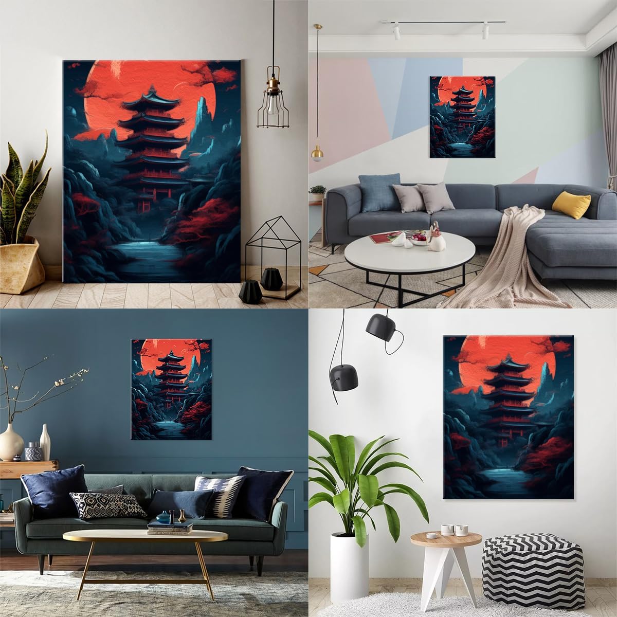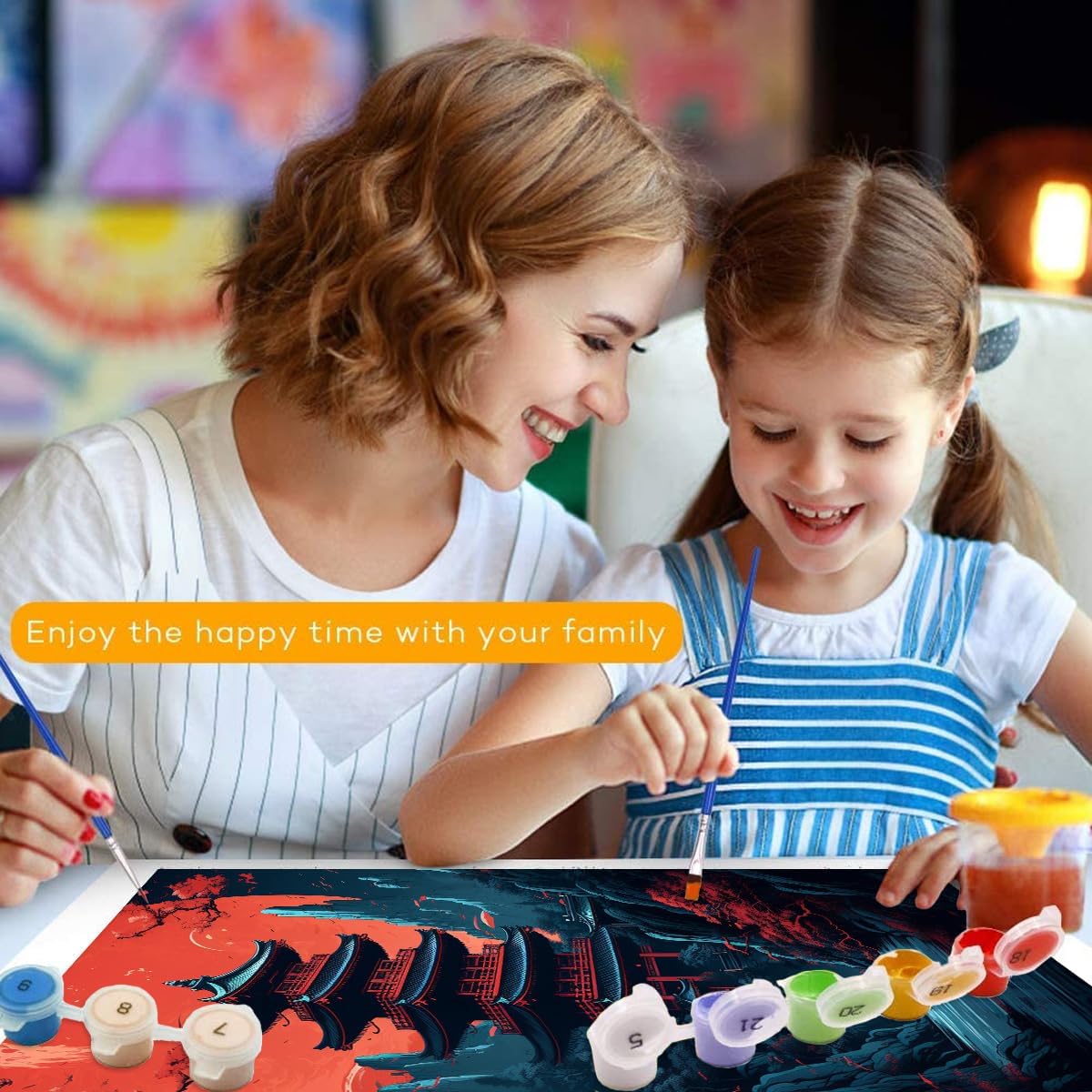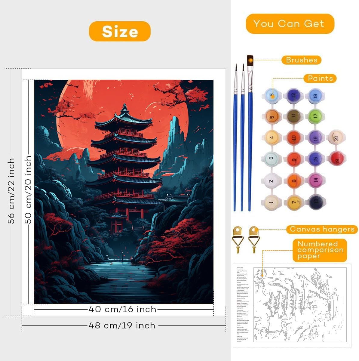 LiHEQING Dipingere coi numeri, tempio rosso, oscurità, luna, bambini e adulti, kit da dipingere con i numeri, per genitori e figli, senza cornice (50 x 65 cm)