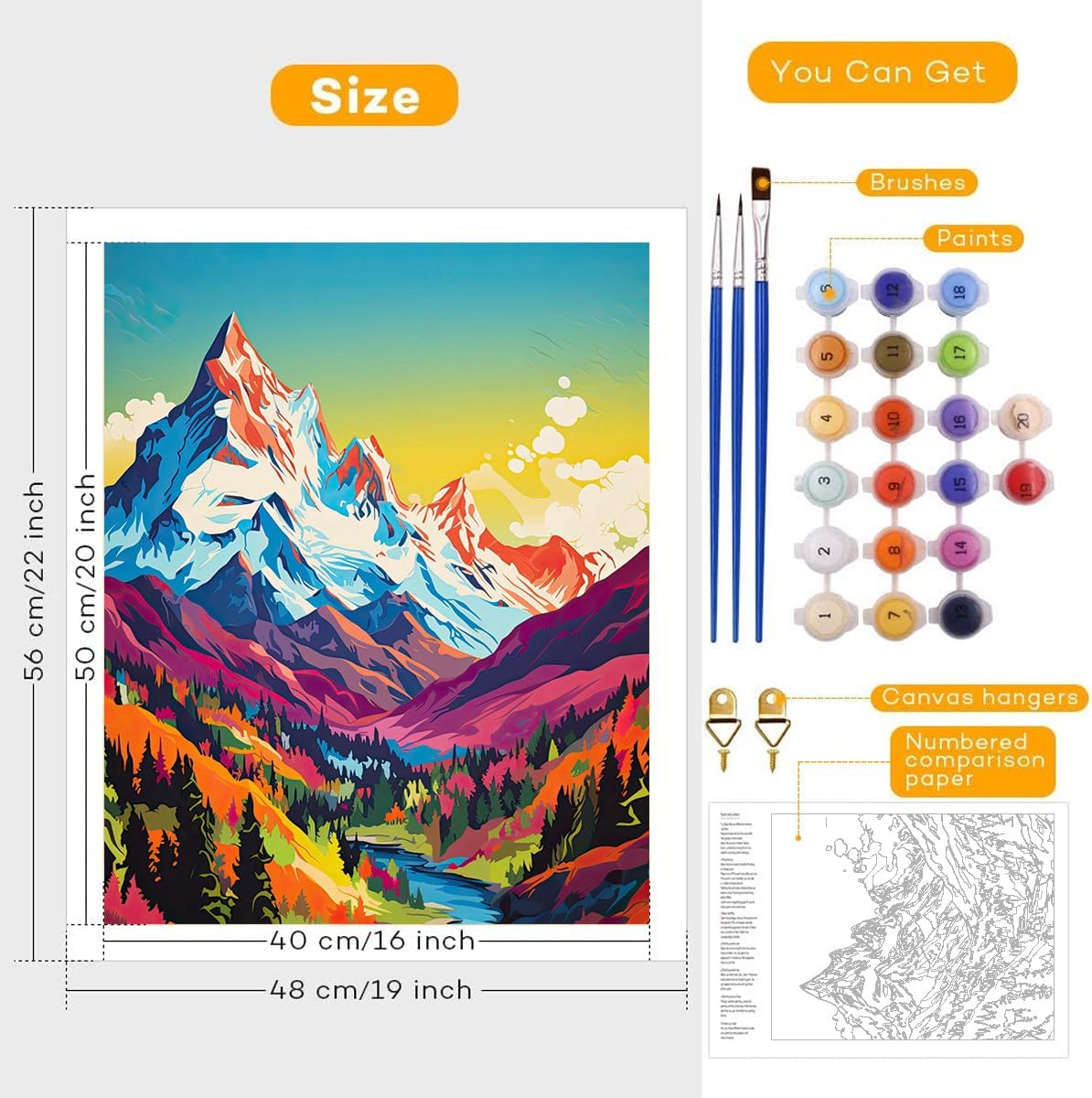 Pittura a olio fai da te: il kit di pittura a olio fai da te aiuterà le persone a promuovere il rapporto tra familiari, amici, marito e moglie, quando dipingi insieme. Nutrire la tua spiritualità e liberare lo stress. La pittura a olio digitale ti consente di completare facilmente un dipinto a olio e goderti il divertimento della creazione e del gioco. Facile da dipingere: basta abbinare i numeri della pittura e le figure sulla tela per riempire il colore. Dipingi per numeri di colore, finisci uno per uno. La pittura con i numeri è adatta a tutti i livelli di abilità, che tu sia adulti, bambini o principianti. Riempi il colore in base ai numeri, non hai bisogno di alcuna abilità di pittura. Materiale innocuo: colori acrilici ecologici, colori vivaci e pigmenti sufficienti. Puoi dare pieno gioco alla tua creatività sulla tela colorata ad alta definizione, senza preoccuparti che la vernice danneggi il tuo corpo. Decorazione per la casa alla moda e miglior regalo: perfetta per decorare soggiorno, camera da letto, ufficio, ristorante, bar o ovunque tu voglia abbinare diversi stili di decorazione. È un regalo perfetto per compleanni e festival. Contenuto della confezione: il kit per dipingere con i numeri include 1 tela testurizzata prestampata (senza cornice), 1 set di pigmenti acrilici, 3 pennelli professionali. Dimensioni della tela da pittura espansa: 40,6 x 50,8 cm. 40 x 50 cm
